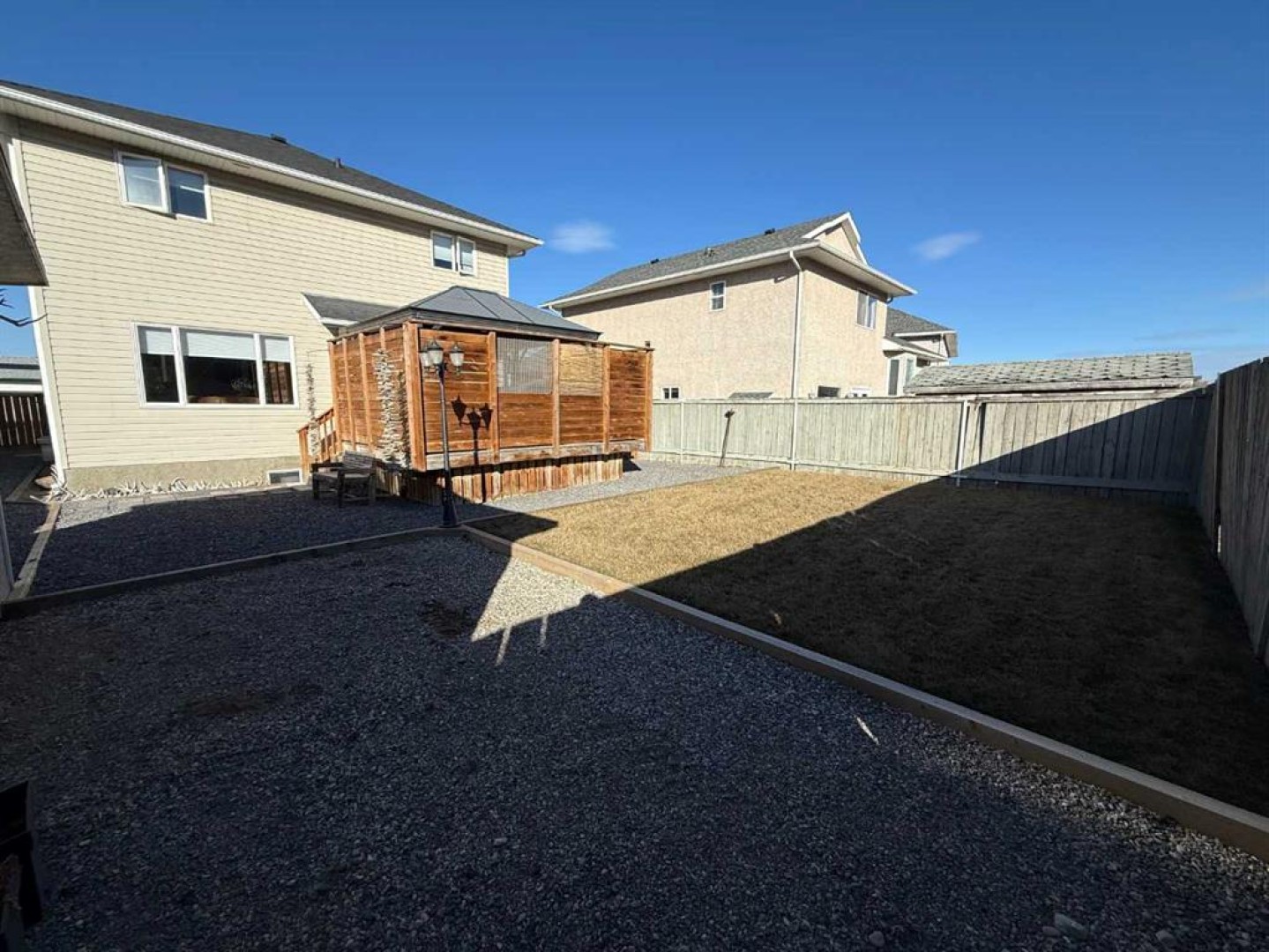 This beautifully maintained two story home offers 2,194 sq ft of developed living space across three levels and reflects true pride of ownership throughout. The main floor has recently been upgraded with stunning oak engineered hardwood, adding warmth and timeless appeal. The renovated kitchen is both stylish and functional, featuring stone countertops, modern finishes, and a large island that’s perfect for family meals or entertaining guests. The open concept layout flows seamlessly into the inviting living room, complete with a cozy gas fireplace and large south facing windows overlooking the backyard. This level also includes a convenient 2-piece bathroom and direct access to the heated double attached garage. Upstairs, you’ll find three well sized bedrooms, a 4-piece main bathroom, and a dedicated laundry room. The spacious primary suite includes its own 4-piece ensuite, creating a comfortable retreat at the end of the day. The fully developed basement offers excellent additional living space with a large flex area, a fourth bedroom, and a 3-piece bathroom ideal for guests, teens, or a home office setup. Outside, the backyard is thoughtfully designed with a private deck, storage shed, and dog run, making it functional and enjoyable for the whole family. New shingles were installed in 2021, adding further value and peace of mind. Tastefully finished and truly move in ready, this home is located on a great street in Hinton’s East Hardisty neighborhood an excellent opportunity for buyers looking for quality without the need for renovations.