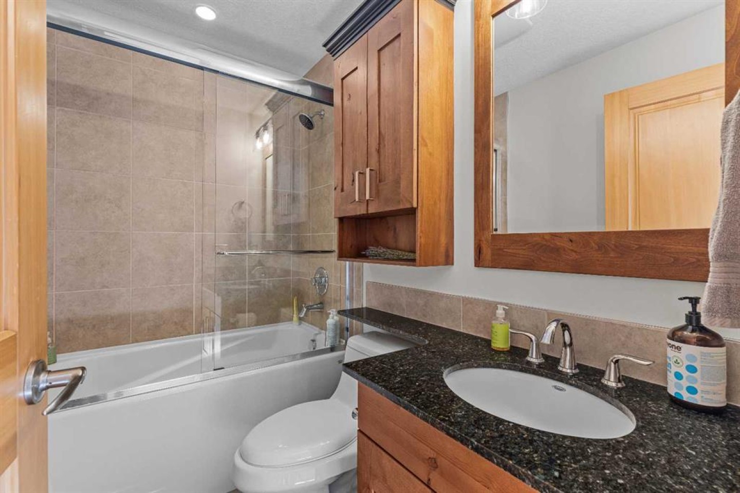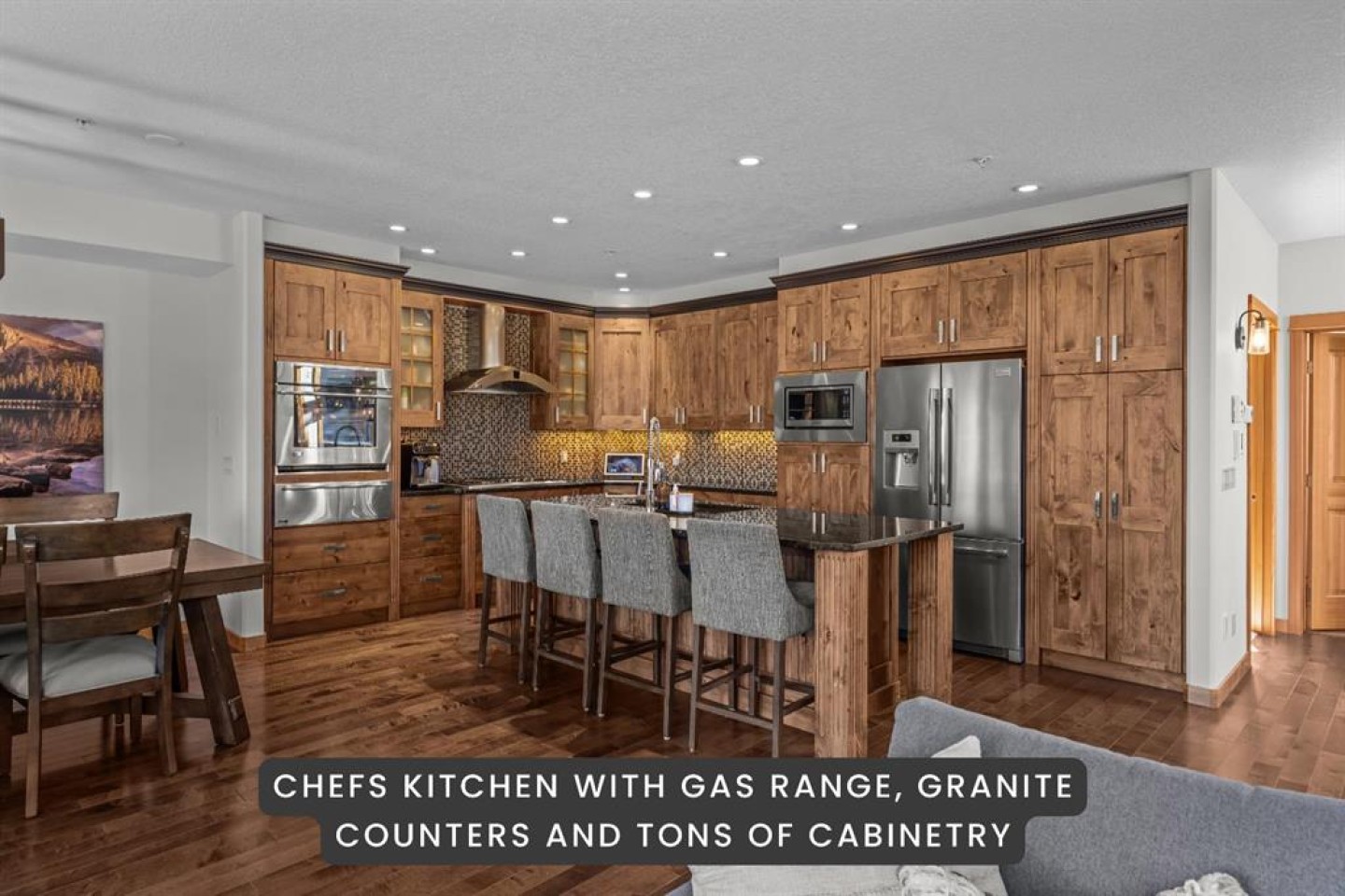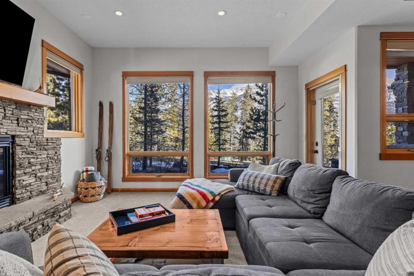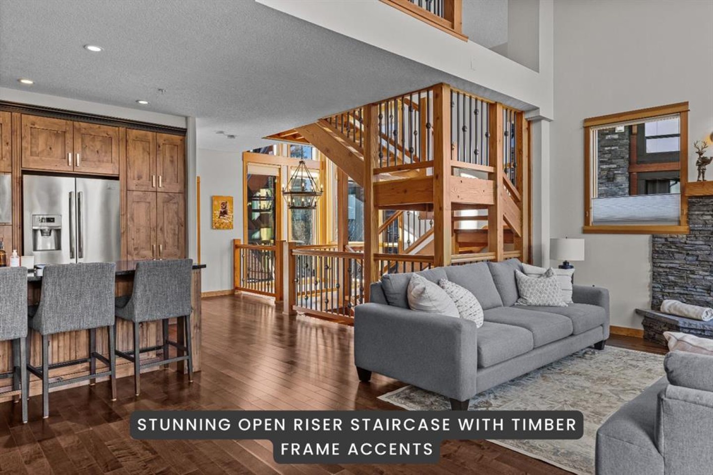 Soaring ceilings, timber frame accents, and panoramic mountain views set the tone the moment you walk in. Offering almost 3,000 square feet of thoughtfully designed living space, this mountain retreat blends scale with warmth. An open-riser staircase adds architectural flair and enhances the true chalet feel. With multiple decks and a walkout level built for entertaining, the home is designed for both gathering and quiet escape. The main level features a gourmet kitchen with stainless steel appliances, alder cabinetry, granite counters, BBQ deck access, and a spacious dining nook. The great room showcases floor-to-ceiling windows and a cozy gas fireplace framed by valley views. Tucked around the corner is a convenient half bath and a generous bedroom with private ensuite and its own coffee deck. Upstairs offers a loft/office plus two additional bedrooms, each with its own ensuite, including a steam shower in the primary. Wake up to Lady Mac out back or Big Sister out front from the primary suite. The walkout level includes a second living room with fireplace, games area, wet bar, 4-piece bath, and hot tub patio backing onto green space and pathway. A double attached garage provides room for all your mountain gear, and the high-end mechanical system, including boiler and heat recovery, reflects the quality throughout. Furniture is included, making this a true turnkey opportunity—just move in and enjoy mountain life.