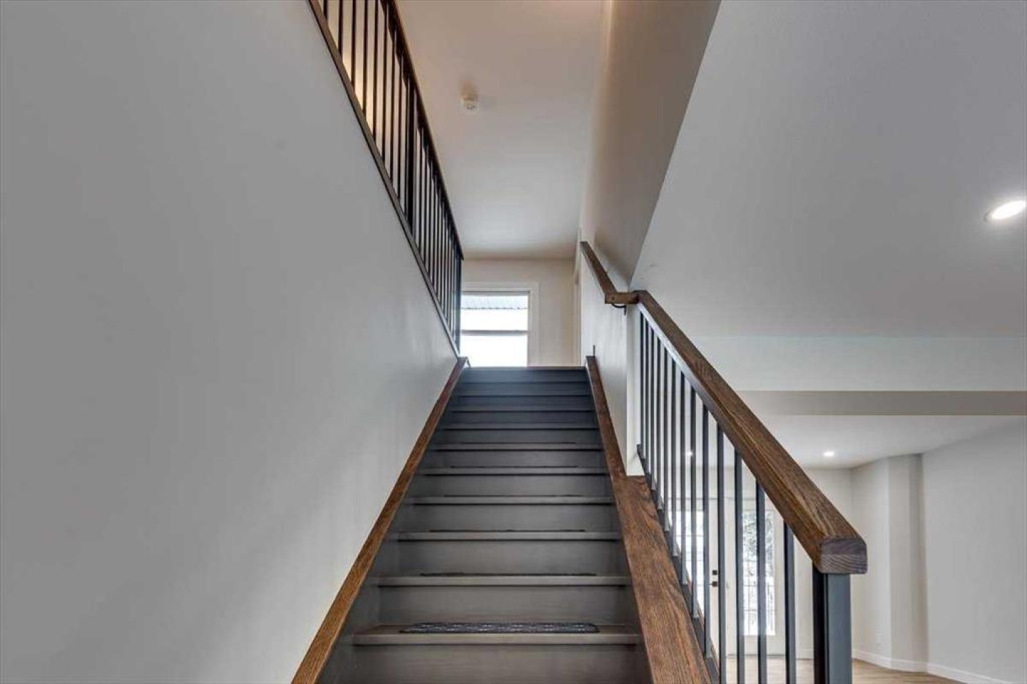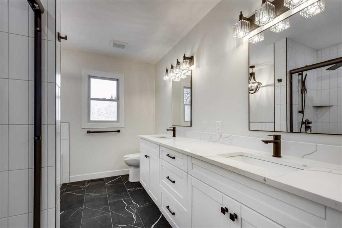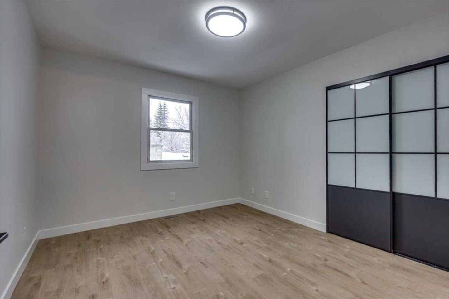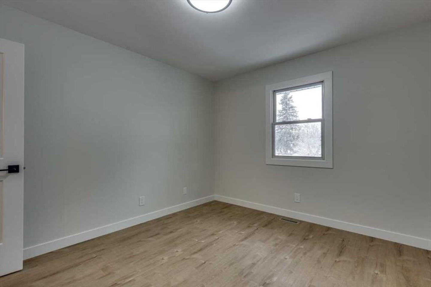 Numerous renovations completed by FOREFRONT Homes inside this BEAUTIFUL 2 story home with LEGAL SECONDARY suite and TRIPLE detached garage. Located in the desirable area of Woodlea, the EXTENSIVE custom renovations in the main and upper floors will be appreciated by discerning clients. With over 1800 square feet above grade, the upper floor features 3 bedrooms and 2 bathrooms. The primary suite is GENEROUSLY sized with 2 closets, one walk in closet, and a second large closet, and a massive en suite bathroom with 6 foot tub, CUSTOM tiled shower, double sinks and INFLOOR heat. The 2 remaining bedrooms are a great size 10 feet by 12 feet each, with ADJUSTABLE shelving in the closets. The upstairs bathroom has been completed renovated and is spacious. The main floor boasts a large living room area with access to both the large FRONT PORCH and the rear deck areas. The custom kitchen with island adjoins a large dining room area with OVERSIZED windows. A half bath and laundry room area with sink and storage area completes the main floor. The completely separate LEGAL and self contained basement suite features 2 good sized bedrooms, 1 full bath, laundry area, and open kitchen / living room and dining area with INFLOOR heat. Rinai on demand water system was replaced earlier this year, SHINGLES were replaced on roof and garage in August 2025, all new electrical in main floor unit, new appliances in the main floor unit. TRIPLE oversized detached GARAGE (24 feet by 32 feet) features gas heating, plug in for RV, tons of built in cupboards and plenty off additional off street parking on the parking pad in front. LOCATION is 2 blocks to Lindsay Thurber High School, walking distance to down town, close to trail system, and bus routes. ALL of this on a quiet street, on a corner lot, with beautiful mature trees.