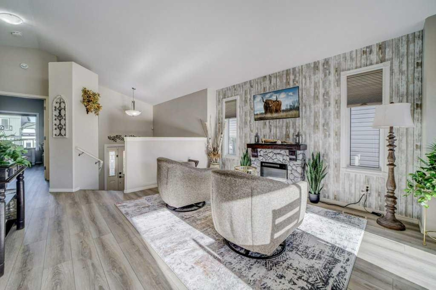 Fridge, stove, OTR microwave, dishwasher, washer dryer, window coverings/hardware, garage door opener & remote, Central A/C, U/G sprinklers in the front, microwave, 1 TV mount, Telus security system ($165/ Month)