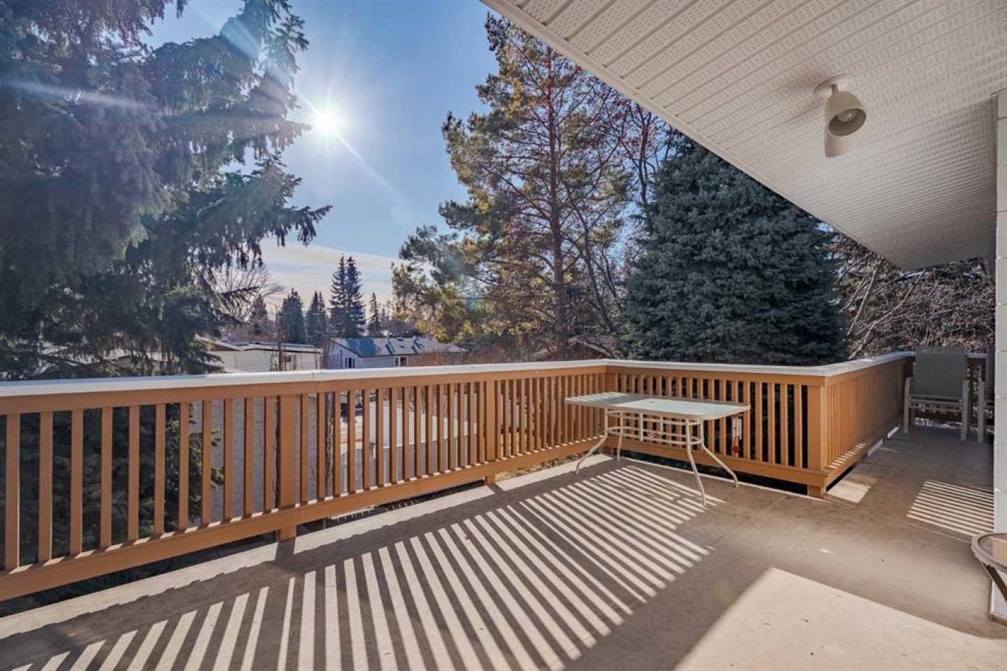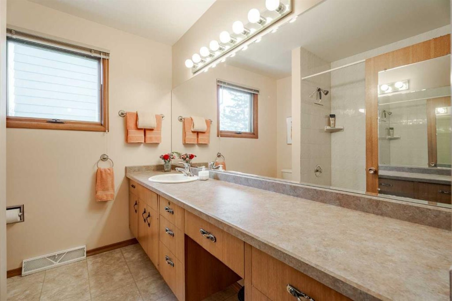 A custom-built hillside bungalow on a quiet, centrally located street in Charleswood Heights. This well-designed lovely house offers over 2500 sq ft of living space in 2 levels, with 5 bedrooms and 2.5 baths. The home’s reverse plan complements the southeast facing backyard with a walkout basement . It has an attractive brick/stucco exterior, large deck off the dining room and 2 wood burning fireplaces.The efficient floor plan provides large rooms while allowing for maximum use of overall space.Improvements in this well-maintained residence include an updated kitchen with oak cabinets,newer countertops and flooring, light fixtures and stainless-steel appliances. Additional recent upgrades include new stove, fridge , lower-level window coverings, washer/dryer, hot water tank and 5G cabling. Gleaming hardwood floors add character to the 3 upstairs bedrooms and extend under the carpeted living room and hallway. There is a 2-piece ensuite in the primary bedroom and a 4-piece main bath with expansive floating cabinetry for storage.The lower level is fully developed with a 4-piece bath, 2 bedrooms and entertainment area .A fireplace and wet bar, with fridge, enhance this open concept for social gathering. The laundry room also accommodates 2 furnaces, allowing for separate temperature control between levels. Perimeter in floor heating is a unique feature of the lower level. Some other bonus features to consider are the mature trees, detached double garage plus a large concrete pad for RV parking & the private brick patio, new garden shed and wire free views. The desirable neighborhood and proximity to amenities (schools, shopping, LRT, U of C, Nose Hill Park) make this property a must see!