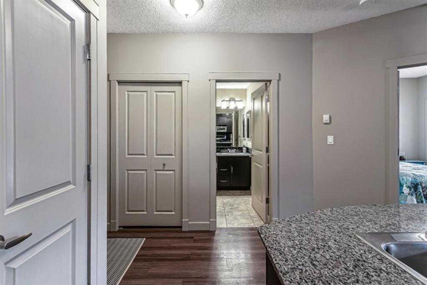 Welcome to this beautifully maintained second-floor, one-bedroom condo in the highly sought-after community of Garrison Green. Located in a quiet concrete building, this home offers excellent sound insulation and peaceful living. The unit features an open-concept layout highlighted by a modern kitchen with granite countertops, stainless steel appliances, pantry storage, laminate flooring, and impressive 9-foot ceilings. The bright and spacious bedroom overlooks the tranquil inner courtyard, while the upgraded bathroom includes a granite countertop and a full tub and shower combination. As a desirable corner unit, the home also features a generously sized private deck with bbq gas line with relaxing courtyard views, in-suite laundry, and convenient elevator access just steps from the titled underground parking stall. For added ease, the garbage and recycling room, along with the loading dock for simple move-ins and move-outs, are located just down the hall. Residents enjoy a fantastic selection of amenities designed to enhance everyday living, including a well-equipped fitness centre, an entertaining and party room, two guest suites for visiting family and friends, heated underground visitor parking, secure bike storage, a library, professional onsite management, and a beautifully landscaped central courtyard. Reasonable condo fees provide excellent value by including all utilities except internet. The surrounding neighbourhood offers picturesque tree-lined streets, parks, and green spaces and is within walking distance to Mount Royal University. Commuting is convenient with quick access to Glenmore Trail, Crowchild Trail, and Stoney Trail. Shopping, dining, and entertainment are just minutes away at Chinook Centre and Westhills Towne Centre. This exceptional condo offers the perfect balance of comfort, convenience, and vibrant community living. Pet Policy: One pet per home with a maximum weight of 50 lbs. Schedule your private viewing today!