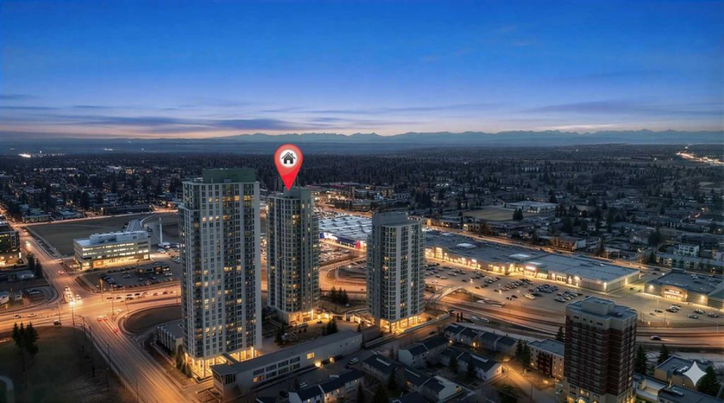 Perched on the 20th floor, this bright and well laid out 2 bedroom, 2 bathroom condo offers the kind of experience that truly sets it apart. Prepare to enjoy mountain views, along with an abundance of natural light pouring in through the bright generous windows. The open concept layout is both practical and inviting, perfect for everyday living and effortless hosting. Step inside to enjoy a home that’s been beautifully renovated. Sleek new LVP flooring spans the living and bedroom areas, refreshed cabinetry with modern hardware brightens the kitchen, and granite countertops paired with updated appliances complete the move-in ready space.The living room features a corner gas fireplace that adds warmth and character, while central air conditioning keeps the space comfortable year round. The bedrooms are thoughtfully positioned, making this layout ideal for professionals, small families, roommates, or those working from home. Step outside to your balcony and take in the open sky and endless views. This well managed complex offers exceptional amenities that add real value to everyday living, including an indoor pool and hot tub, a fully equipped fitness centre, games room, party rooms, on site management, and full time security for peace of mind. The unit also comes with one titled parking stall, assigned storage, and secure visitor parking on the first level of the parkade, offering convenience for both you and your guests. Location truly elevates the experience. The Westbrook LRT station is less than a block away, making commuting downtown simple and quick. Walmart, Safeway, restaurants, and other amenities are directly across the street, giving you true walkable access to daily essentials. If you are looking for comfort, convenience, and incredible views in a prime location, this home checks all the boxes! Welcome Home.