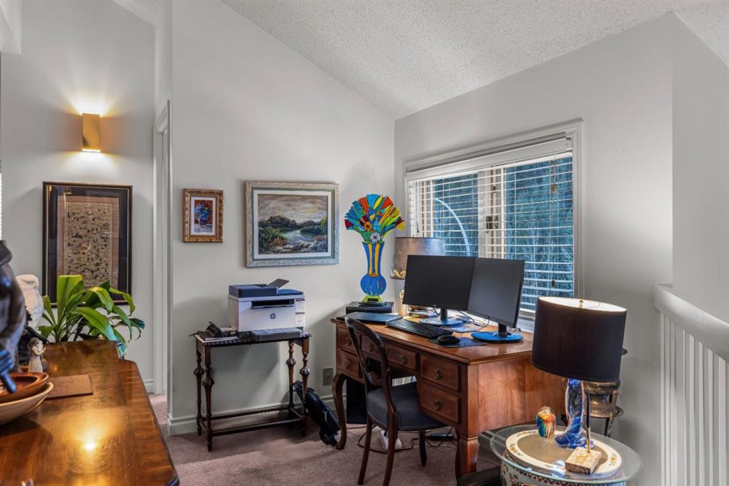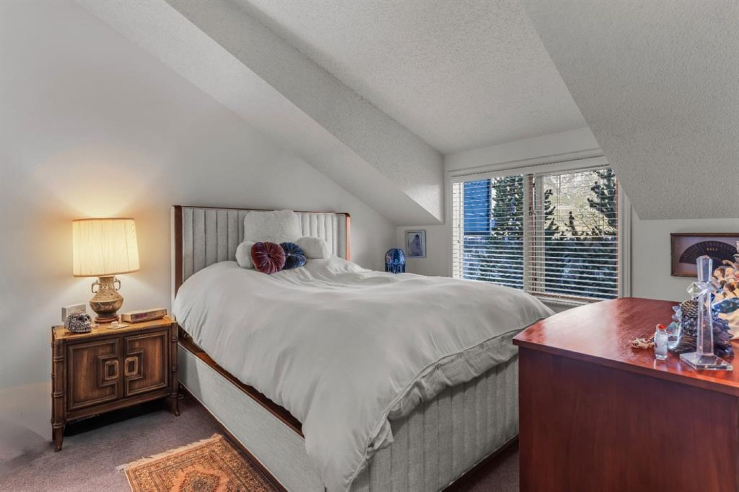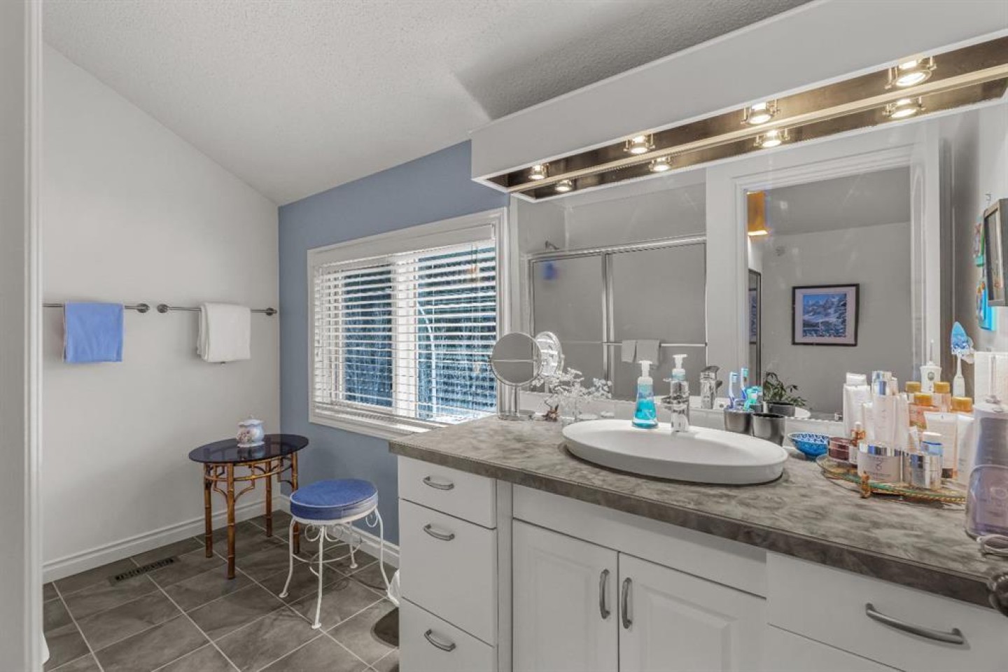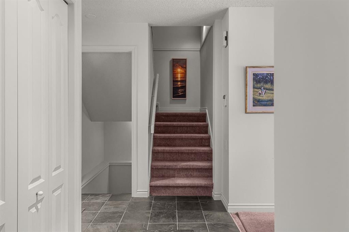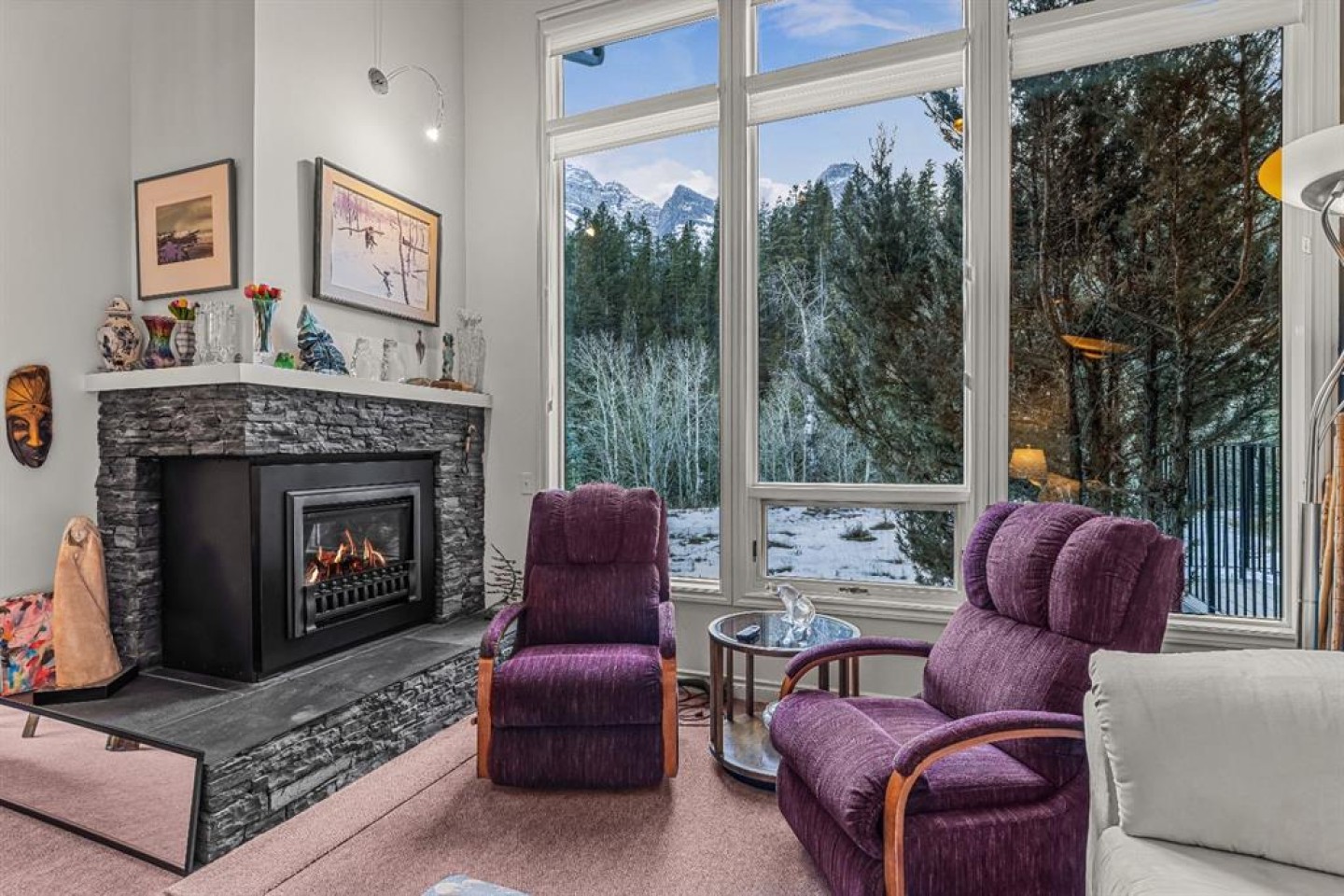 Properties within this limited collection of residences are rarely available, a clear indication of the desirability and long-term ownership in this location. Offering over 2,200 sq ft of well-designed living space, this 3-bedroom, 3-bathroom home backs directly onto unique green space and showcases exceptional south-facing mountain views, combining privacy with a strong connection to its natural surroundings. The main floor is configured for convenient main-floor living, featuring a spacious primary bedroom, 3-piece bathroom, kitchen, dining area, and living room. Vaulted ceilings and expansive windows in the living room provide abundant natural light and frame the surrounding landscape. A slate entry foyer creates a strong first impression, while the adjacent deck extends the living space outdoors and offers a sunny setting to enjoy the views. The upper level includes two additional bedrooms and a 4-piece bathroom, offering flexibility for family or guests. The fully developed basement adds valuable additional space with a recreation room, 3-piece bathroom, laundry area, storage, and utility room. Additional highlights include a covered carport and a highly desirable setting backing onto open green space. This is a rare opportunity to secure a home in a tightly held, highly sought-after community.