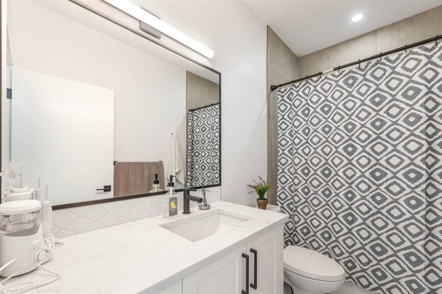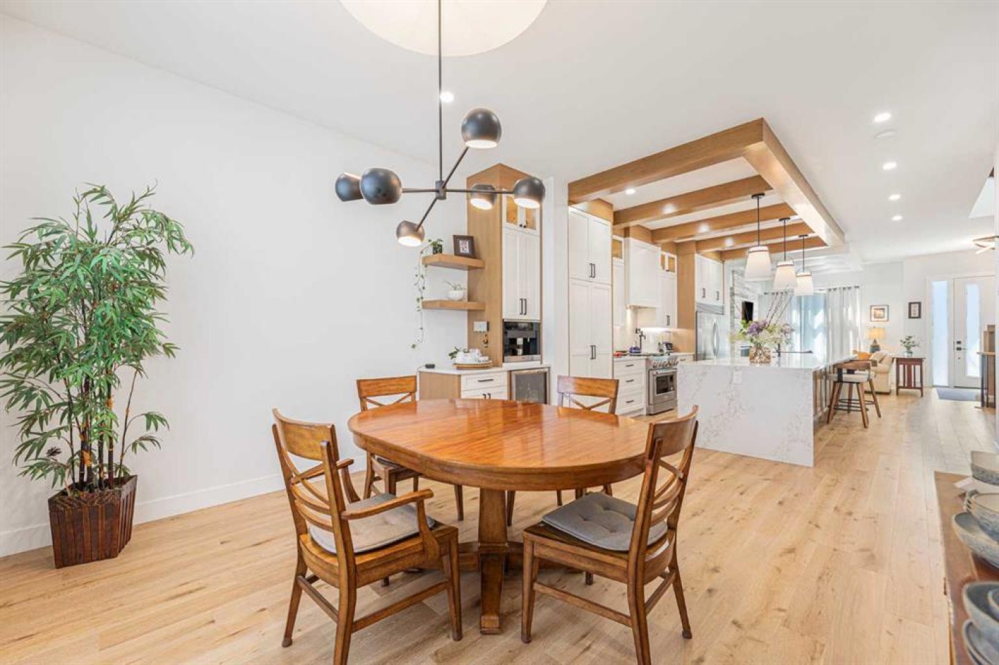 Welcome to this beautifully designed home on a quiet street in the sought after community of Killarney. Offering over 2,800 sq. ft. of luxurious living space, this air-conditioned 4 bedroom, 3.5 bathroom residence showcases exceptional craftsmanship and timeless style. The bright main floor features coffered ceilings, rich hardwood floors, a dramatic curved staircase, and a custom stone fireplace. The chef-inspired kitchen is equipped with full height cabinetry, quartz countertops, premium stainless steel appliances including a commercial-style gas range, a built-in coffee maker, farmhouse sink, and an impressive 12-foot island. The dining area offers seamless access to a landscaped backyard with deck and patio perfect for entertaining. Upstairs, the primary suite offers a walk-in closet and a spa like 5-piece ensuite with heated floors, soaker tub, steam shower, and dual vanities. Two additional bedrooms, a full bath, and convenient laundry complete the level. The fully finished basement features in-floor heating, a spacious family room with wet bar, fourth bedroom, and another full bathroom. Enjoy a heated double detached garage and easy access to parks, schools, the Killarney Aquatic & Recreation Centre, and downtown Calgary. Exceptional inner-city living awaits.