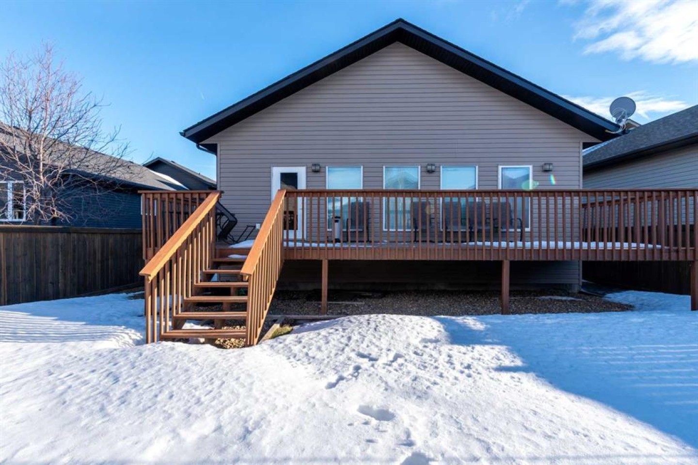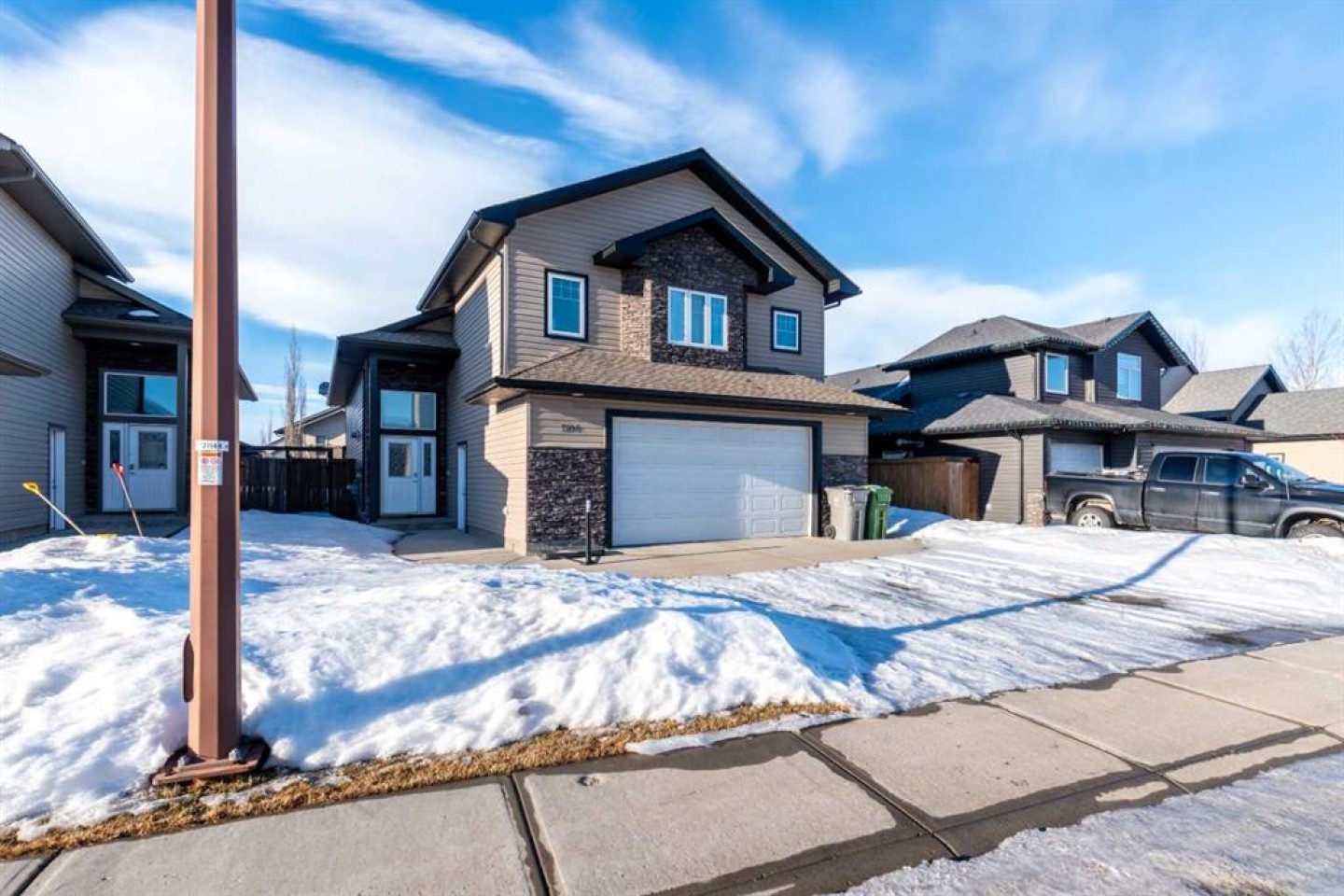 Welcome to this well-maintained 1,900+ sq. ft. modified bi-level located in the desirable Parkview neighbourhood on the Alberta side of Lloydminster. Offering 5 bedrooms and 3 full bathrooms, this home provides exceptional space and functionality for a growing family. The open-concept main floor features no carpet throughout, creating a clean, modern feel that is both stylish and low maintenance. The spacious kitchen is designed for everyday living and entertaining, complete with a large island, granite countertops, and ample cabinetry. The living and dining areas connect seamlessly, offering a practical layout with plenty of room to gather. The private primary suite, situated above the garage, serves as a comfortable retreat and includes a 5-piece ensuite with dual sinks, a soaker tub, and a separate shower, along with generous closet space. Two additional bedrooms and a full bathroom complete the main level. Downstairs, the fully finished basement showcases 9-foot ceilings, adding to the sense of space. You’ll find two additional bedrooms, another full bathroom, and a spacious family room ideal for relaxing or entertaining. Outside, enjoy a deck overlooking the fully fenced yard, perfect for kids and pets. The large parking pad provides ample off-street parking. Located close to parks, schools, and walking paths, this home offers space, comfort, and a prime location in one of Lloydminster’s most sought-after neighbourhoods. Check out the 3D virtual tour!