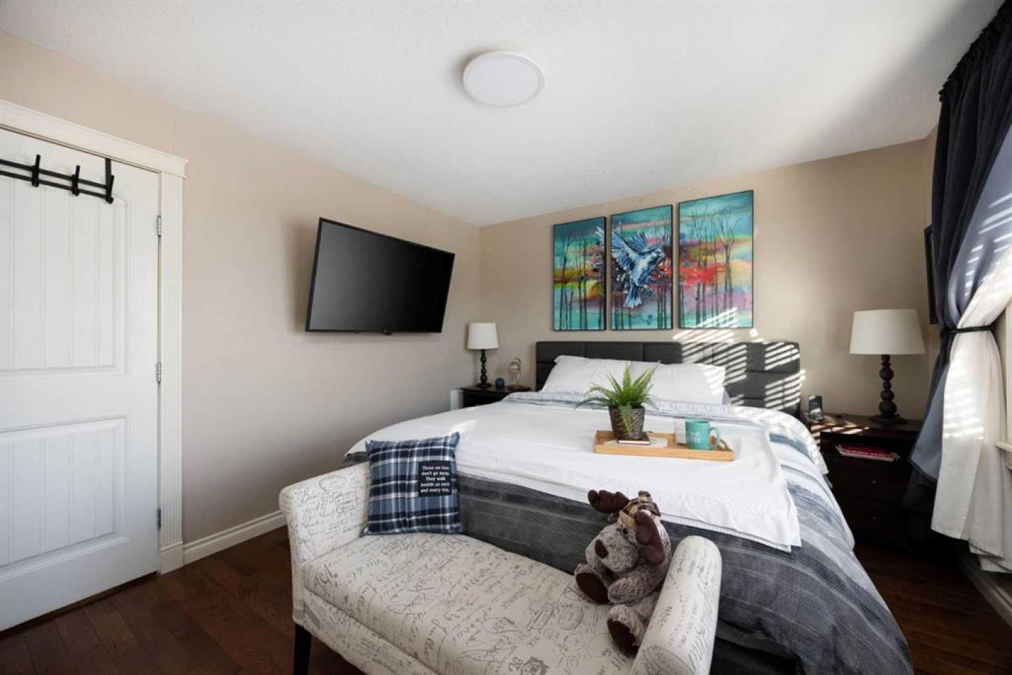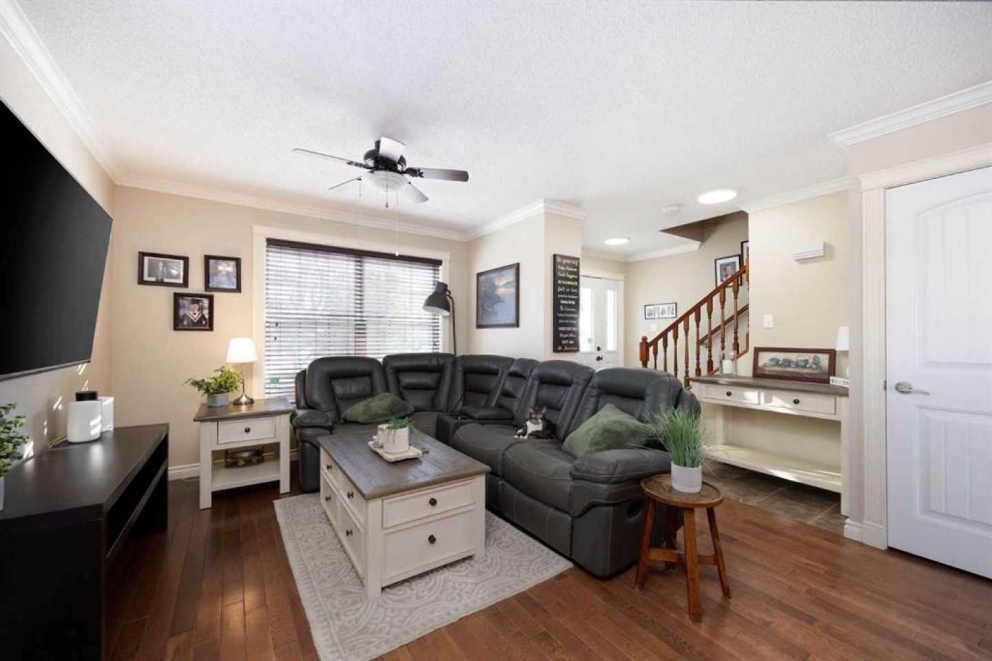 Welcome to 210 Grouse Way, a warm and wonderfully maintained home tucked onto a corner lot in the heart of Eagle Ridge where convenience meets comfort and every major update has already been taken care of for you. Step inside to a bright and inviting main level finished entirely in hardwood with no carpet in sight, creating a seamless and timeless feel. The kitchen is both functional and beautiful with rich wood cabinetry complemented by a brand new white quartz countertop installed in 2025, updated black fixtures in 2025, a new dishwasher, microwave and sink completed in 2025, plus a fridge and stove replaced in 2016. The adjacent dining area offers an eat up bar that overlooks the living room, making it the perfect place for morning coffee, homework sessions or hosting friends. A cozy gas fireplace gently defines the space between kitchen, dining and living areas while still maintaining that open, connected feel everyone loves. The main level also includes a convenient two piece powder room, infloor heat for added comfort and a heat pump with air conditioning wall unit installed in 2022 to keep things comfortable year round. Upstairs you will find three bedrooms including a spacious primary retreat complete with both a walk in closet and an additional secondary closet for extra storage. The four piece main bathroom was fully renovated in 2025 and offers a fresh, modern finish that feels straight out of a design magazine. Hardwood flooring continues throughout the upper level, reinforcing the clean, cohesive aesthetic of the home. The fully developed basement adds even more functional living space with vinyl plank flooring installed in 2024, a cozy family room accented with charming wainscotting, two additional bedrooms and a three piece bathroom that makes this level ideal for teens, guests or a growing family. Behind the scenes, the updates continue with a washer and dryer replaced in 2016, a water softener added in 2022, hot water on demand installed in 2023 and an attic insulation top up completed in 2022, all contributing to efficiency and peace of mind. Outside, the 20 x 26 detached garage provides excellent storage and parking and received a new garage door in 2021, with additional parking available beside. The backyard is ready for summer evenings with a deck and fire pit area that invite connection, laughter, and marshmallows under the stars. Situated on a corner lot in desirable Eagle Ridge, this home is just steps from schools, daycares, walking trails, shops, restaurants, the movie theatre, bowling alley, pubs, transit and more. 210 Grouse Way is the kind of home that feels good the moment you walk in and even better knowing all the thoughtful updates have already been done for you.