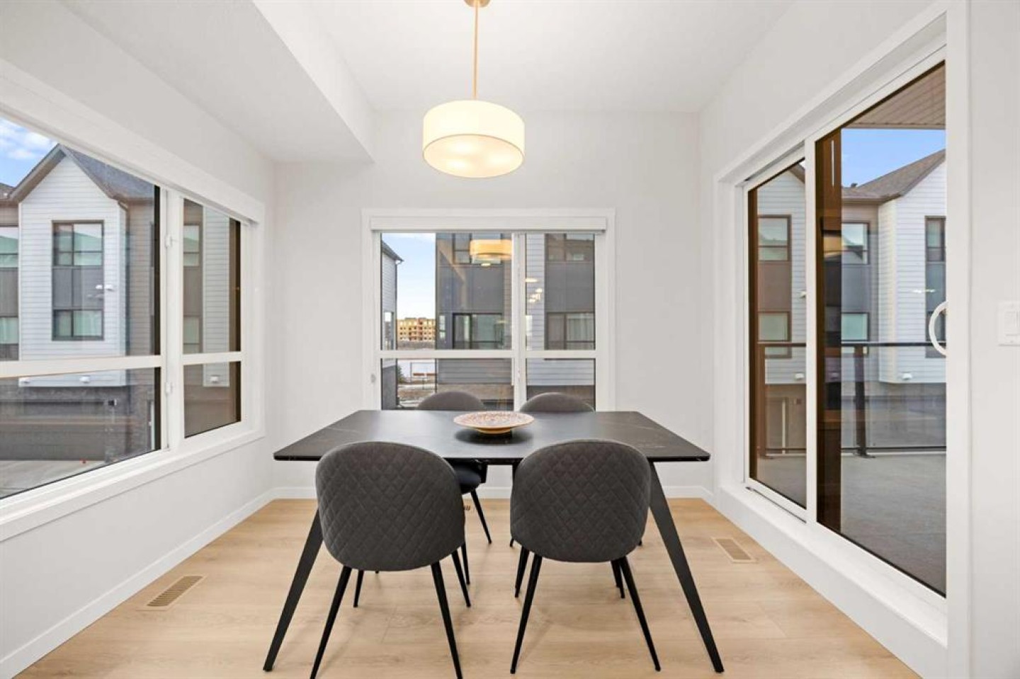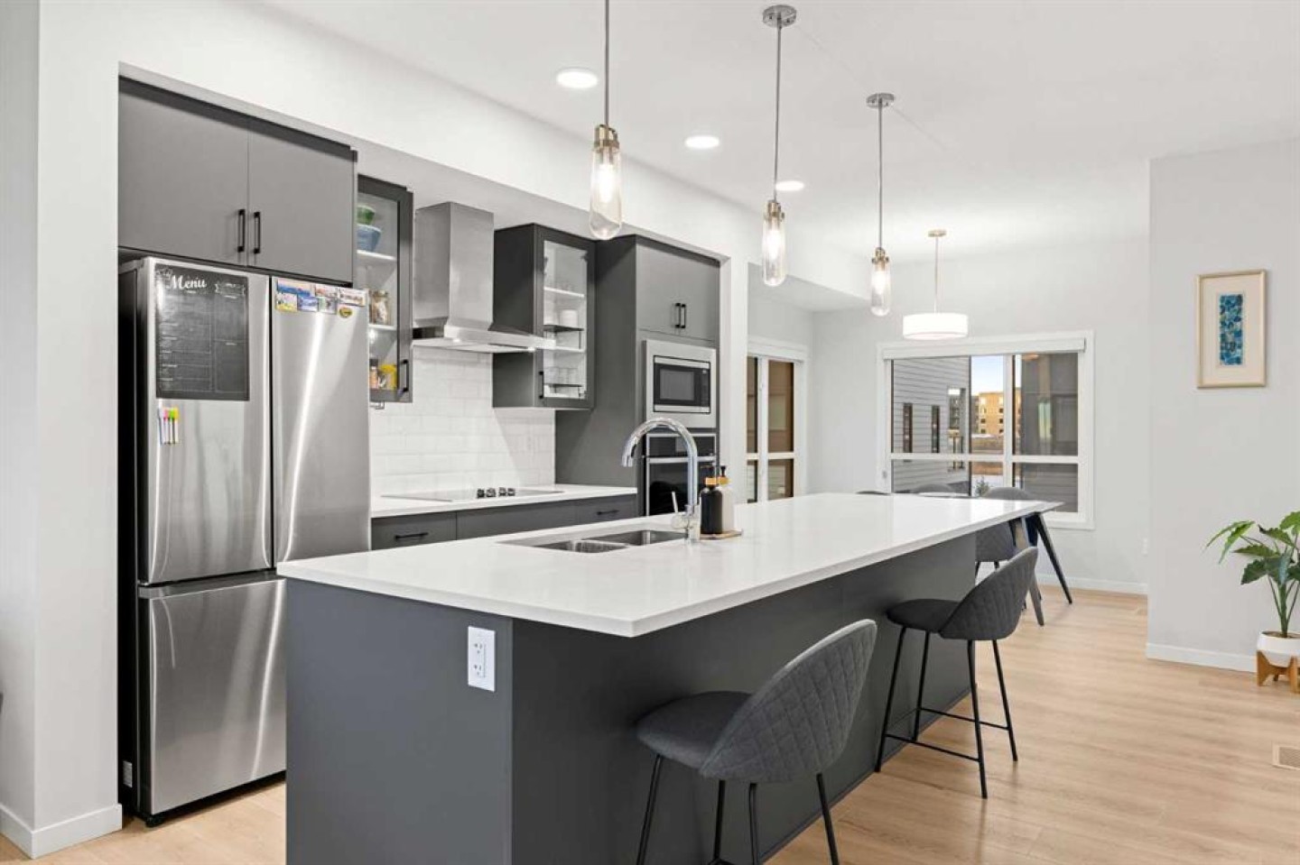 Wake up with the sun. Not a polite little beam through one window. The full performance. This east-facing corner townhome is basically a greenhouse for happy people. With windows on nearly every wall, you might actually forget where the light switches are. At 1,633 sq ft, this 3-bedroom home gives you space to live like an adult who has their life together. Or at least look like you do. The layout flows effortlessly, with room to host friends, stretch out on the couch, or dramatically announce, “This is why we needed the extra space.” Working from home? The main floor office is ready for Zoom calls, spreadsheets, or pretending to be on a serious business call while you are actually ordering lunch. Commute time is approximately 12 seconds. The oversized laundry room deserves its own appreciation post. Finally, a place where laundry can exist without taking over your entire personality. There is room to sort, fold, and still walk around like a civilized human. Summer heat will not win here. Central A/C keeps things cool while the sunshine pours in. You get the glow without the melt. Parking is equally drama free. An attached double car garage means no winter scraping marathons, and there is ample visitor parking right beside the townhome. Your friends have zero excuses now. Out back, there is a beautiful pond perfect for evening walks, deep conversations, or convincing yourself you are the outdoorsy type. And the location? Elite. You are minutes from the Seton VIP Cineplex for VIP movie nights, Real Canadian Superstore for “I only came for one thing” grocery runs, Community Natural Foods when you are feeling healthy, and the South Health Campus for peace of mind. Add restaurants, shopping, schools, and the YMCA Calgary and you may never need to leave the neighbourhood. Quick access to Deerfoot Trail and Stoney Trail keeps you connected to the entire city without turning your commute into a life reflection session. There is still coverage remaining under the Alberta New Home Warranty Program, which basically means you get that comforting “newer home” peace of mind. Pet friendly? Absolutely. • Up to 2 small or medium dogs • Or 1 large dog up to 35 kg • Up to 2 cats Short term rental friendly? Yes. Flexible is this home’s middle name. Bright. Spacious. Convenient. Slightly showing off. If homes had personalities, this one would be the confident friend who always picks the best restaurant. Come see it before someone else with great taste beats you to it.