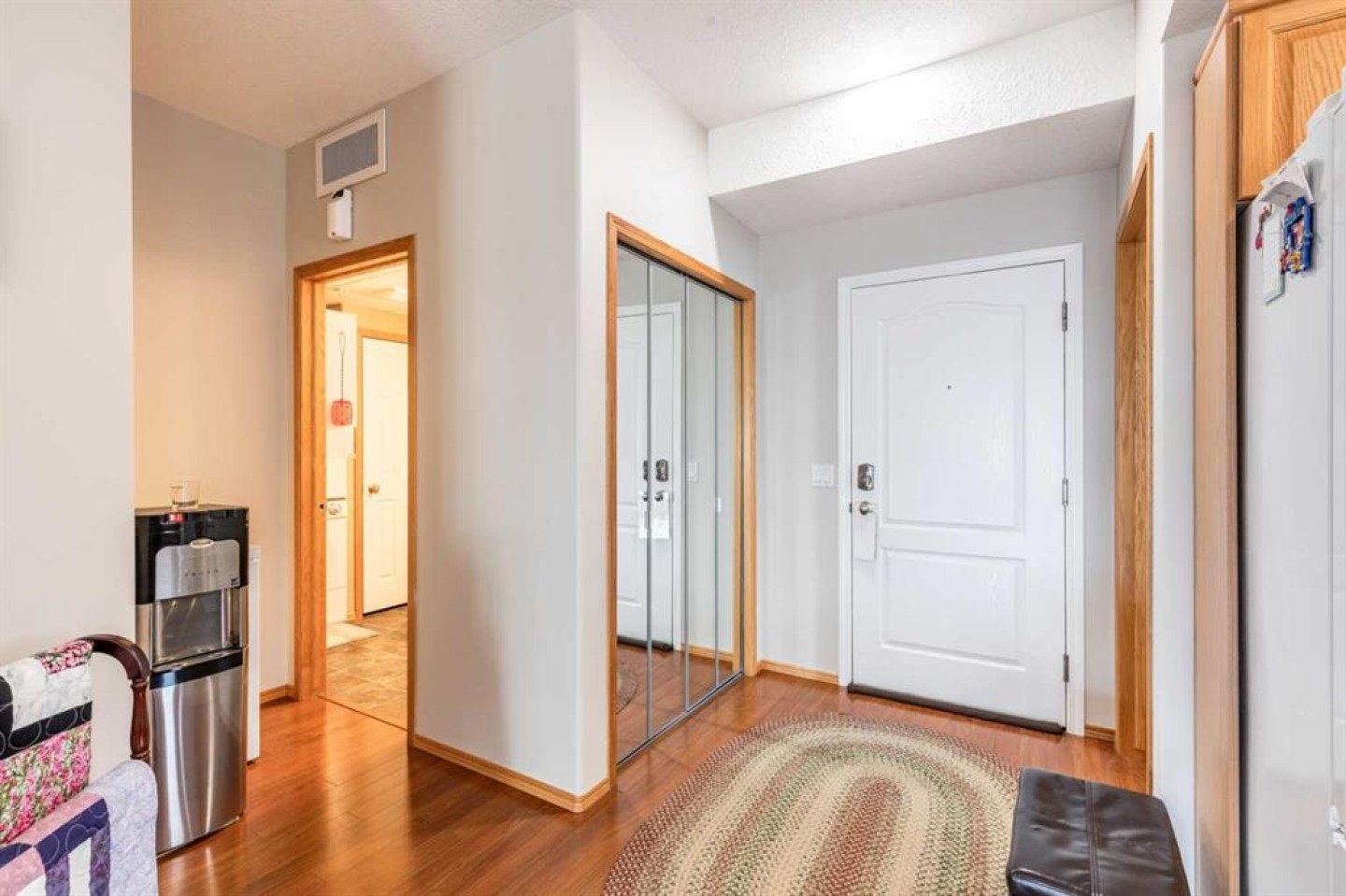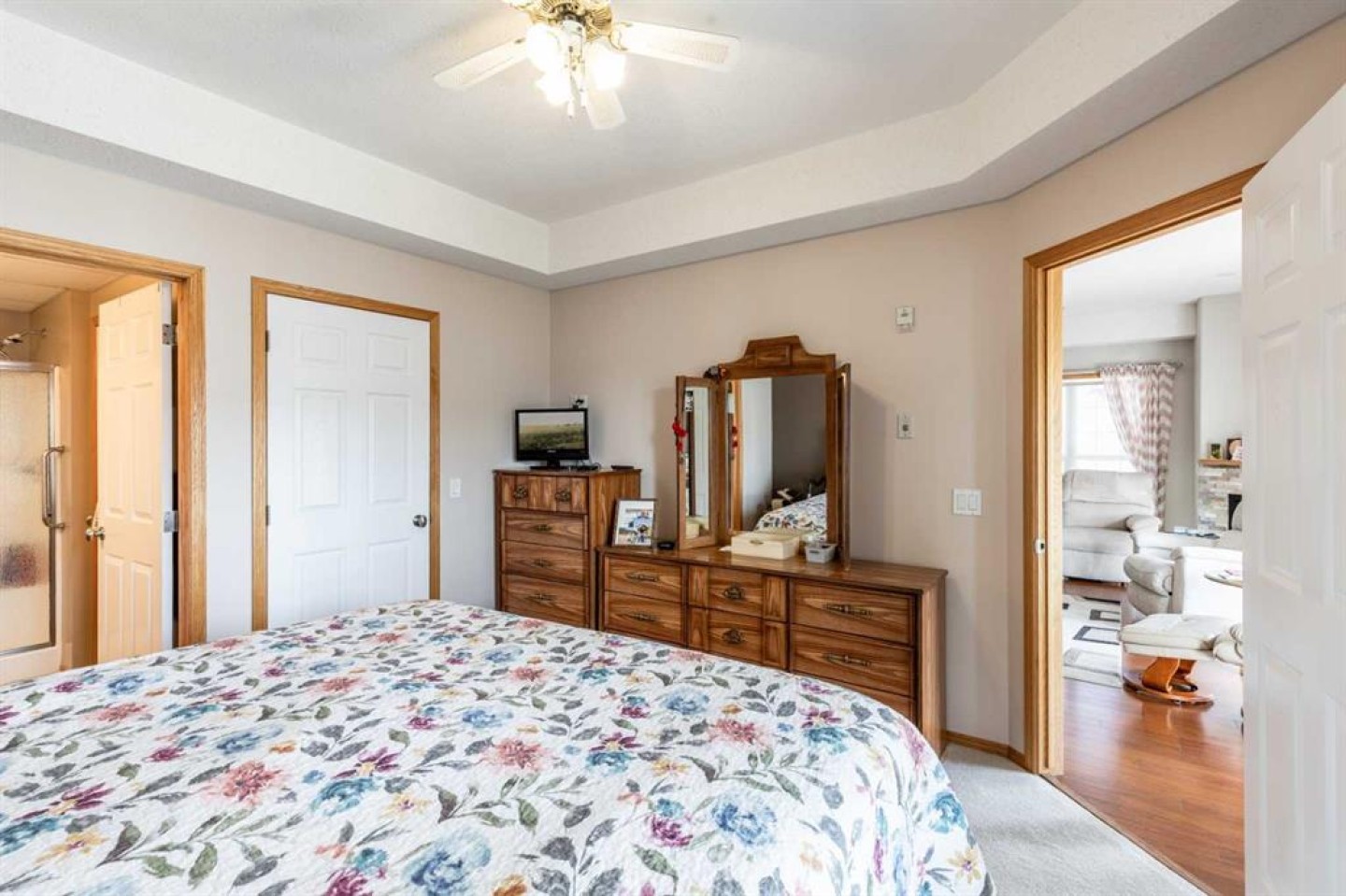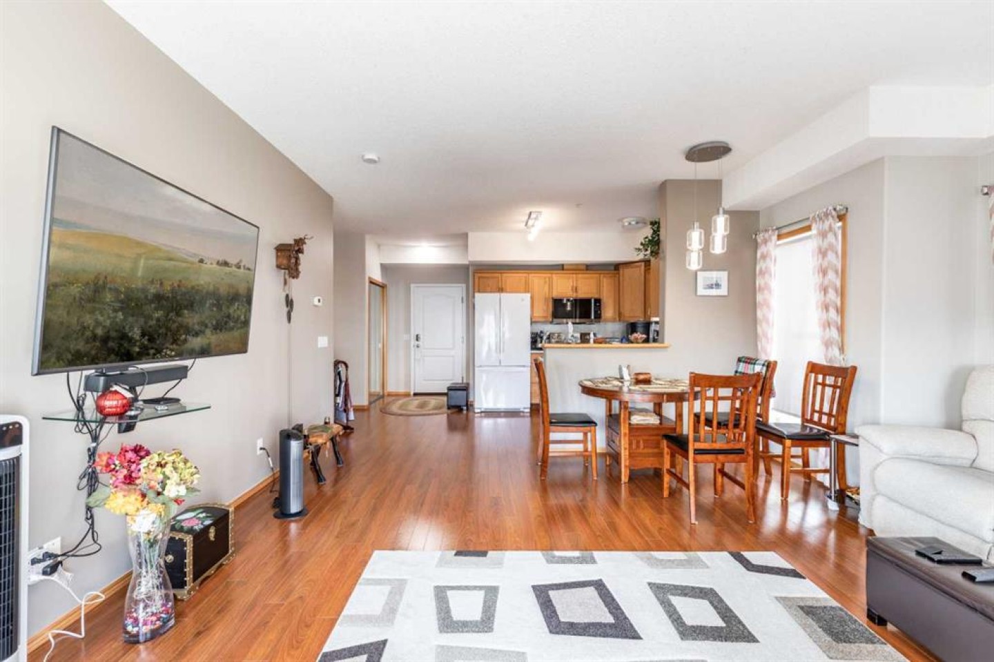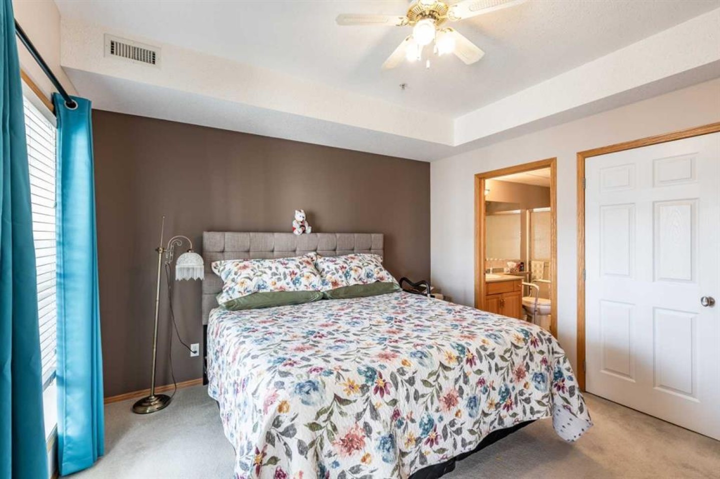 Welcome to sought-after River Ridge Estates, a beautifully maintained 55+ community offering comfort and convenience. This bright southeast-facing 2-bedroom, 1.5-bathroom suite enjoys lovely river views, allowing you to watch the sunrise while your private deck remains comfortably shaded from the afternoon sun. Inside, you’ll find fresh neutral paint, upgraded flooring, and a brand-new stove and microwave hood fan. The open living and dining area is filled with natural light, and the kitchen features a window over the sink for added brightness. The spacious primary suite easily accommodates a king-sized bed and includes a walk-in closet and private ensuite with a walk-in shower. The second bedroom is ideal as a guest room, office, or hobby space. A convenient two-piece bathroom doubles as your laundry area and offers additional storage. Other highlights include a titled underground parking stall located close to the parkade entrance, minimizing walking if mobility is a concern. Residents enjoy access to the beautifully landscaped courtyard, complete with a fire pit and charming seasonal Christmas lights, creating a warm and welcoming atmosphere year-round. This is low-maintenance living at its finest in one of the city’s most desirable condo communities.