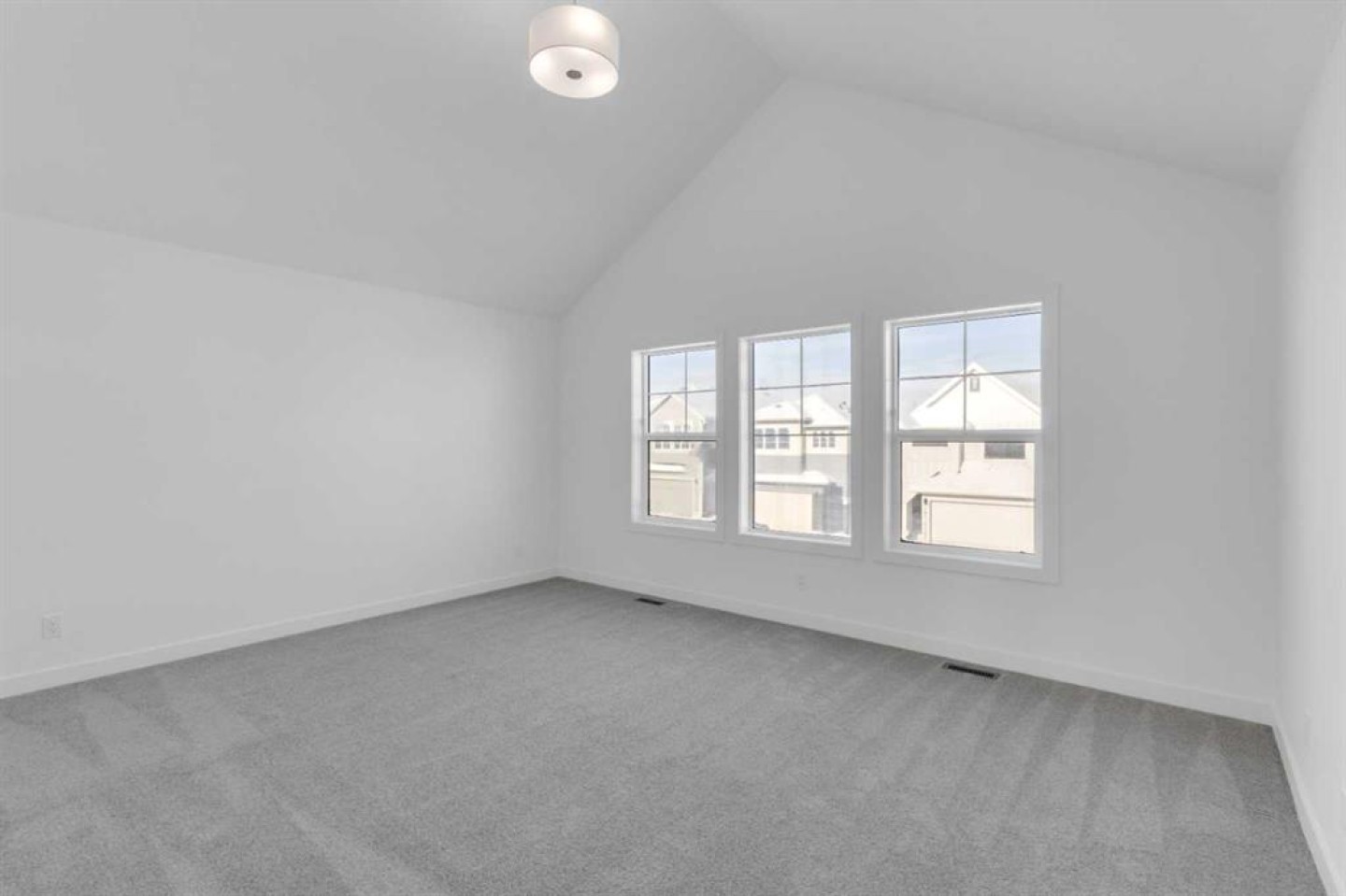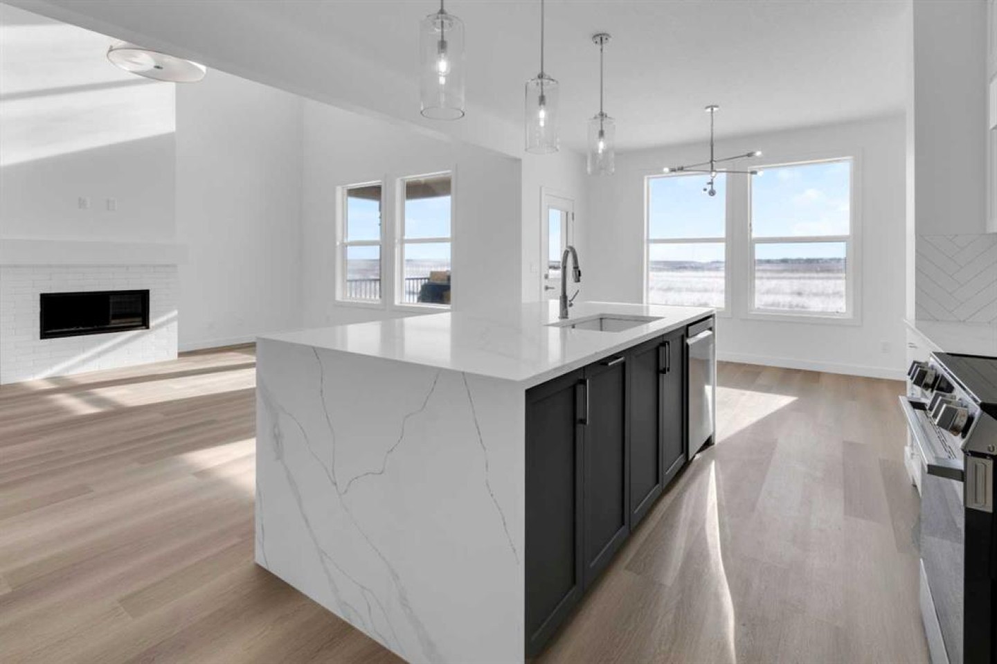 Introducing The Prestige, a beautifully appointed 3-bedroom, 3-ensuite bathroom estate home offering 2,462 sq. ft. of thoughtfully designed living space. Situated on a premium 453sqm walkout lot in the heart of Copperstone—a 70-acre master-planned community within Copperfield—this home perfectly combines luxury, functionality, and everyday comfort. The main level features an expansive open-concept layout with soaring ceilings and huge windows that fill the home with abundant natural light, creating a bright and inviting atmosphere ideal for entertaining and family living. The family room is anchored by a gas fireplace, providing warmth and a cozy focal point. The signature kitchen serves as the centerpiece, boasting a waterfall island, contemporary cabinetry, herringbone backsplash, floating shelves, generous workspace, and a large walk-in pantry, perfect for culinary enthusiasts and entertaining. Practicality is built in, with a main floor home office, a grand foyer and a separate mudroom entry from the front-attached double garage, offering ample storage and organization for busy households. A striking staircase with elegant railing detail leads to the upper level, which is open to below, overlooking the family room and enhancing the sense of space and light. Upstairs, the primary retreat impresses with vaulted ceilings, a walk-in closet with custom built-in shelving, and a spa-inspired ensuite featuring a freestanding soaker tub, dual vanities, and a fully tiled shower. Two additional well-sized bedrooms, both with their own ensuites a convenient laundry room with cabinetry and quartz countertop, and a large bonus room with vaulted ceilings complete the upper level. The backyard includes a covered rear deck and walkout concrete patio, perfect for outdoor entertaining. The yard backs onto an environmental reserve and features a rear chain-link fence, providing privacy while maintaining a connection to the natural surroundings. Residents of Copperstone enjoy beautifully landscaped parks, playgrounds, and an extensive network of walking paths. Ideally located near major shopping centres, South Health Campus, and offering quick access to Stoney Trail and Deerfoot Trail, this home ensures effortless connectivity throughout the city. Downtown Calgary and the airport are approximately 30 minutes away. Experience sophisticated design, luxury finishes, and functional family living with The Prestige in Copperstone—one of southeast Calgary’s most desirable communities.