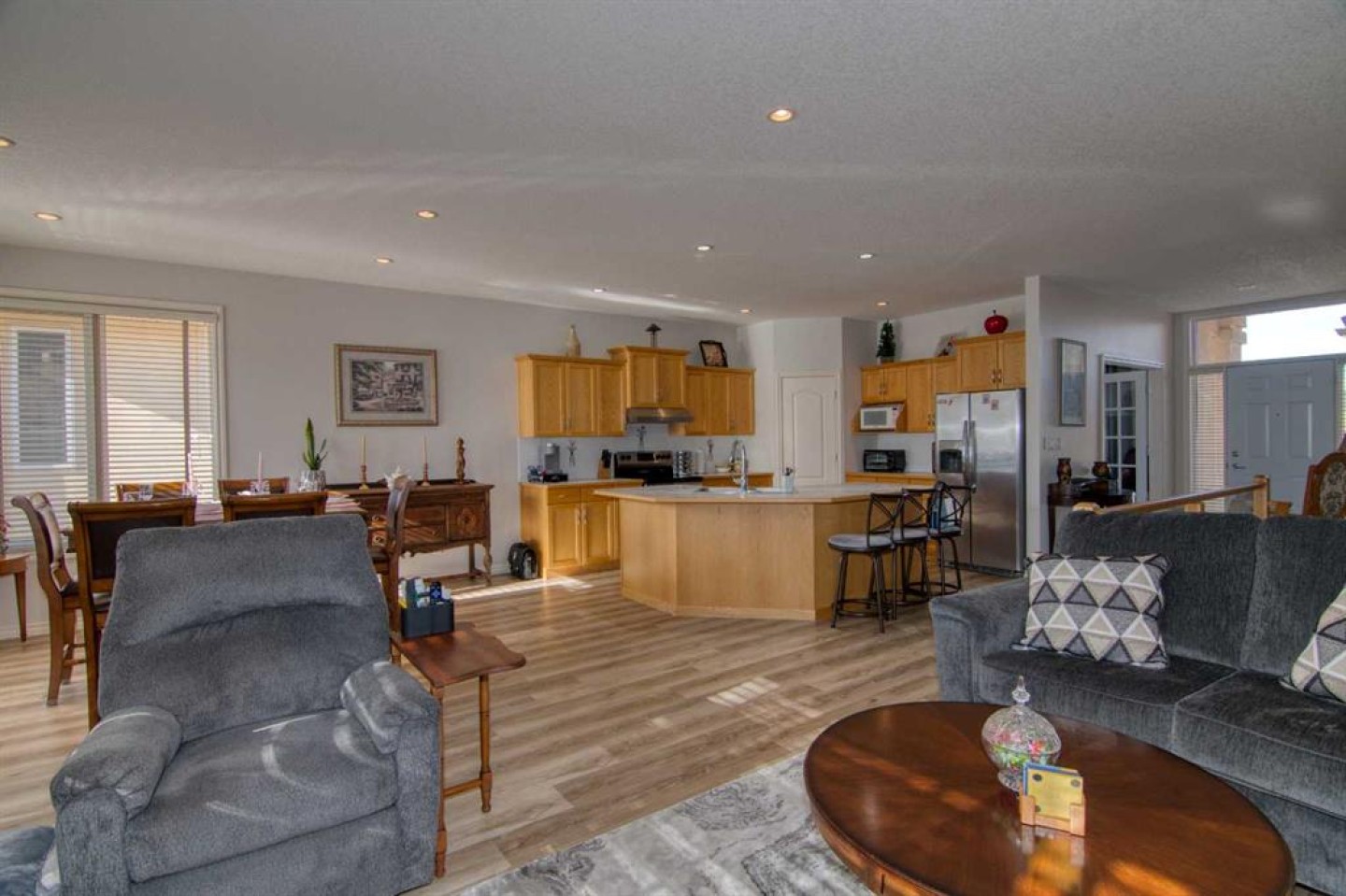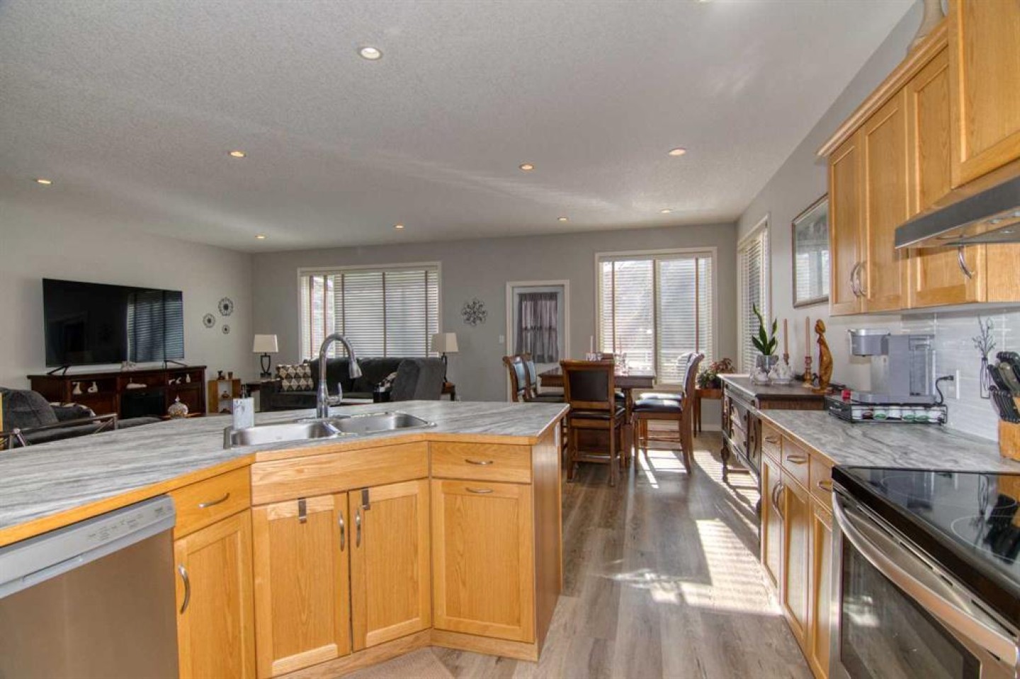 Perfectly positioned backing onto the 13th green, this beautifully maintained bungalow offers breathtaking views of the fairway, the Oldman River, and Lethbridge’s iconic coulees. Enjoy maintenance-free living in one of the city’s most sought-after golf course communities, complete with monthly HOA convenience. The main floor features a bright, open-concept design ideal for both everyday living and entertaining. The spacious kitchen flows seamlessly into the dining and living areas, creating an inviting atmosphere highlighted by large windows that capture the incredible scenery. Step out onto the expansive deck overlooking the 13th fairway — the perfect spot for morning coffee or to unwind in the evening. The primary bedroom retreat includes a 4-piece ensuite complete with a relaxing jetted tub. A second bedroom AND dedicated office space provide flexibility for guests or those working from home. Downstairs, you’ll find an illegal suite offering excellent opportunits for extended family or potential revenue. The lower level includes a large kitchen, cozy living room with gas fireplace, two bedrooms, in-suite laundry, and a walkout to a covered patio — all with continued views of the beautifully landscaped golf course setting. Recent updates provide peace of mind, including freshly painted main level, laminate flooring, appliances (3 years old), serviced furnace, central A/C, and central vacuum, all in good working order. Paradise Canyon Golf Resort Memberships can be purchased to enjoy the use of the fitness facilities. If you’ve been dreaming of serene views, golf course living, and low-maintenance convenience — this is your opportunity.