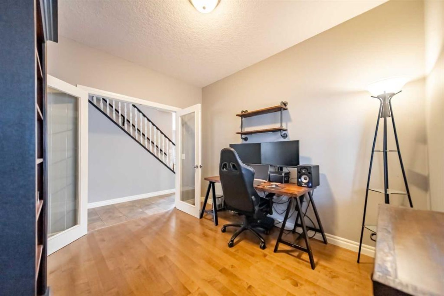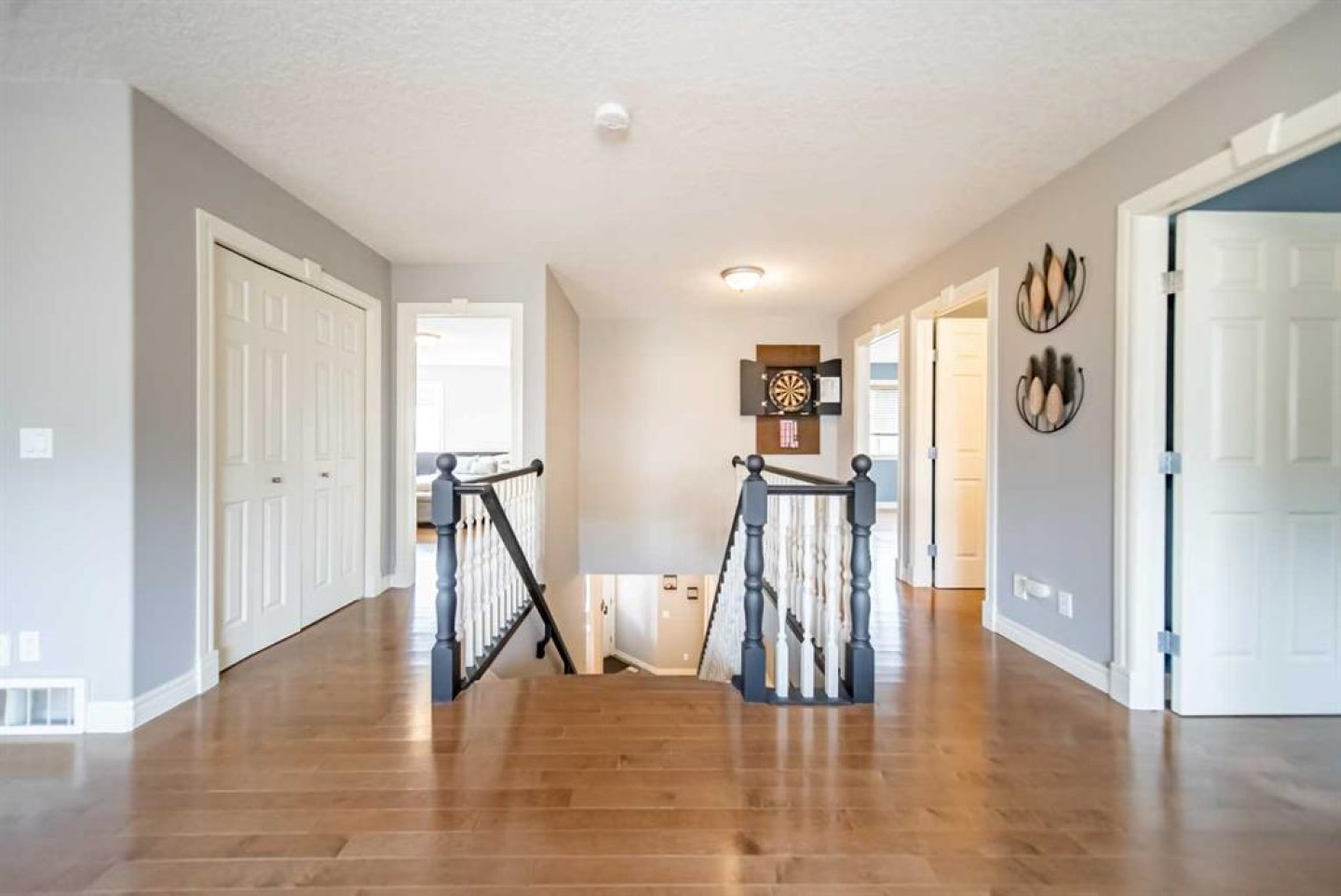 Dart Board on wall in hallway upstairs, Floating shelf on wall in master bedroom