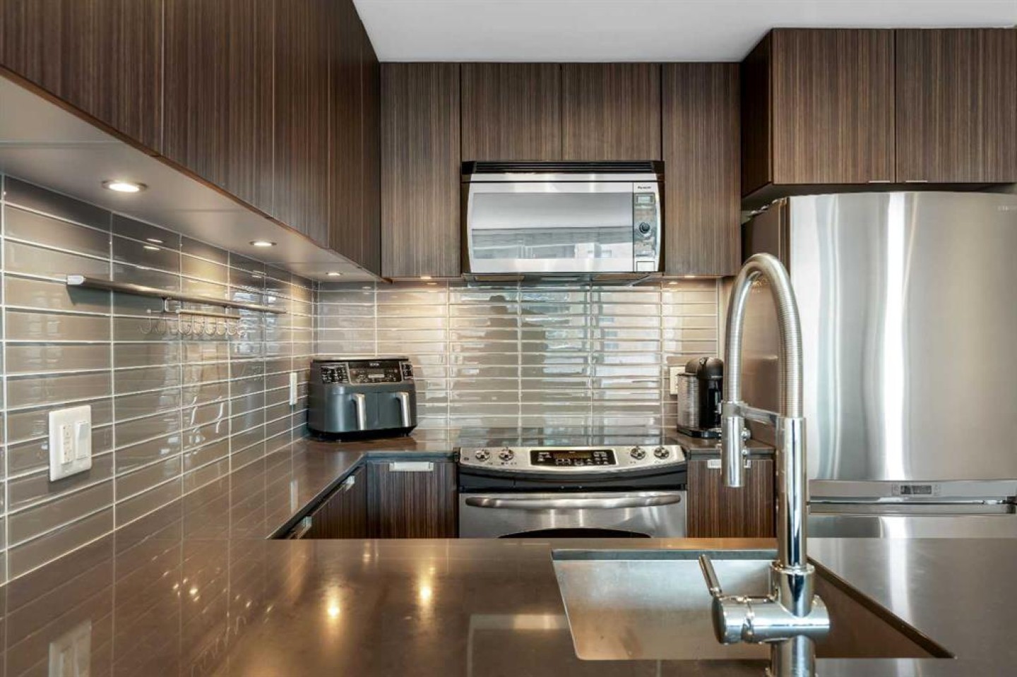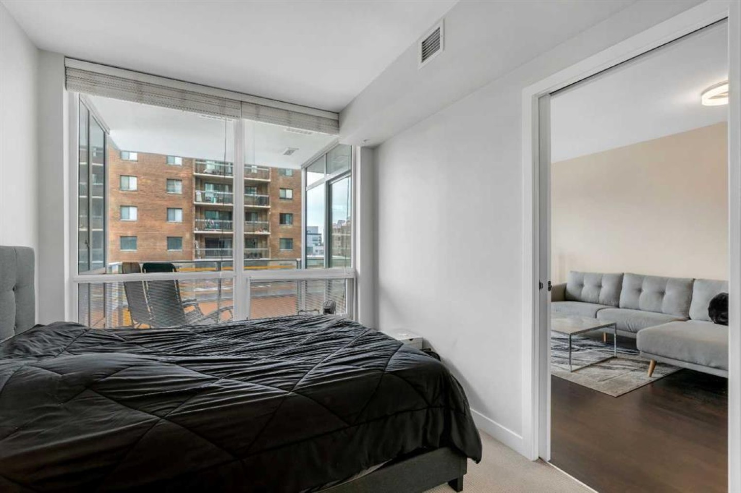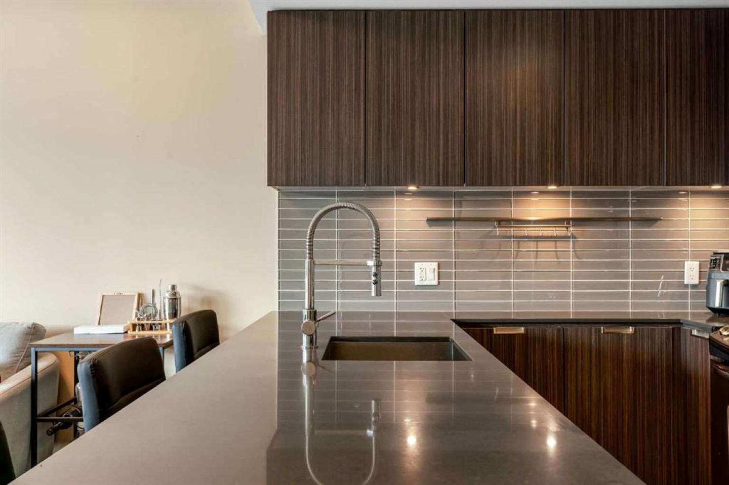 Welcome to Unit 407 in Calla, a beautifully appointed one bedroom plus den in the heart of Calgary’s vibrant Beltline, perfectly positioned next to Lougheed House and just steps from the shops, restaurants, and nightlife of 17th Avenue SW. This stylish condo offers central air conditioning and an upgraded kitchen featuring quartz countertops, full height cabinetry, and modern finishes that blend elegance with everyday functionality. The open concept layout flows seamlessly into the bright living area, complete with durable vinyl plank flooring and large windows that flood the space with natural light. Step out onto the south facing balcony, an ideal spot to enjoy your morning coffee or unwind in the evening. The primary bedroom features a walk through closet that leads to a well appointed four piece cheater ensuite, while the versatile flex space is perfect for a home office or den. Additional highlights include in suite laundry, one titled underground parking stall, and a separate storage locker. Residents of Calla enjoy premium amenities including a well equipped fitness centre, yoga studio, sauna, and guest suite. With elevated finishes, thoughtful design, and an unbeatable inner city location, this home offers the very best of urban living.