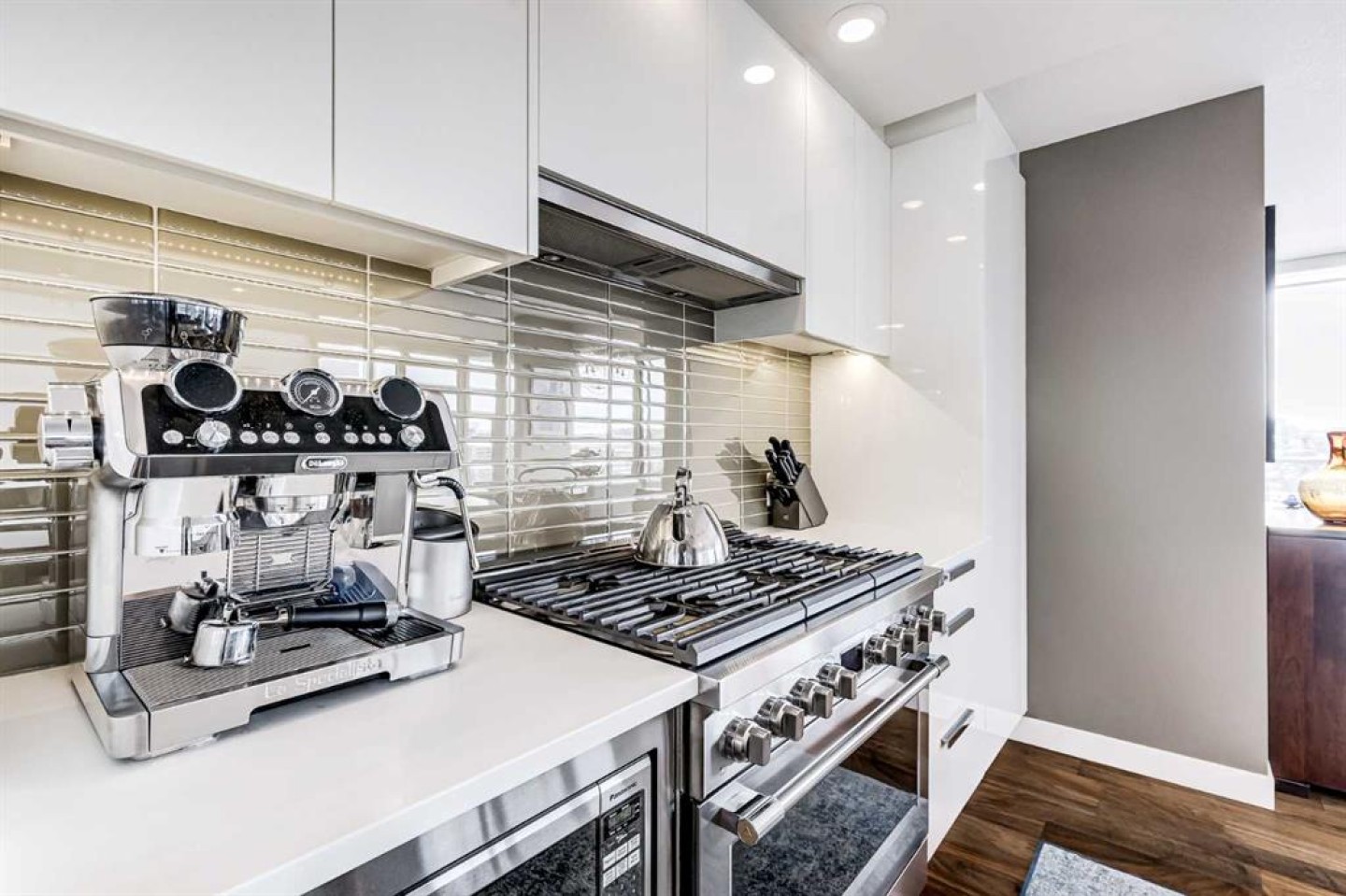 Experience elevated inner-city living in this southwest-facing corner unit at Ezra on Riley Park, offering exceptional natural light through floor-to-ceiling windows and a bright, open layout. Positioned on the 6th floor, it showcases unobstructed views of the downtown skyline, Riley Park, and glowing west-facing sunsets. Thoughtfully designed with two bedrooms, two full bathrooms, built-in storage, and a seamless layout, this home is ideal for those who value comfort, style, and convenience. The contemporary kitchen impresses with brand new stainless steel appliances, a gas range, quartz countertops, a spacious island, and ample cabinetry—perfect for everyday cooking or hosting. The living and dining areas transition effortlessly to two expansive private patios, one facing south and the other west, creating an outstanding indoor-outdoor living experience with endless views. The primary bedroom serves as a peaceful retreat with a walk-in closet featuring built-ins and a spa-inspired ensuite complete with double vanity, glass shower, and a soaking tub for unwinding at the end of the day. The second bedroom enjoys impressive views and ample natural light, making it a comfortable space for guests, a home office, or a versatile flex room. A full laundry room with built-in shelving and brand new washer/dryer adds convenience, storage, and function to the home. a full main bathroom finish off this comfortable two-bed, two-bath layout. Residents of Ezra enjoy premium amenities, including a fitness centre in the West Tower, a stylish lounge with wine storage in the East Tower, secure underground parking, a storage locker, guest suite, and a dog-friendly environment. Set directly on Riley Park and steps from the LRT, Kensington’s boutique shops and cafés, Safeway, and the Bow River pathway system, this is a rare opportunity to enjoy the best of nature, convenience, and vibrant urban living—all from a truly exceptional home.