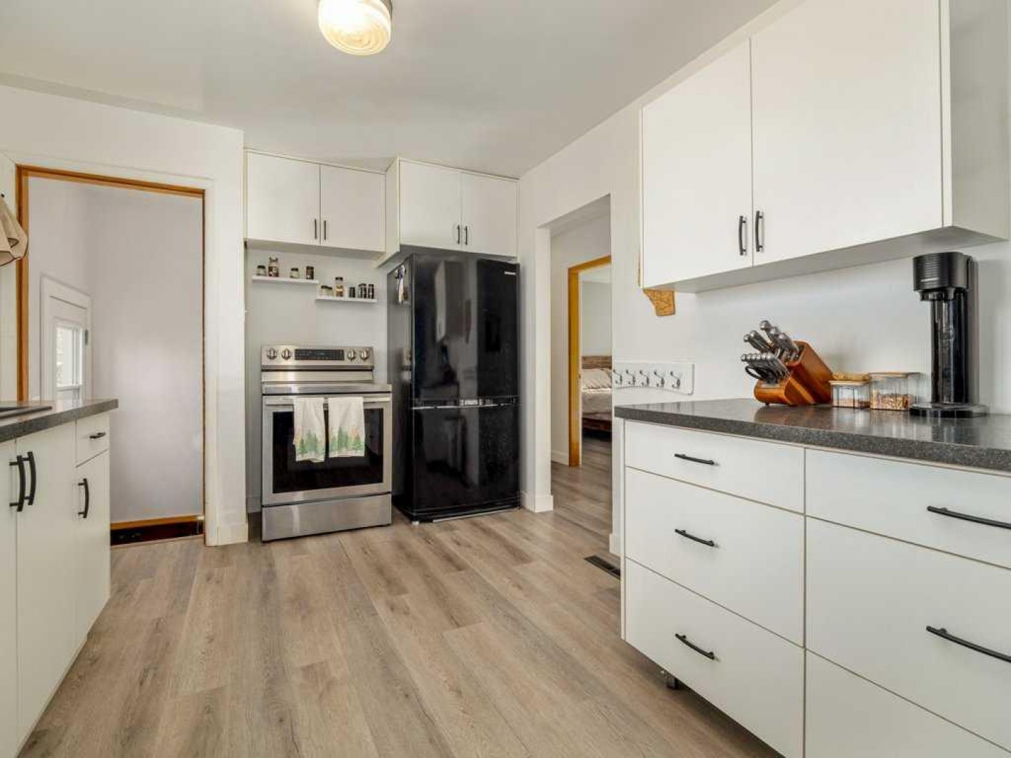 This inviting home shines with recent upgrades including a newer kitchen featuring sleek white cabinetry, contemporary countertops, and room, plus fresh flooring throughout the main level for a bright, cohesive feel. The open living and dining areas provide plenty of room for relaxing or gathering, while the efficient kitchen layout connects seamlessly for everyday meals and entertaining. Upstairs you get three comfortable bedrooms on the main floor, including a spacious primary with ample closet space, plus a full 4-piece bathroom. The lower level adds even more versatility with two additional bedrooms, a large rec room perfect for movie nights or hobbies, a family room area, 3-piece bath, laundry, utility space, and good storage options. Step outside to a practical single-level design with a fenced backyard offering privacy and room for play, gardening, or simply unwinding amid mature trees in your massive lot with amazing mountainn views. Pincher Creek delivers the perfect balance of quiet community living and proximity to incredible southern Alberta adventures. Just minutes from Lundbreck Falls for easy hikes and scenic picnics, a quick drive to Waterton Lakes National Park for pristine lakes, wildlife spotting, and top-tier trails, and easy reach to Castle Provincial Park and Crowsnest Pass for hiking, mountain biking, fishing, and historic stops like Frank Slide. Year-round options include fly fishing on nearby rivers, kayaking at Oldman Reservoir, skiing at Castle Mountain Resort, and more – all from a welcoming small-town base.