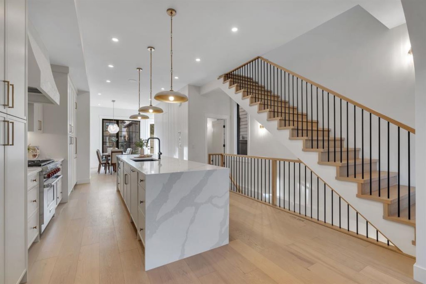 The builder is offering an extended warranty with the standard first year coverage extended to two full years, providing enhanced peace of mind and added long term protection for the new homeowner. This exceptional brick residence by Jerry Homes is ideally situated near Marda Loop in one of Calgary’s most desirable inner city neighbourhoods and offers a refined blend of timeless architecture and modern luxury. The thoughtfully designed main level features soaring 10 foot ceilings, expansive windows that flood the space with natural light, an elegant dining area with detailed wall treatments, and a stunning chef inspired kitchen anchored by an oversized island, quartz countertops, custom cabinetry, premium built in Wolf and Dacor appliances, a concealed walk in pantry, and sophisticated designer finishes throughout. A beautifully defined great room centers around a custom multi tier gas fireplace creating an inviting yet elevated atmosphere, while a functional mudroom with ample storage adds everyday convenience. Upstairs, 9 foot ceilings frame a luxurious primary retreat complete with dual walk in closets and a spa like five piece ensuite finished in full height designer tile and offering in floor heating, a steam shower rough in, and a deep soaker tub. Two additional bedrooms, a well appointed bathroom, and a spacious dedicated laundry room complete the upper level. The fully developed basement expands the living space with a large recreation room, wet bar, fourth bedroom, and a full bathroom along with in floor heating rough in for added comfort. Additional highlights include rough ins for air conditioning, built in ceiling speakers, a security system, and exterior cameras. Surrounded by top rated schools, parks, and the vibrant shops and restaurants of Marda Loop, this home delivers elevated inner city living with exceptional craftsmanship and everyday practicality.
