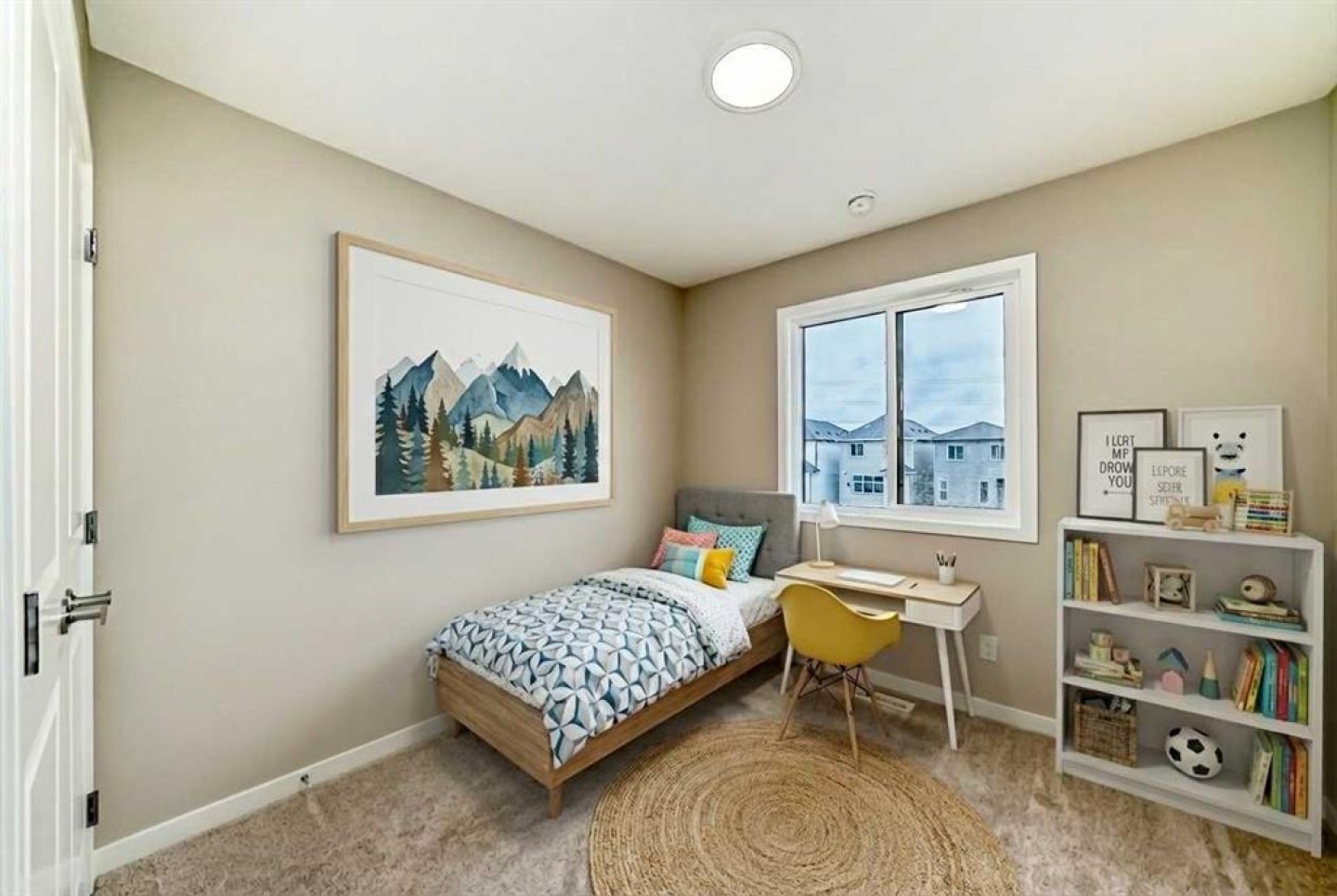 Welcome to the Cari, a beautifully designed home where modern style meets everyday functionality. With 1,264 sq. ft. of thoughtfully planned living space, this 3-bedroom, 2.5-bathroom residence is crafted to elevate your lifestyle while offering room to grow. From the moment you arrive, the curb appeal is undeniable with a landscaped front yard that sets the tone for the elegance inside. Step through the front door and into the bright and open main level, where luxury vinyl plank flooring seamlessly connects the living, dining, and kitchen areas. The heart of the home is the stunning L-shaped kitchen, featuring sleek two-tone cabinetry, gleaming quartz countertops, a central island, and stainless steel appliances that make cooking and entertaining both effortless and enjoyable. The open-concept design ensures that whether you’re hosting family dinners or relaxing with friends, every space feels welcoming and connected. Upstairs, the layout is just as impressive. The serene primary retreat offers the perfect escape, complete with a spa-inspired ensuite finished with quartz countertops and modern fixtures. Two additional generously sized bedrooms, along with a stylish full bathroom, provide plenty of space for family or guests. Convenience continues with an upper-level laundry room, designed with luxury vinyl tile flooring for both style and durability. The lower level holds endless potential with a 9’ foundation height and thoughtful rough-ins for a 3-piece bathroom and a wet bar sink. A separate side entrance adds flexibility for a future basement suite (A secondary suite would be subject to approval and permitting by the city/municipality). Every detail of the Cari has been carefully considered, from the knockdown ceiling texture to the quality finishes throughout. This is more than a home—it’s a place designed to adapt to your lifestyle and grow with you. Located in one of Calgary’s newest and most exciting communities, Hotchkiss is a neighborhood where modern living meets natural beauty. Nestled in the southeast, Hotchkiss offers a perfect balance of peaceful surroundings and urban convenience. Residents enjoy easy access to scenic pathways, parks, and green spaces, creating a community where outdoor living thrives. Families will appreciate the close proximity to schools, recreational amenities, and shopping, while commuters benefit from convenient connections to major roadways, making every part of the city accessible. With its vision for thoughtful planning and vibrant streetscapes, Hotchkiss is more than a place to live—it’s a place to belong. The Cari is not just a home; it’s an opportunity to enjoy stylish comfort in a thriving, growing community
