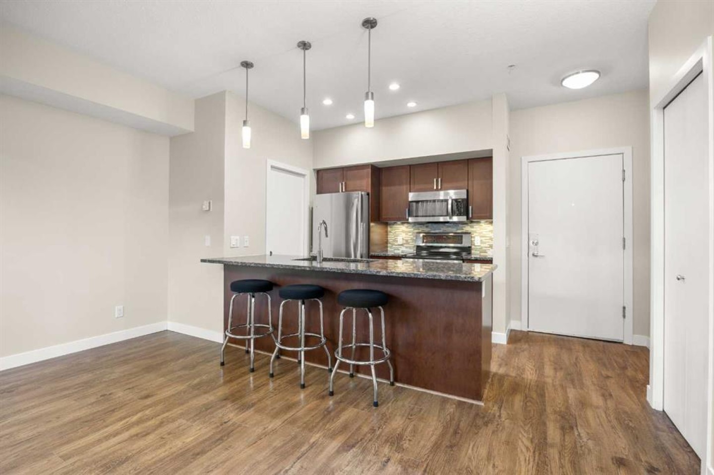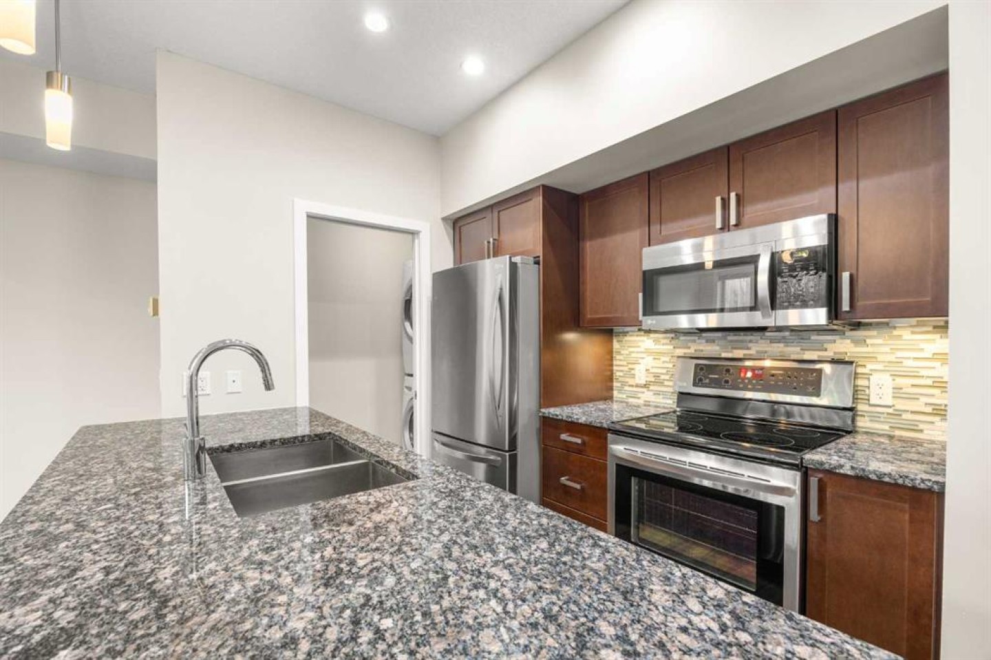 Welcome to this stylish 1 Bedroom Apartment in the established Highland Park community! The unit entrance faces east, with a big window overlooking the park, creating a bright and welcoming corridor as you walk in. Inside, the open-concept layout features 8'10" ceilings and a modern Kitchen with granite countertops, a large Breakfast Bar, and Stainless Steel Appliances, flowing seamlessly into a spacious Living and Dining Area. The Dining Room opens to a Patio with gas hookup—perfect for summer BBQs and relaxing outdoors. The Primary Bedroom offers a Walk-In Closet and a cheater door to the 4-Piece Bathroom with granite countertops. In-Suite Laundry with additional storage next to the Kitchen, plus 1 assigned underground Parking Stall, and one storage unit, complete this practical and comfortable home. The building is pet-friendly with board approval, offering excellent amenities including Bike Storage, a full Kitchen Party Room, and covered Visitor Parking. Ideally located close to Parks, a Dog Park, Schools, Restaurants, Shopping, and with easy access to Deerfoot Trail NE, Centre Street, and Downtown. Don’t miss your chance to experience the perfect blend of style, comfort, and convenience in Highland Park—book your showing today!