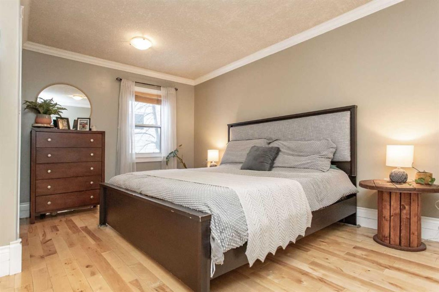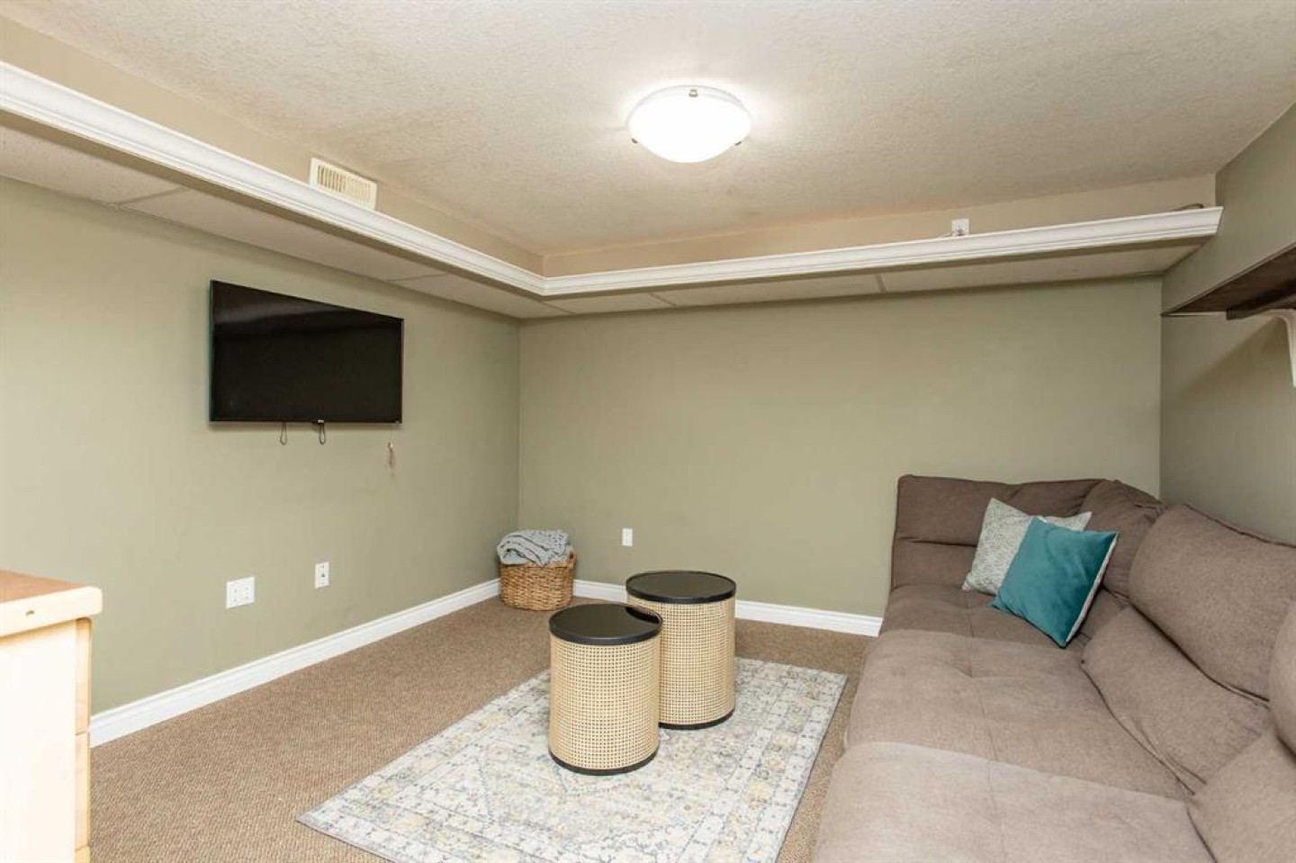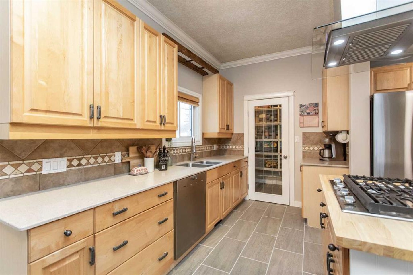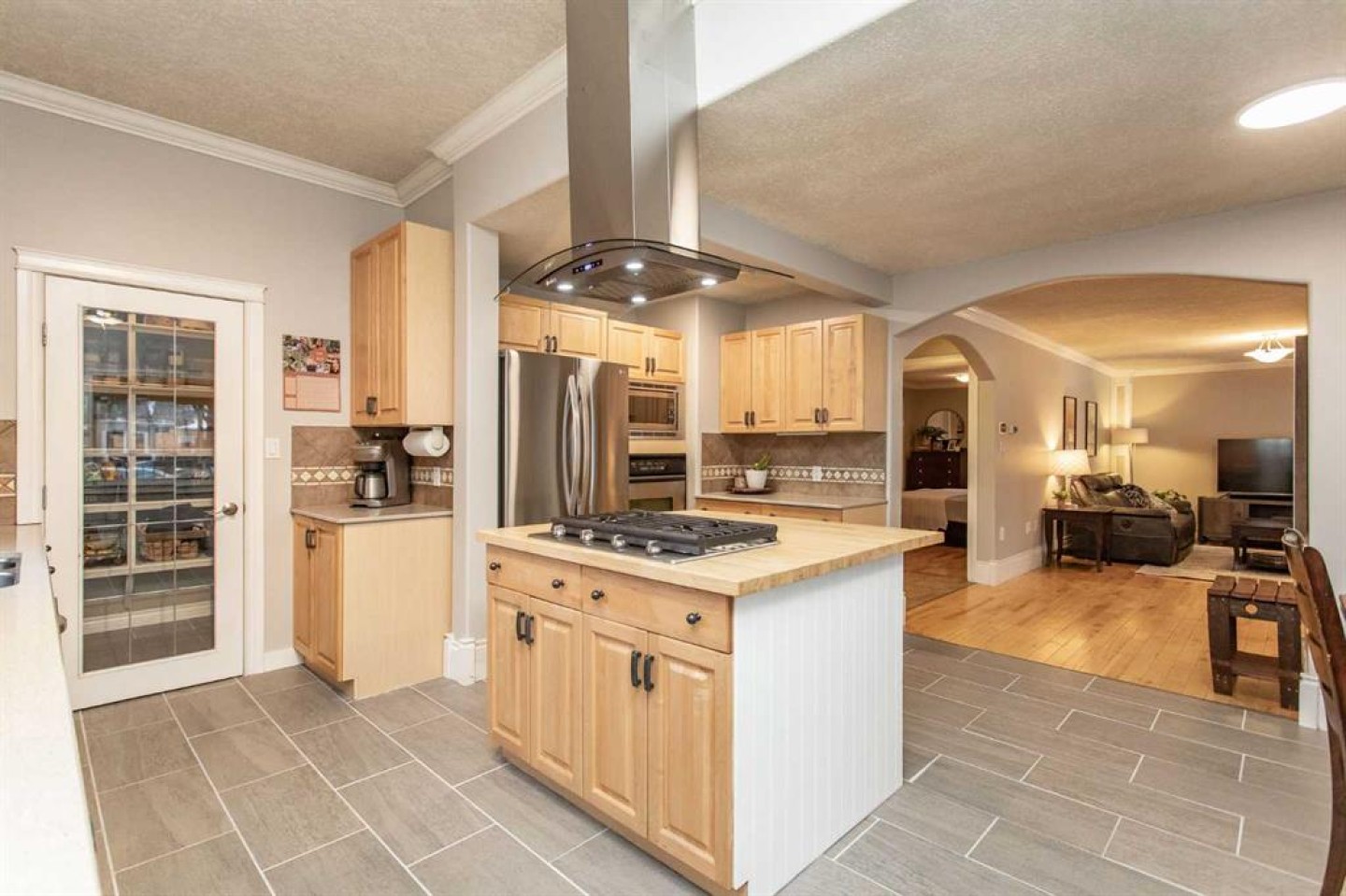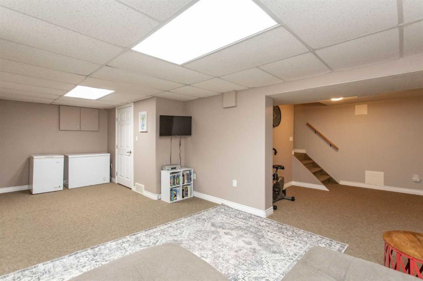 Completely remodeled and boasting over 2000 sq ft which includes 8-10' additions of all new construction this exceptional two story home sits proudly on a picturesque tree lined street. Home is perfectly located just a short block to the incredible Waskasoo trail system and within walking distance to a number of schools, Kerry Wood Nature Center and for entertainment head to the Memorial Center for live performances. Envision yourself sitting on the huge covered front porch ideal for savoring a morning coffee on. Decorative stone pillars give it a rustic wood feel. Follow inside to the open and inviting floor plan complimented with maple hardwood floors and ceramic tile throughout. Large family room with picture window allows plenty of natural light to cascade in plus the crown molding along the ceiling lines add to the finishing. An absolute chefs dream for a kitchen design offering full surround Silestone quartz counters, undermount sink, built in oven and microwave, loads of cabinet space and drawers, coffee bar station plus a center island with gas cook top, hanging exhaust fan and Butcher Block counter top. Huge walk in pantry with floor to ceiling shelving plus there is a trap door leading to an additional storage space below. Enjoy the crackling free standing wood fireplace just off the dining area adding ambience to a winter day. The sumptuous main level Primary bedroom is a true retreat away. Plenty of room for your King size furniture, large walk in closet plus a spa like en suite offering dual vanity, walk in double shower plus a soothing two person corner air tub. Head upstairs and you will find three large, comfortable bedrooms with ample space providing flexibility for growing families or guest accommodations. Fully developed basement offers a great amount of space for recreation and entertainment. Enjoy your favorite streaming in the private media room with trayed lighting plus your own wet bar. Games area perfect for the kids to have fun in plus the office/den is great for work space or studio area. The mechanical/laundry room is equipped with wash basin, functioning toilet, two newer hot water tanks, high efficiency furnace plus built in vac. Main plumbing stack has been replaced with back water valve plus new electrical panel in home as well. Home was also renovated to incorporate thermal break technology. Staggered stud framing greatly mitigates cold penetration, manages heat penetration and also minimizes noise transfer for added comfort. There is a spacious covered back deck which even offers a gas line for the bbq allowing you to grill year round. The beautiful mature yard comes with its own food forest label boasting raspberry, blueberry, black current bushes plus an apple tree. Firepit area great for sitting around and making enjoyable memories. Large 24 x 24 heated garage ideal for vehicle storage plus there is even room for RV parking plus there is a garden shed perfect for seasonal items.