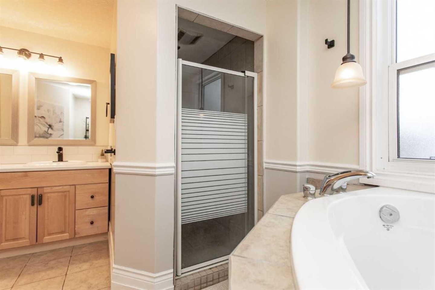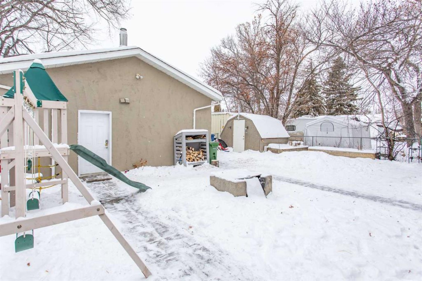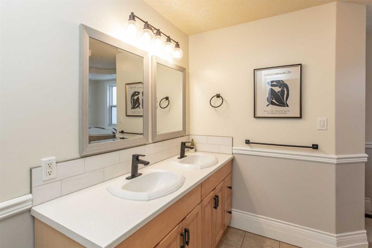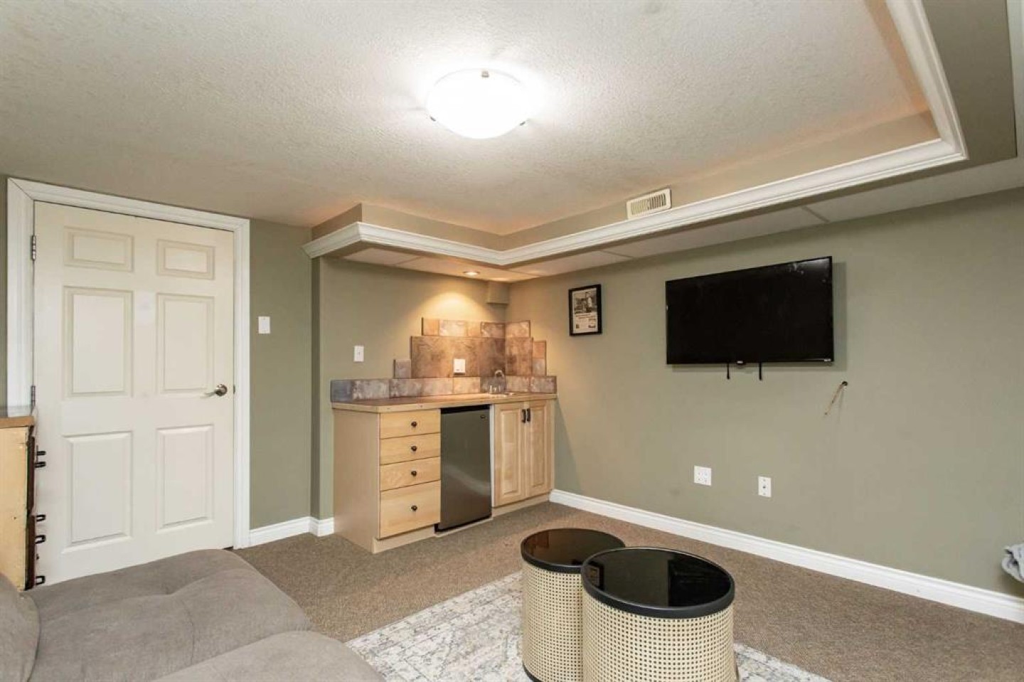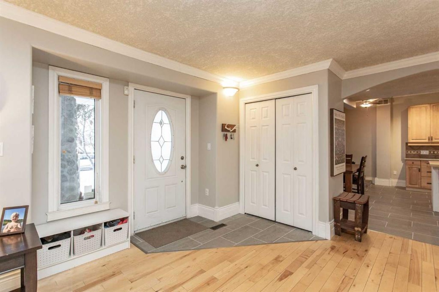 Completely remodeled and boasting over 2000 sq ft which includes 8-10' additions of all new construction this exceptional two story home sits proudly on a picturesque tree lined street. Home is perfectly located just a short block to the incredible Waskasoo trail system and within walking distance to a number of schools, Kerry Wood Nature Center and for entertainment head to the Memorial Center for live performances. Envision yourself sitting on the huge covered front porch ideal for savoring a morning coffee on. Decorative stone pillars give it a rustic wood feel. Follow inside to the open and inviting floor plan complimented with maple hardwood floors and ceramic tile throughout. Large family room with picture window allows plenty of natural light to cascade in plus the crown molding along the ceiling lines add to the finishing. An absolute chefs dream for a kitchen design offering full surround Silestone quartz counters, undermount sink, built in oven and microwave, loads of cabinet space and drawers, coffee bar station plus a center island with gas cook top, hanging exhaust fan and Butcher Block counter top. Huge walk in pantry with floor to ceiling shelving plus there is a trap door leading to an additional storage space below. Enjoy the crackling free standing wood fireplace just off the dining area adding ambience to a winter day. The sumptuous main level Primary bedroom is a true retreat away. Plenty of room for your King size furniture, large walk in closet plus a spa like en suite offering dual vanity, walk in double shower plus a soothing two person corner air tub. Head upstairs and you will find three large, comfortable bedrooms with ample space providing flexibility for growing families or guest accommodations. Fully developed basement offers a great amount of space for recreation and entertainment. Enjoy your favorite streaming in the private media room with trayed lighting plus your own wet bar. Games area perfect for the kids to have fun in plus the office/den is great for work space or studio area. The mechanical/laundry room is equipped with wash basin, functioning toilet, two newer hot water tanks, high efficiency furnace plus built in vac. Main plumbing stack has been replaced with back water valve plus new electrical panel in home as well. Home was also renovated to incorporate thermal break technology. Staggered stud framing greatly mitigates cold penetration, manages heat penetration and also minimizes noise transfer for added comfort. There is a spacious covered back deck which even offers a gas line for the bbq allowing you to grill year round. The beautiful mature yard comes with its own food forest label boasting raspberry, blueberry, black current bushes plus an apple tree. Firepit area great for sitting around and making enjoyable memories. Large 24 x 24 heated garage ideal for vehicle storage plus there is even room for RV parking plus there is a garden shed perfect for seasonal items.