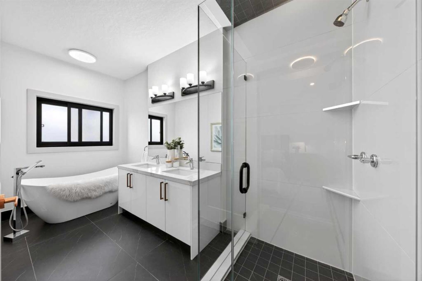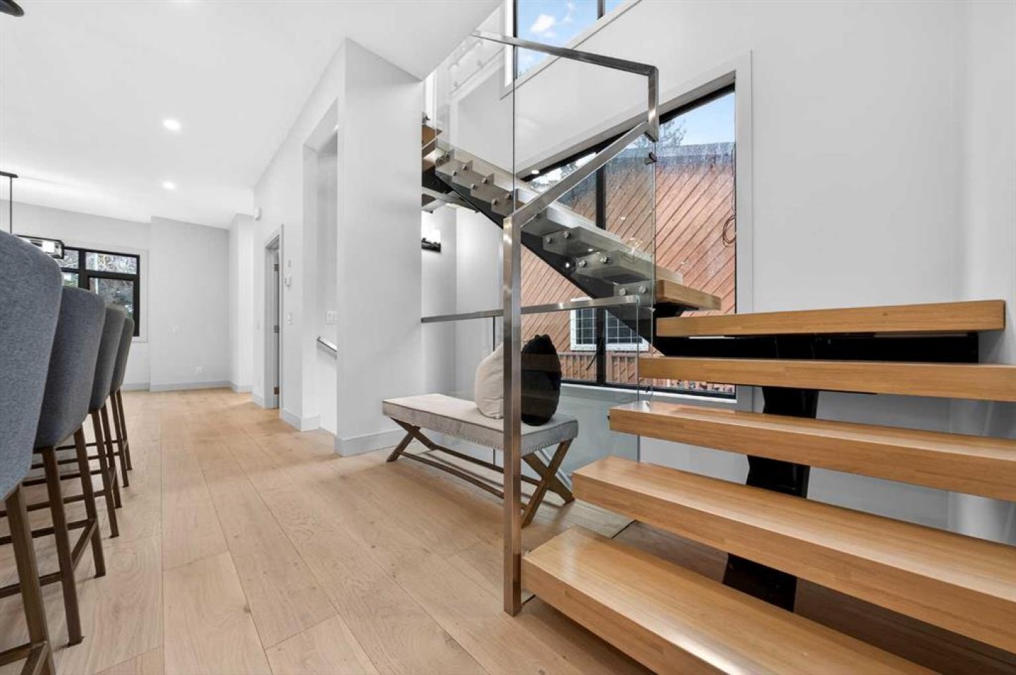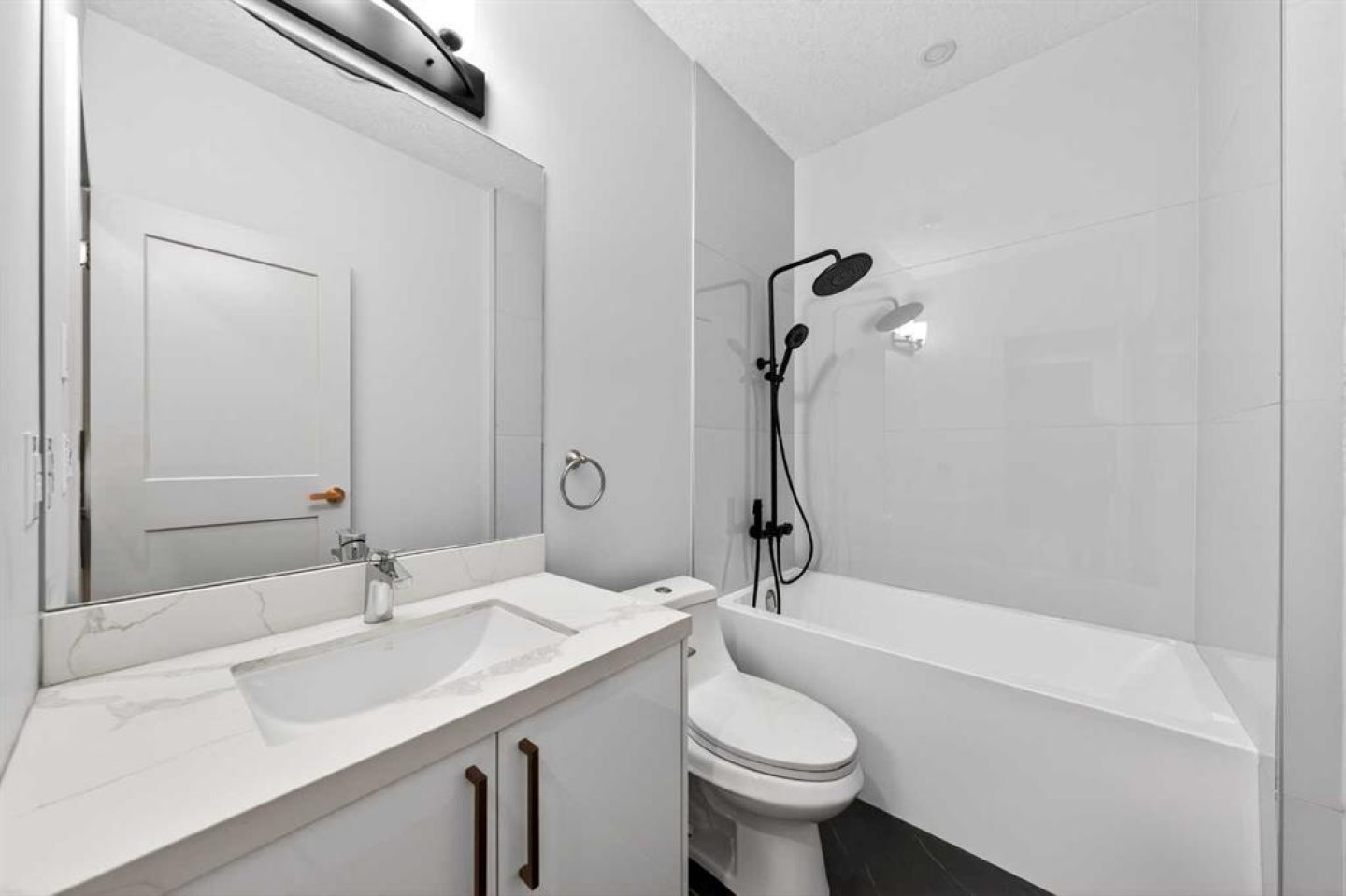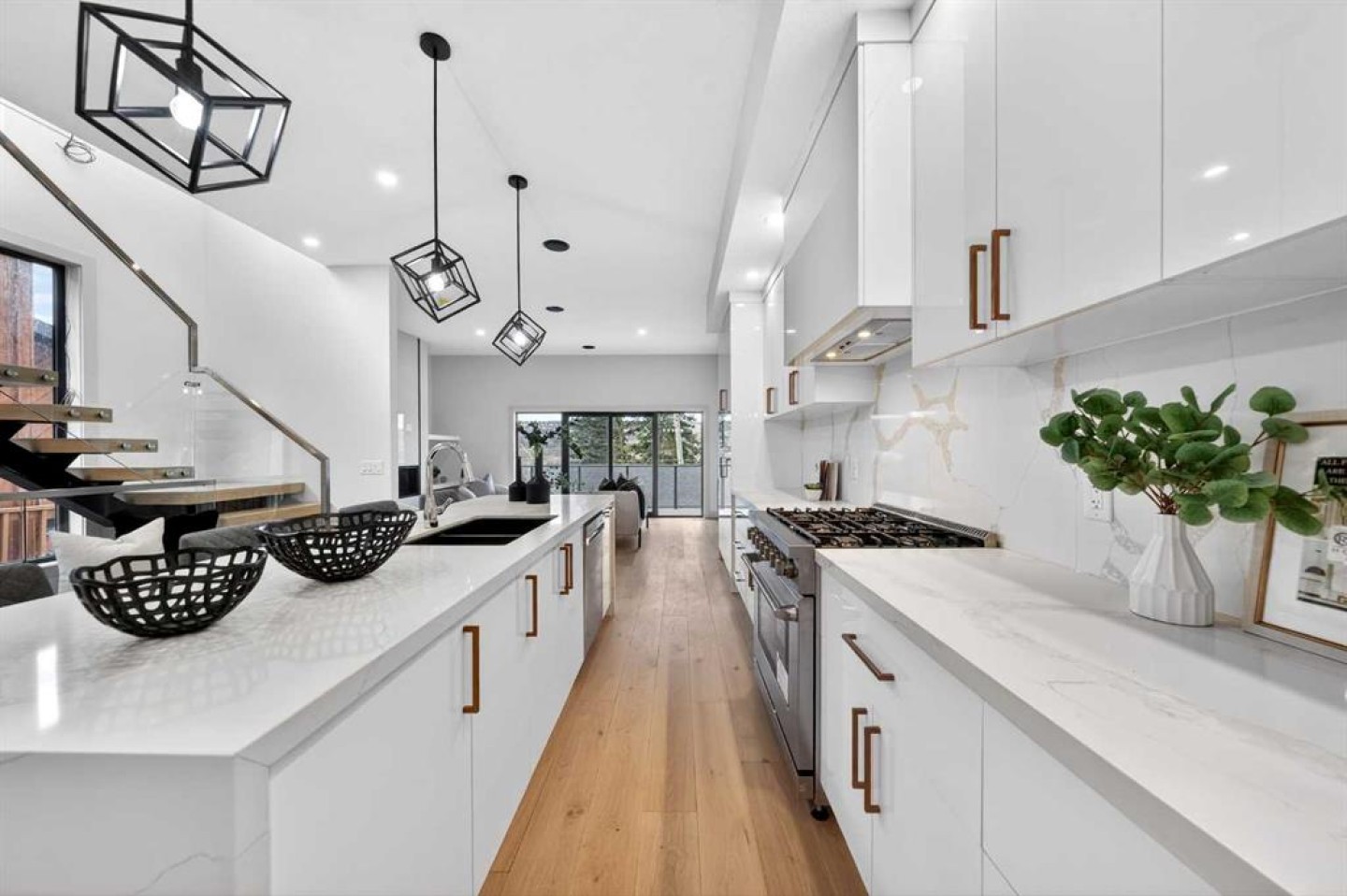 **OPEN HOUSE this SUN, Feb 22th at 2-4PM** Welcome to a stunning modern BRAND NEW half-duplex infill home in the prestigious community of Montgomery, offering 3 bedrooms, 2.5 baths, and over 1,815 sq. ft. of beautifully designed living space, plus a fully finished walkout basement with a 1-bedroom Legal Suite providing excellent rental income potential. Step inside and be greeted by elegant engineered hardwood flooring throughout and impressive 10 ft ceilings on the main level that create a bright, spacious atmosphere. Right off the entry, a good-sized Dining room with large windows welcomes you with natural light. The heart of the home is the modern gourmet Kitchen, complete with upgraded quartz countertop waterfall center island, stunning complete luxury white cabinetry with rose gold hardware with smart storage solutions, BRAND NEW stainless steel gas stove, built-in fridge, built-in microwave, and dishwasher. The open floorplan flows seamlessly into the spacious Living room, anchored by an electric fireplace and providing access to a full-width South-West facing Deck with gas hookup—perfect for barbecues and outdoor entertaining while enjoying beautiful views. A modern open riser staircase with glass panel railing leads to the upper level featuring 9 ft ceilings. The luxurious Primary bedroom offers a private balcony overlooking Bowmont Park and the Bow River—ideal for relaxing and enjoying spectacular views. The 5pc Ensuite is a true retreat with double vanity, quartz countertops, walk-in closet, free-standing soaker tub, and separate tiled standing shower. Two additional well-appointed Bedrooms complete this level, along with a full 4pc bathroom and a convenient Laundry room. The fully finished walkout basement features a 1-bedroom legal suite with separate side entry, offering excellent rental income potential. The legal suite includes a bright Living room, full Kitchen, in-suite Laundry, and one well-sized Bedroom with walk-in closet—providing comfortable, private living space for tenants or extended family. The spacious Living room with large windows leads to a covered rear Patio with gas hookup, perfect for year-round enjoyment. A detached double garage with back lane access completes this exceptional property. Located in prestigious Montgomery, just steps to the Bow River pathways, Shouldice Park, and the Paddle Station for kayaking and rafting adventures. Minutes to Market Mall, University District shopping, University of Calgary, Foothills Medical Centre, and Alberta Children's Hospital. Easy access to Trans-Canada Highway for quick commutes downtown, to the mountains, and beyond. Excellent schools nearby including Terrace Road Elementary and Foundations for the Future Charter School. This is a fantastic opportunity to own an exceptional Montgomery home with income potential in one of Calgary's most desirable inner-city communities!