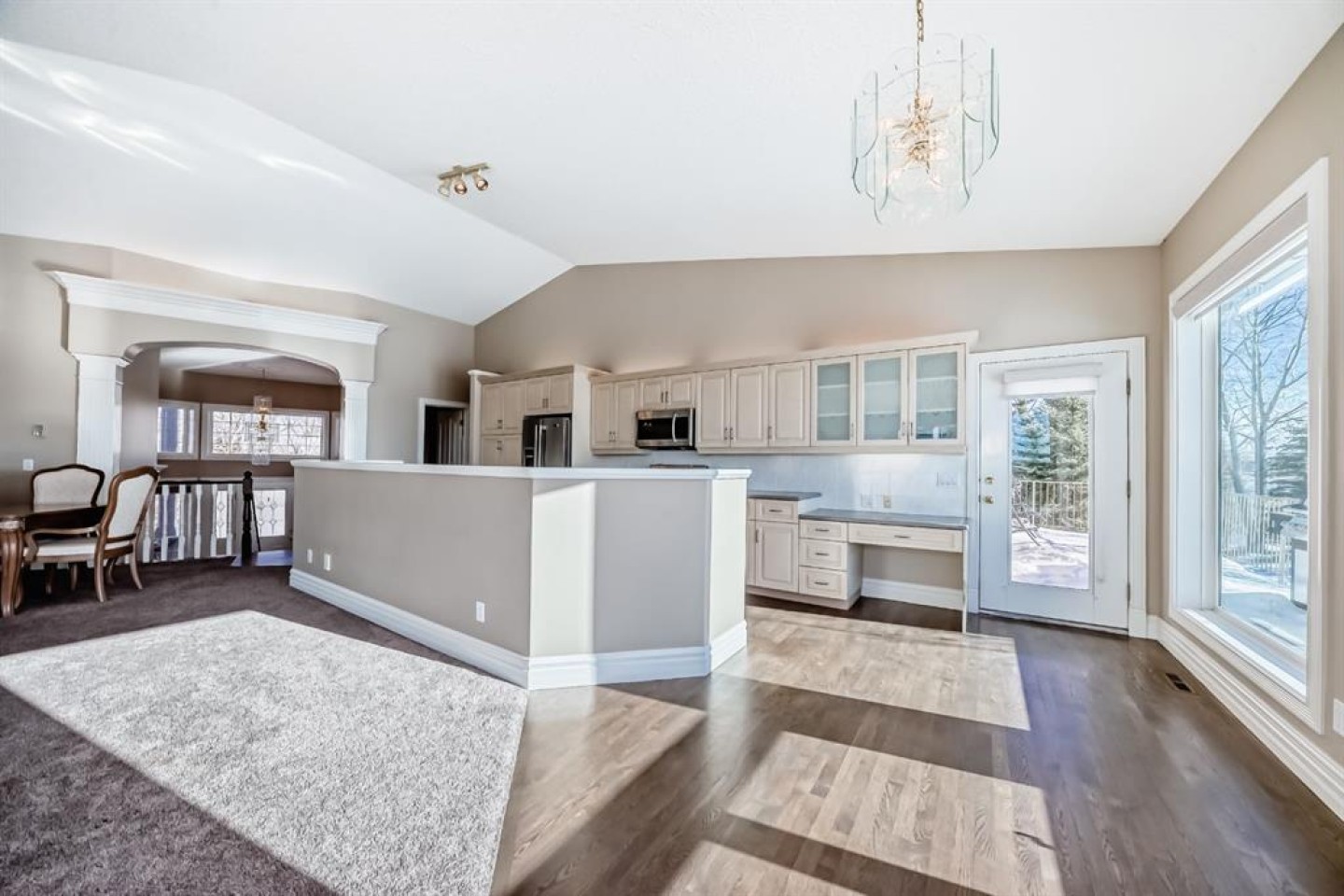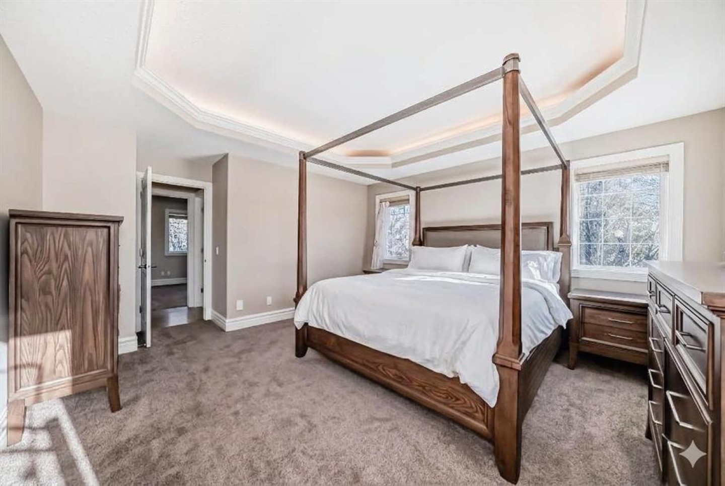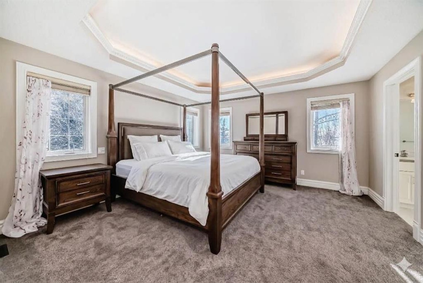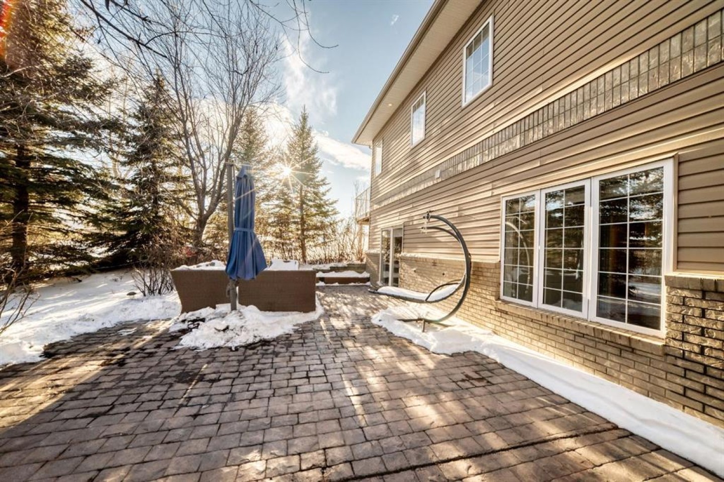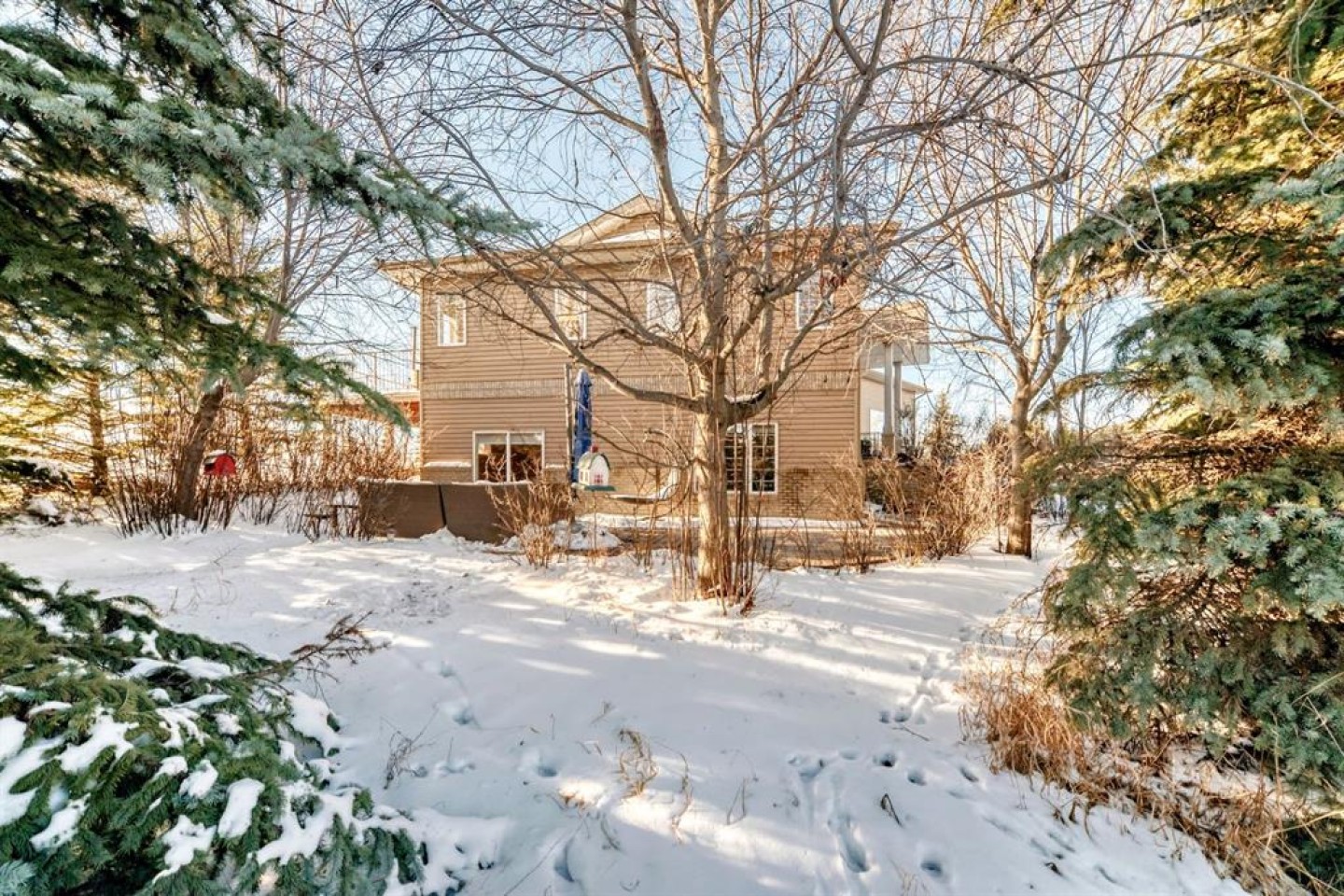 The nicest location in Sharp Hill with over 2 acres, mature trees & so much privacy! 2 heated triple garages! Welcome to this exceptional acreage retreat offering the perfect balance of privacy, luxury, & convenience—just minutes from everyday amenities. Step into the bright & welcoming foyer, highlighted by soaring vaulted ceilings and expansive windows that flood the space with natural light. Upstairs, the open-concept living, dining, & kitchen area impresses with stunning 12-foot vaulted ceilings & custom built-ins framing the cozy gas fireplace. Large windows showcase breathtaking views of mature trees, the distant Rocky Mountains, & create a warm, inviting atmosphere throughout. Just off the kitchen, step out onto the patio to enjoy spectacular sunset views. The spacious primary bedroom features a 4-piece ensuite with double sinks, a large shower, & a separate walk-in closet. Unique ceiling lighting adds an elegant ambiance. 2 additional bedrooms upstairs also feature stylish ceiling lighting, while the conveniently located main floor laundry room offers ample cabinetry. The basement boasts 9-foot ceilings, 4 additional bedrooms, and a full bathroom—ideal for larger families or multi-generational living. The expansive recreation room includes oversized windows, a wet bar, & a 2nd fireplace with custom built-ins. The walkout sliding door accesses a beautiful large concrete patio to sit among the trees. There’s also a generous storage room & an under-the-stairs playroom—perfect for kids or additional storage. Car or hobby enthusiasts will appreciate the attached triple oversized garage with 14-foot ceilings to accommodate a lift, including one 11-foot high door. This heated & drywalled space also features upper storage, a closet, man door access, & rough-in plumbing for a sink. In addition, a newer 2nd detached triple garage is powered, heated, & drywalled. Surrounded by mature trees, this private property feels like your own personal park. A picturesque gazebo sits beside the pond, which transforms into a skating rink in winter, complete with power & water access. On the back side of the home, enjoy cozy evenings gathered around the fire pit area. The yard offers both mountain & glimpses of downtown Calgary in the distance—an incredible backdrop for everyday living. The paved driveway is beautifully illuminated by classic lamp posts, creating a stunning approach to the home. All of this, just 5 minutes from Costco, CrossIron Mall, & all amenities in Airdrie Upgrades include high-end Graber blinds throughout (with electric blinds in the main living area), phantom screens, garburator, new plumbing, newer carpets, a 4-zone ultra high-efficiency furnace, water softener, two hot water tanks A rare opportunity to own a luxurious, private acreage with unbeatable access to both nature & city convenience.