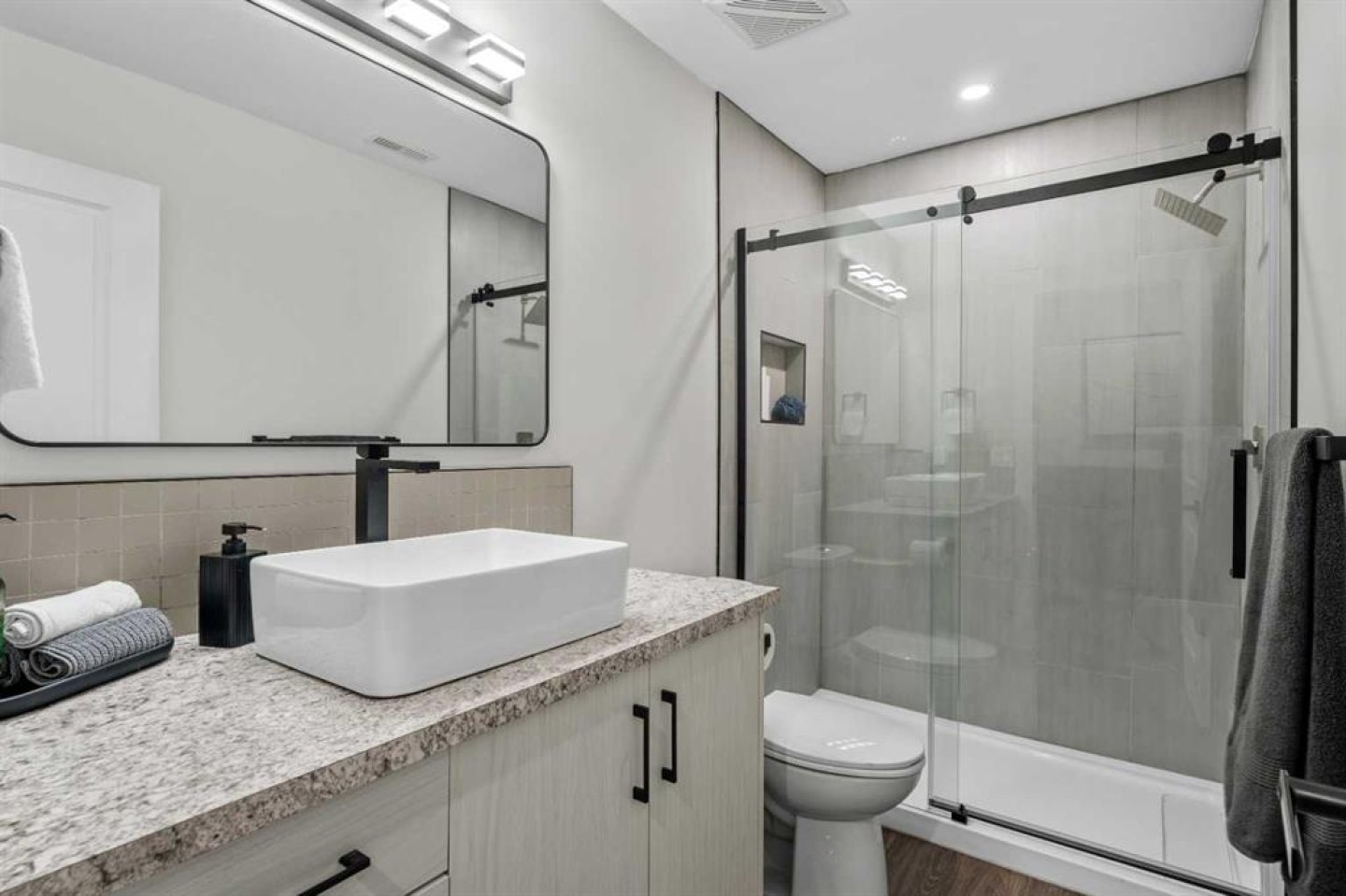 Welcome to this FULLY RENOVATED residence in the heart of Chaparral, offering LAKE ACCESS on a quiet private street. Thoughtfully redesigned with premium finishes, designer selections, and expert craftsmanship, this home delivers both luxury and everyday functionality. Step inside to a bright, open main level featuring a spacious family and dining area, complemented by a convenient half bath. The heart of the home is the chef’s kitchen, impeccably appointed with a large double door refrigerator, built-in ovens and microwave, an oversized island, ceiling height cabinetry, and abundant storage. A walk-in pantry with finished shelving and an additional bar fridge enhances convenience, while a dedicated coffee bar with another bar fridge adds a refined touch. The kitchen opens seamlessly to a second living area showcasing a striking brick feature wall that frames the cozy gas fireplace. Upstairs, enjoy a generous bonus room and four well-appointed bedrooms. The primary retreat is designed to impress with a spa-inspired ensuite featuring a deep soaker tub, glass walk-in shower, sink with a private toilet area, and a spacious walk-in closet. The fully finished basement expands your living space with an additional bedroom, a beautiful full bathroom, and a large recreation room complete with a dry bar and fridge—perfect for entertaining. Extensive built-in shelving provides exceptional storage for all your belongings. Outdoor living is equally impressive. Through glass French doors, step onto a deck and concrete patio equipped with a BBQ gas line, pergola, gazebo, and storage shed—ideal for summer gatherings and relaxing evenings. Additional highlights include a stylish mudroom accessed through a beautiful barn door off the garage, featuring built-in storage and coat hooks, air conditioning, central vacuum, and a water softener. This is a rare opportunity to own a meticulously renovated home with lake privileges in one of Calgary’s most sought-after communities. A true turnkey property that must be seen to be appreciated. Don't miss out on this great opportunity, and book your showing today!