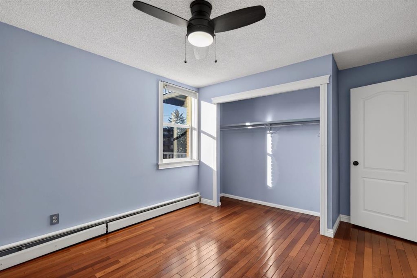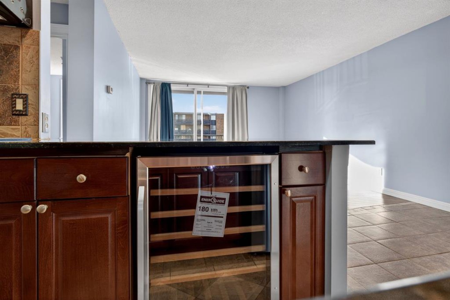 Fantastic opportunity to own this beautifully updated condo in an unbeatable location just steps from Chinook Centre and the endless amenities along Macleod Trail. Offering 638 square feet of well-designed living space, this 1-bedroom, 1-bathroom unit provides exceptional value for first-time buyers and investors alike. Over the years, the unit has been thoughtfully updated and is move-in ready with quick possession available. The bright and functional kitchen features abundant cabinetry, dual pantries, quartz countertops, a new bar fridge, and a new microwave. A convenient built-in office nook makes working from home a great option. The spacious south-facing living room is flooded with natural light and offers incredible flexibility for furniture placement and layout options — perfect for both relaxing and entertaining. The generously sized primary bedroom includes a double-wide closet for ample storage. The bathroom has been upgraded with quartz countertops, a modern vessel sink, and updated faucet, and is roughed-in for an apartment-style washer and dryer for added convenience. This unit includes one assigned parking stall, and the building offers a coin-operated laundry room. Whether you're looking to invest or purchase your first home, this is an exceptional opportunity in a location that truly can’t be beat. **note that the washer and dryer are not included and only for illustration purpose**