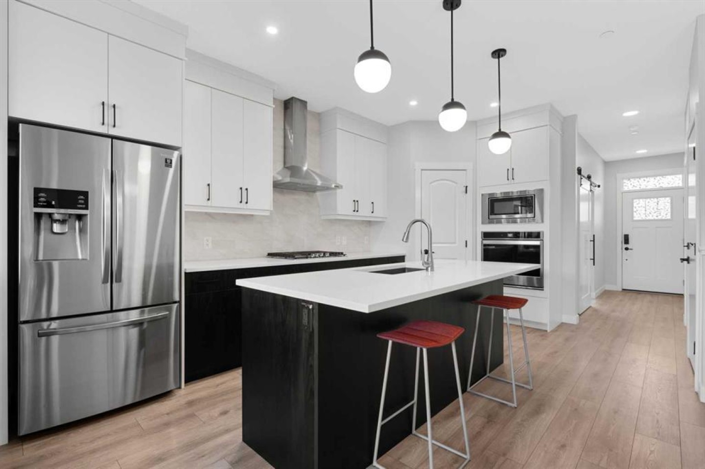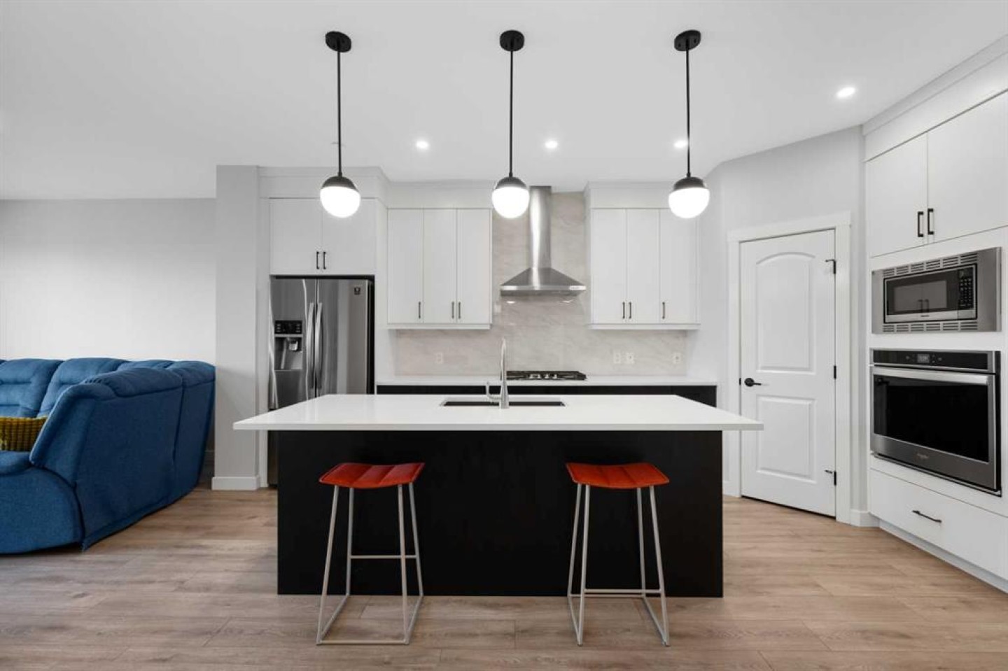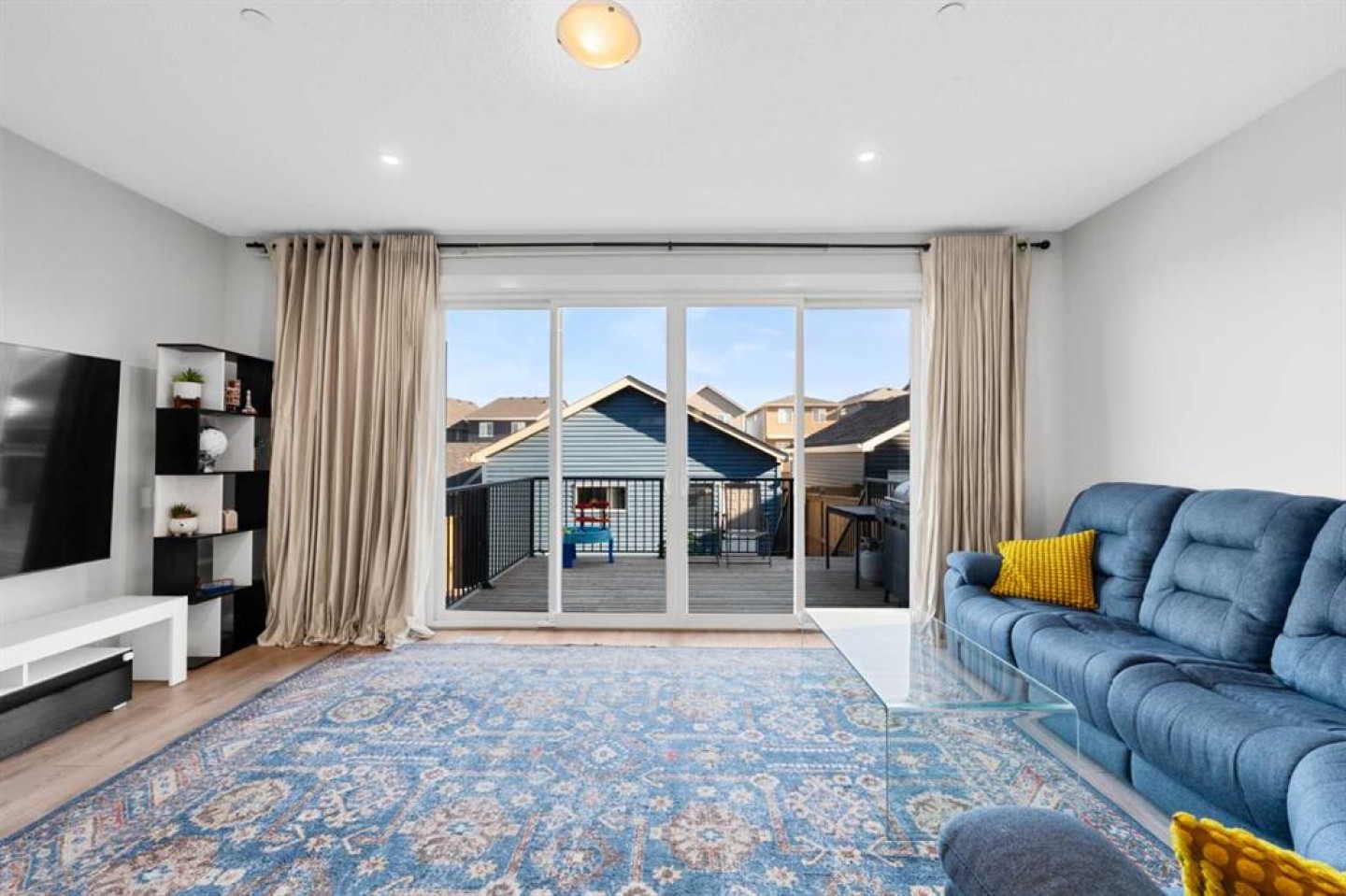 This home is perfect for a large family or for those seeking additional rental income. Located in the desirable community of Livingston, this two-storey home offers over 2,600 square feet of developed space, including a legal basement suite and an oversized double garage. Situated on a street with wider and larger lots than some in the area, this home is a must see. Upon entry, you're greeted by a spacious den or office, providing the flexibility for a quiet workspace or a guest room. The open-concept main floor is bathed in natural light, featuring oversized sliding doors that lead to the back deck. The generous living room flows seamlessly into the gourmet kitchen, which boasts ceiling-height white cabinetry, stainless steel appliances, and a large island topped with quartz countertops. Upstairs, a bonus room provides a dedicated space for kids or for relaxing at the end of the day. This level also includes two spacious bedrooms, a four-piece bathroom, and a convenient laundry room. The private primary suite features a four-piece ensuite and a walk-in closet. The legal basement suite offers a self-contained living space with a separate entrance. The bright suite includes a modern white kitchen with stainless steel appliances, a four-piece bathroom, and a bedroom. A bonus feature of the suite is its own furnace, allowing for ultimate climate control. Another bonus, a fire suppression system throughout the home, which will help with insurance costs! The backyard is designed for low-maintenance living and features a very large deck. The oversized double garage (22'x22') has an oversized door, providing ample space for large vehicles. This home has been meticulously cared for and shows impeccably—book your showing today!