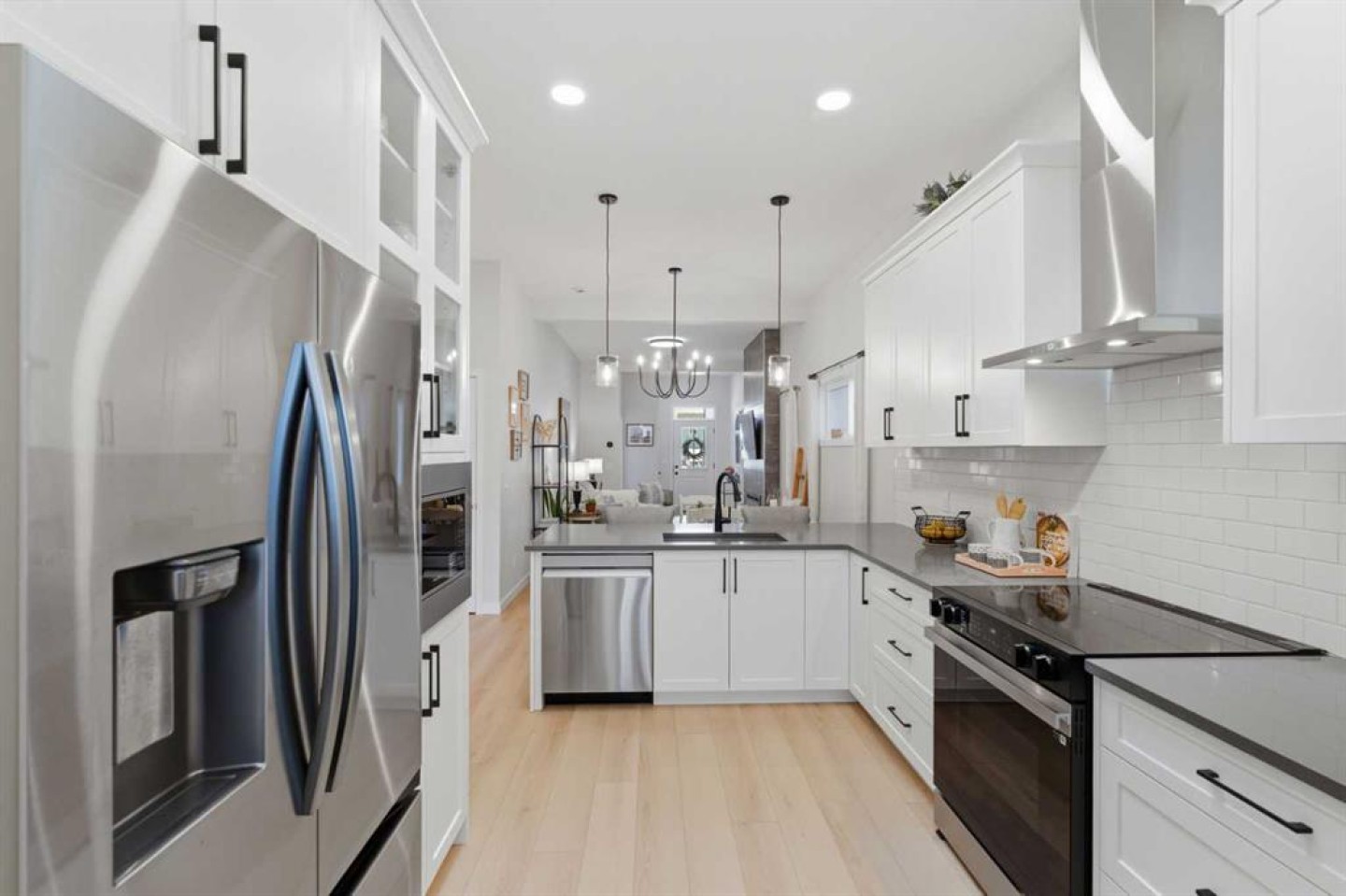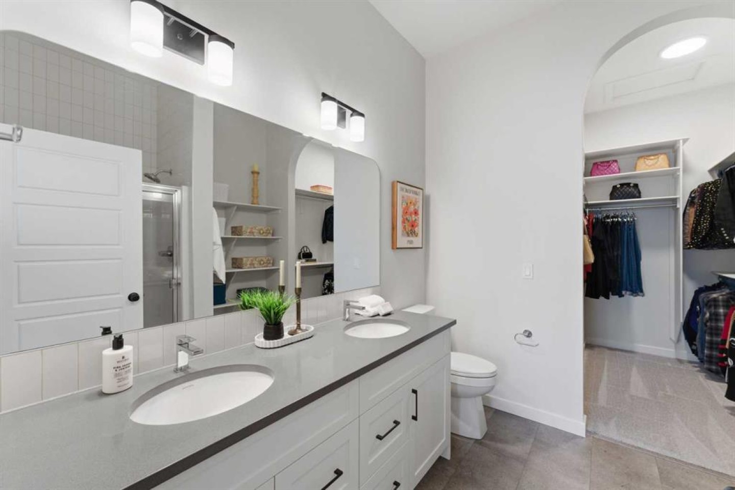 Welcome to an exceptional laned bungalow tucked into the award-winning community of Coopers Crossing in Airdrie where timeless design meets modern comfort in all the right ways. From the moment you arrive, this home makes a statement. Its charming laned configuration allows for a clean, welcoming front façade, while the rear double garage keeps the streetscape elegant and uncluttered. The low-maintenance landscaping frames the property beautifully, offering year-round curb appeal without demanding your weekends. Thoughtfully designed pathways and tidy greenery create a polished first impression that only gets better once you step inside. Open the front door and you’re greeted by soaring 10-foot ceilings on the main floor—an architectural feature that instantly enhances the sense of space and light. The expansive height amplifies every detail, from the modern lighting fixtures to the oversized windows that bathe the home in natural sunshine. The result is an airy, uplifting atmosphere that feels both luxurious and inviting. A Kitchen Designed to Impress. At the heart of the home lies a custom kitchen crafted for both everyday living and memorable entertaining. Beautiful cabinetry, sleek countertops, and thoughtful storage solutions combine style with functionality. A full set of appliances ensures you’re ready to host everything from intimate dinners to holiday gatherings. Whether you’re preparing a quiet morning coffee or a gourmet feast, this kitchen is as inspiring as it is practical. Above, a skylight draws in streams of natural light, adding warmth and brightness throughout the day. It’s the kind of detail that subtly transforms the mood of the entire living space—sunshine by day, soft stargazing ambiance by night. Comfortable & Cozy Living Spaces The living area is anchored by a striking electric fireplace, offering both visual charm and effortless warmth. It’s the perfect focal point—ideal for cozy winter evenings or simply adding a touch of elegance to the room year-round. To ensure comfort in every season, the home is equipped with a central AC unit, keeping the interior refreshingly cool during Alberta’s warm summer months. Combined with the home’s thoughtful design, this creates an environment that feels just right, no matter the weather outside. Thoughtful Bedroom & Bathroom Layout This bungalow features 2 spacious bedrooms and 2 full bathrooms, all conveniently located on the main level for easy living. The primary suite is a private retreat—generous in size and designed for relaxation. Large windows provide natural light, while the adjoining full ensuite offers a spa-like experience with quality finishes and ample space to unwind. The second bedroom is perfect for guests, family, or even a stylish home office. A second full bathroom ensures comfort and privacy for everyone. Outdoor Living at Its Finest Step outside to discover a large rear deck—an extension of your living space that’s ideal for summer barbecues, morning coffee rituals, or quiet evenings