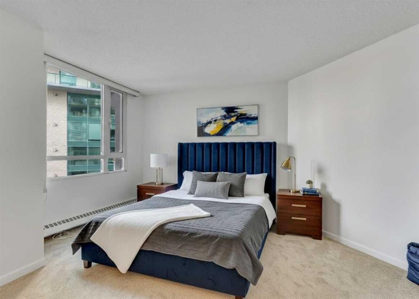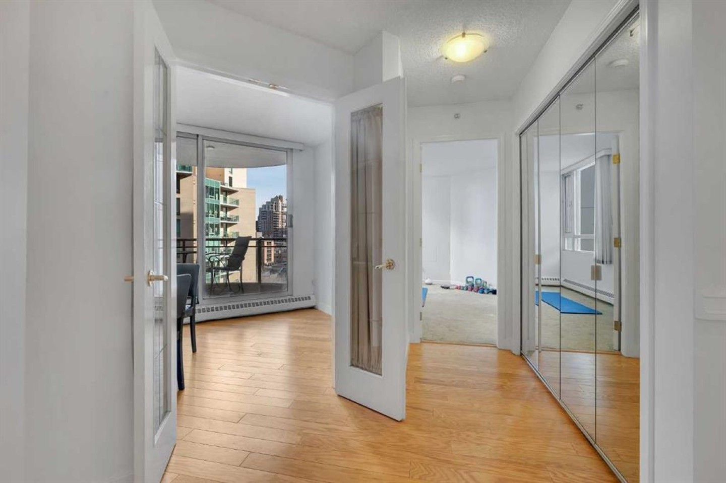 NEW PAINT & BRAND NEW CARPET!! 2 BED 2 BATH!! TITLED PARKING!! 1160+ SQFT!! 2 BALCONIES!! DEN!! Welcome to this spacious condo in the heart of Eau Claire that truly feels like a home. The main living area features a bright living room with access to a private balcony, a dedicated dining area with its own balcony, and a functional kitchen perfect for everyday living and entertaining. The primary bedroom offers a 4pc ensuite and great closet space, while the second bedroom is ideal for guests or family. A separate DEN makes working from home easy, plus there’s a 3pc main bath and in-suite laundry for added convenience. With TWO OUTDOOR SPACES, you get the best of indoor-outdoor living right in the city. Enjoy BRAND NEW CARPETS, fresh paint throughout, TITLED UNDERGROUND PARKING, and a STORAGE LOCKER. This well-managed building offers great amenities including a FITNESS CENTRE and a PARTY ROOM with kitchen. Located steps from Bow Valley Pathway, Prince’s Island Park, Peace Bridge, tennis courts, river pathways, and all the best of Eau Claire’s shops and cafes. SPACIOUS, MOVE-IN READY CONDO IN ONE OF DOWNTOWN CALGARY’S MOST DESIRABLE RIVERFRONT COMMUNITIES — DON’T MISS THIS ONE!!