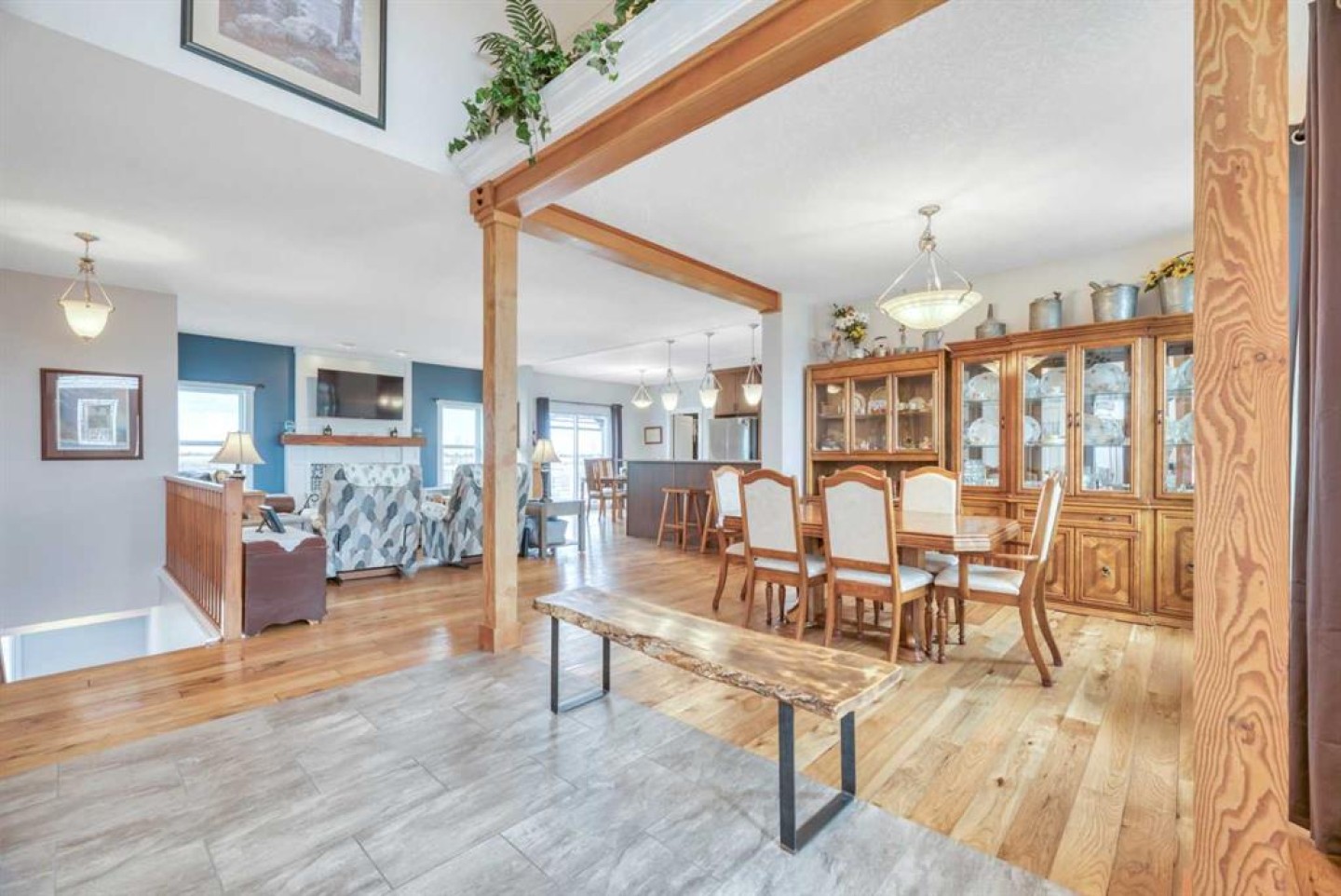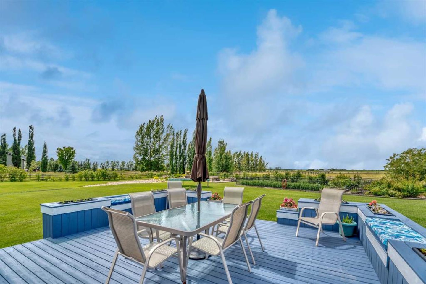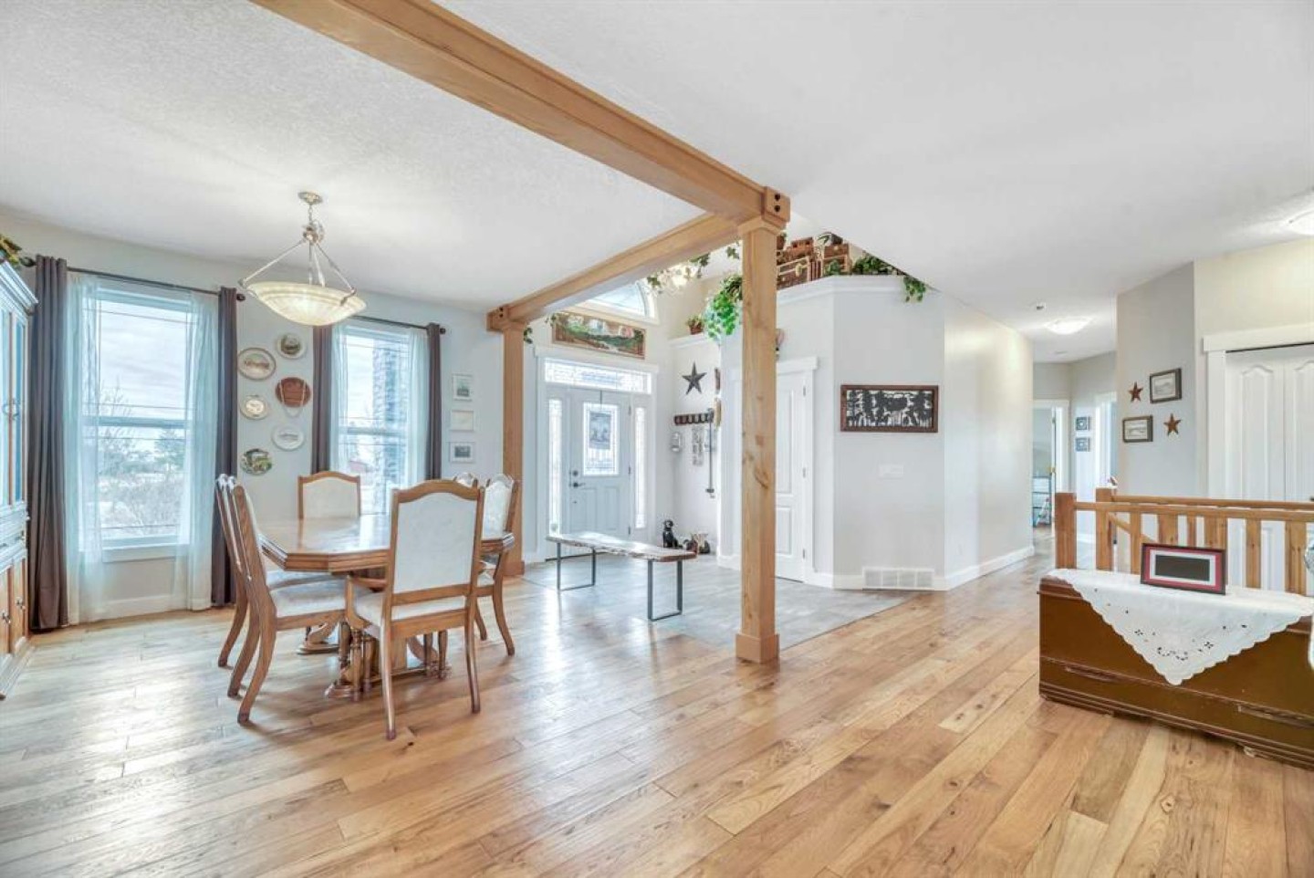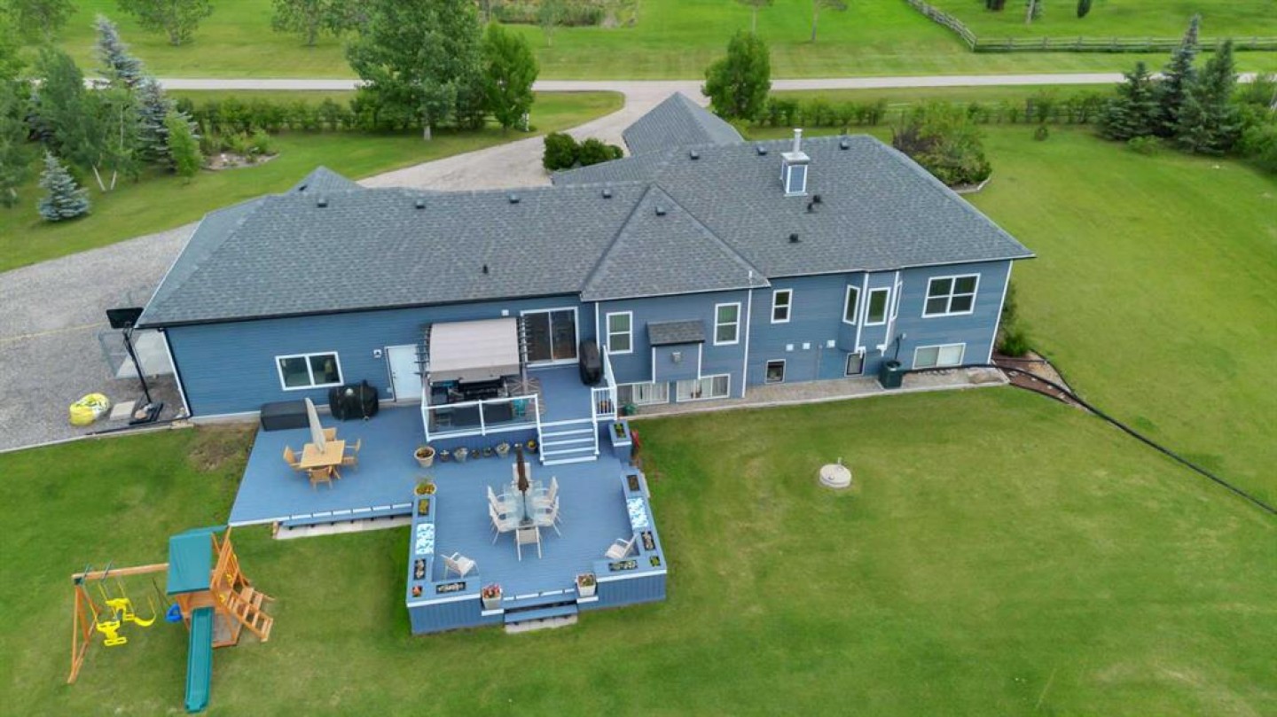The acreage buyers wait years for, has just hit the market! Located in one of the most sought-after country residential pockets, you are only 4 minutes to Calgary and 3 minutes to Stoney Trail — the rare balance of peaceful living without sacrificing convenience. This fully developed bungalow offers 5 bedrooms and a layout designed to feel open, bright, and effortless. 9' ceilings and solid timber beam details create warmth the moment you walk in. The custom updated kitchen anchors the home with quartz counters, maple cabinetry, newer appliances, and a butler’s pantry that actually works for real life — storage, prep space, and organization where you need it. The living area gathers around the gas fireplace while large windows frame the mountain views. The primary retreat is spacious and private with built-in closet organizers and a spa-inspired ensuite featuring a large walk-in shower and double sinks. Downstairs, the finished basement adds a massive family room, wet bar, full bathroom, and flexible space for guests, teens, or multi-generational living. Step outside and the property becomes something special. A massive two-level back deck with glass railing and built-in planters overlooks the manicured yard, mature trees, water feature, gardens, and firepit area. The property is perimeter fenced with classic 3-rail fencing and cross-fenced for animals, complete with shelter and a chicken coop. A fenced dog run and kennel keeps pets secure while still giving them space. For hobbyists, business owners, or horse enthusiasts — the outbuildings deliver. The impressive shop features packed gravel with interlocking floor frames for durability and function, plus a rear barn with two stalls and tack room creating true year-round versatility. Strong well water, upgraded mechanical, and careful maintenance mean this home is ready to be enjoyed, not worked on. This is the rare acreage where location, usability, and lifestyle all meet. Not just land. A place you build a life around.