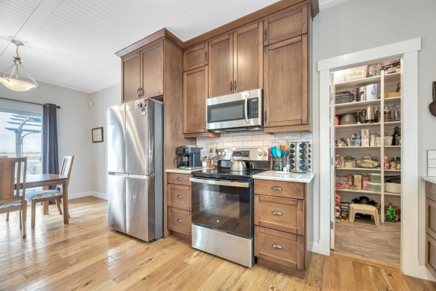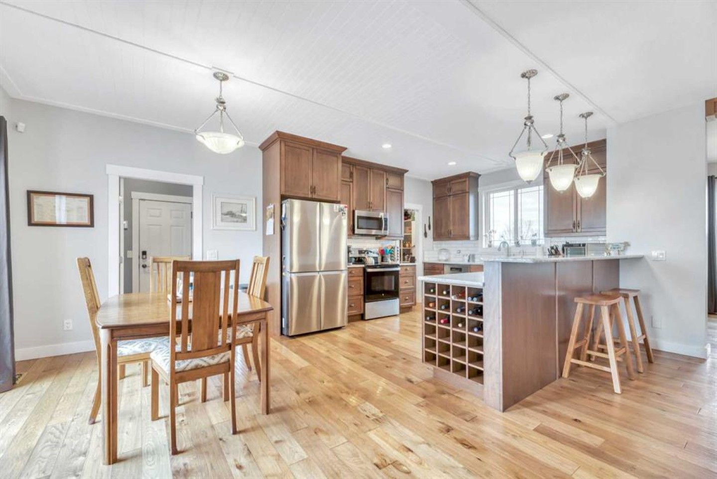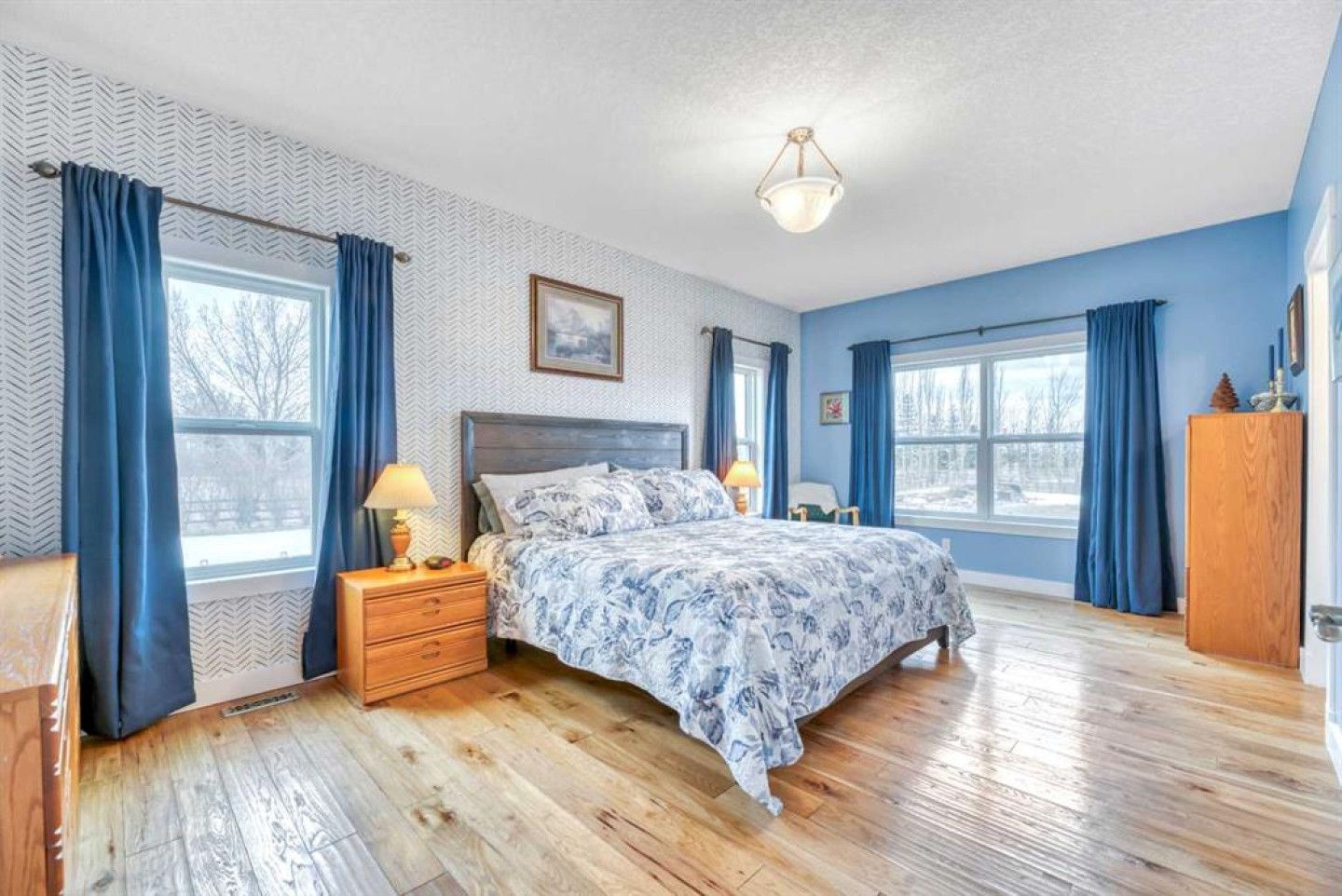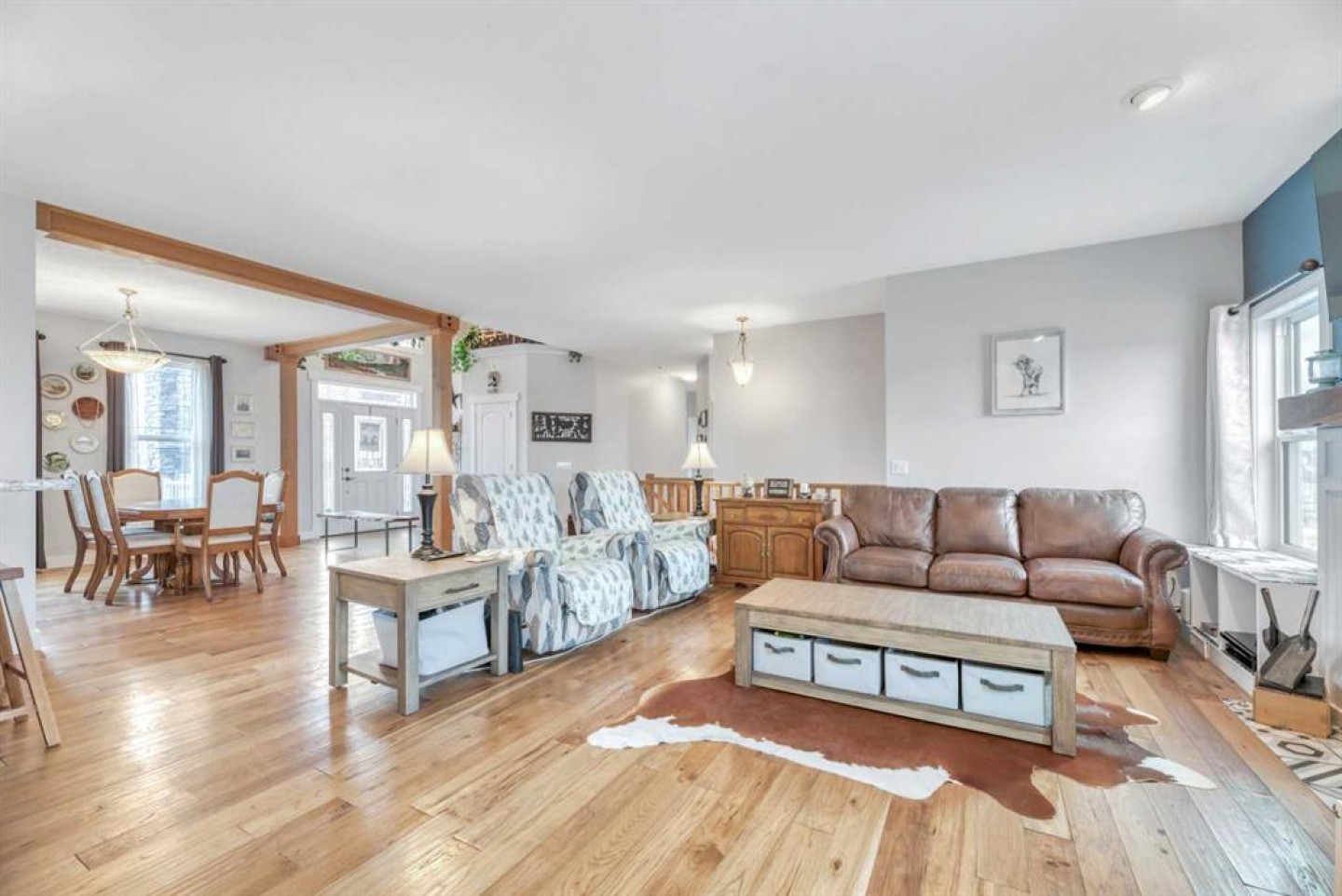 The acreage buyers wait years for, has just hit the market! Located in one of the most sought-after country residential pockets, you are only 4 minutes to Calgary and 3 minutes to Stoney Trail — the rare balance of peaceful living without sacrificing convenience. This fully developed bungalow offers 5 bedrooms and a layout designed to feel open, bright, and effortless. 9' ceilings and solid timber beam details create warmth the moment you walk in. The custom updated kitchen anchors the home with quartz counters, maple cabinetry, newer appliances, and a butler’s pantry that actually works for real life — storage, prep space, and organization where you need it. The living area gathers around the gas fireplace while large windows frame the mountain views. The primary retreat is spacious and private with built-in closet organizers and a spa-inspired ensuite featuring a large walk-in shower and double sinks. Downstairs, the finished basement adds a massive family room, wet bar, full bathroom, and flexible space for guests, teens, or multi-generational living. Step outside and the property becomes something special. A massive two-level back deck with glass railing and built-in planters overlooks the manicured yard, mature trees, water feature, gardens, and firepit area. The property is perimeter fenced with classic 3-rail fencing and cross-fenced for animals, complete with shelter and a chicken coop. A fenced dog run and kennel keeps pets secure while still giving them space. For hobbyists, business owners, or horse enthusiasts — the outbuildings deliver. The impressive shop features packed gravel with interlocking floor frames for durability and function, plus a rear barn with two stalls and tack room creating true year-round versatility. Strong well water, upgraded mechanical, and careful maintenance mean this home is ready to be enjoyed, not worked on. This is the rare acreage where location, usability, and lifestyle all meet. Not just land. A place you build a life around.