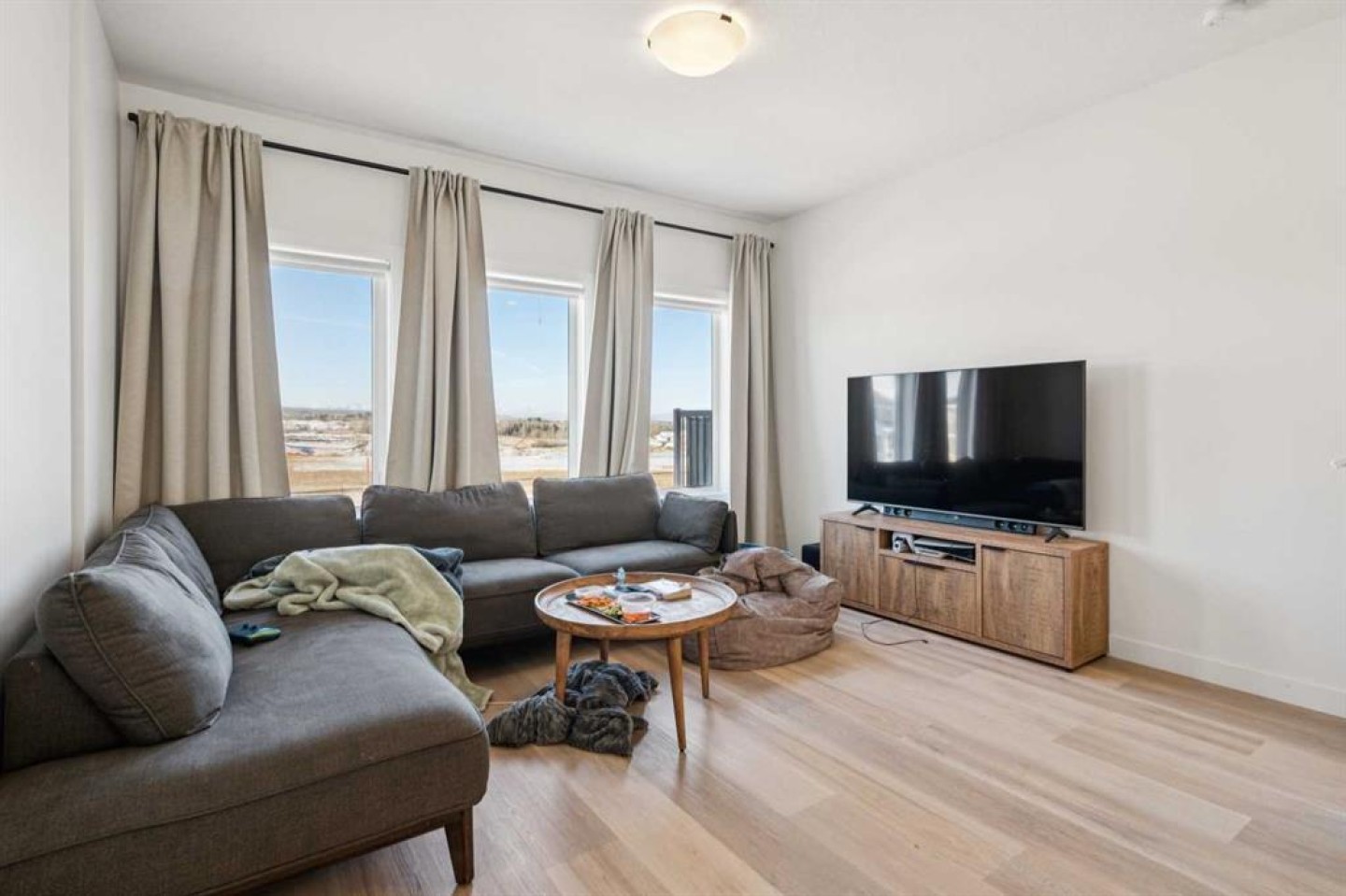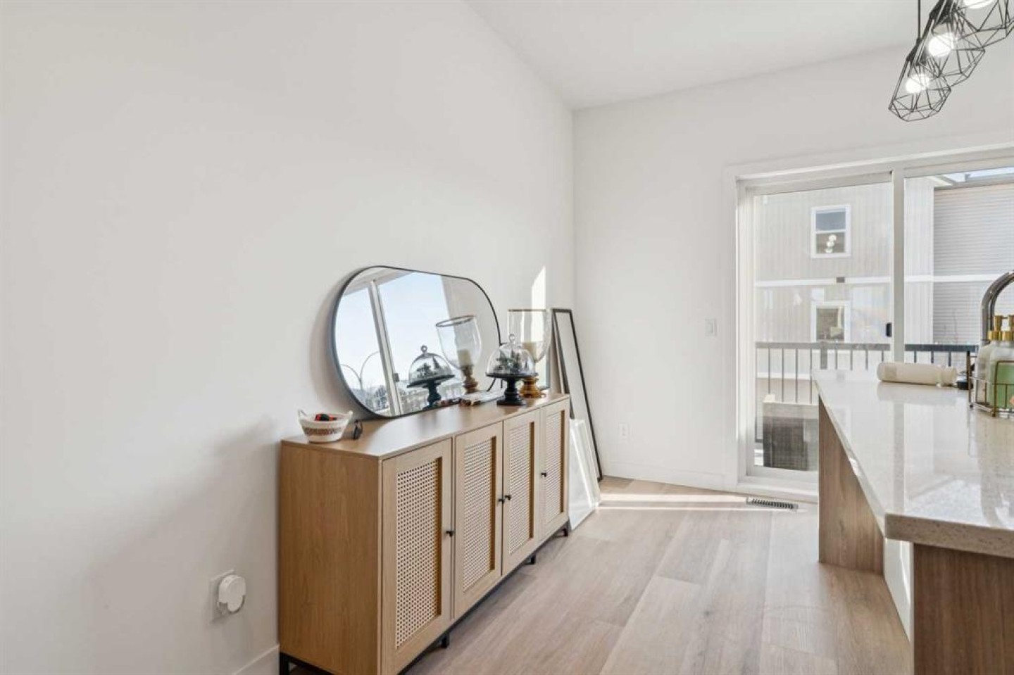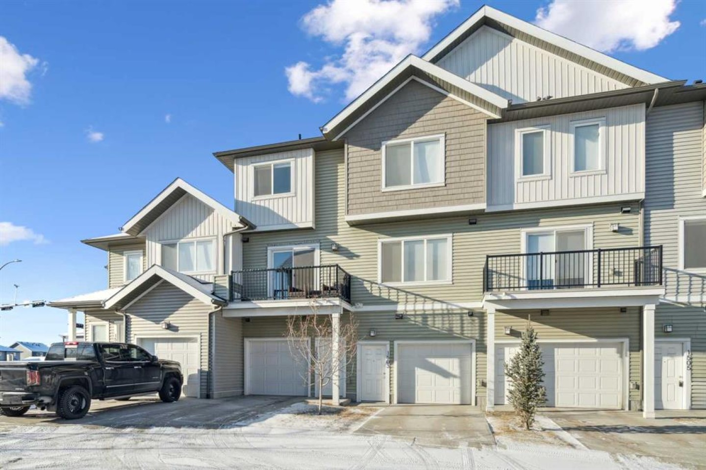 Discover the charm of contemporary living in this thoughtfully designed townhome. Filled with natural light from ample windows, the open-concept layout spans three inviting levels and offers beautiful mountain views. The stylish kitchen includes sophisticated fawn and white cabinetry, quartz counters, a generous island, and stainless steel appliances. Offering 2 bedrooms, 2.5 baths, and a cheerful, versatile den, this home provides flexible living spaces. The primary bedroom boasts ample storage and direct access to the ensuite. A convenient half bath on the main level enhances functionality. Features include vinyl plank floors, upper-level laundry, complete blinds, a single garage, and driveway plus street parking. Enjoy nearby pathways, local shopping, and convenient access to both Calgary and mountain adventures.