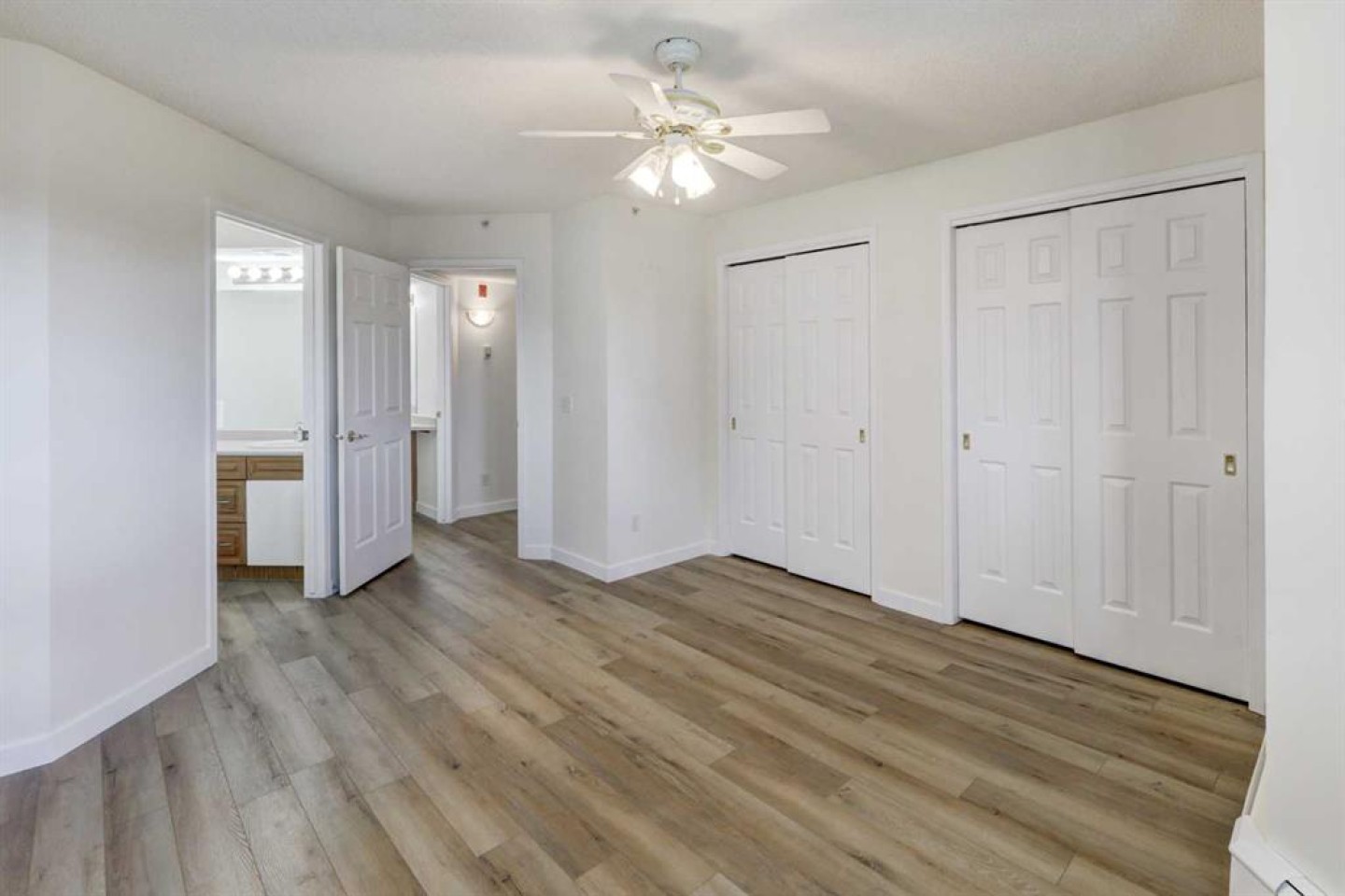An adult-living condo which offers a vibrant, maintenance free lifestyle. Welcome to this bright, open-concept floor plan in a desirable, quiet location overlooking a park. Filled with natural light and sunshine from the west. The spacious layout includes a large primary bedroom complete with own 2 pc ensuite, along with additional 4 pc bathroom, large laundry room, functional kitchen, large dining and living room with access to a nice size SW facing balcony with gas line for bbq. Additional highlights include new vinyl flooring, baseboards, and fresh paint throughout, secured underground titled parking stall and assigned storage room. This community is truly lifestyle-focused with clubhouse, a billiards room, shuffleboard, recreation room with fully equipped kitchen, perfect for group dining and events, woodworking shop, library and more. Guests coming to town? There are 3 guest suites available, walking paths, a pond with water fountain and beautiful landscaping. whether you are social or love quiet time surrounded by nature, there is something for everyone. A home with all the amenities and close to shopping and dining. A wonderful place to call home!!!