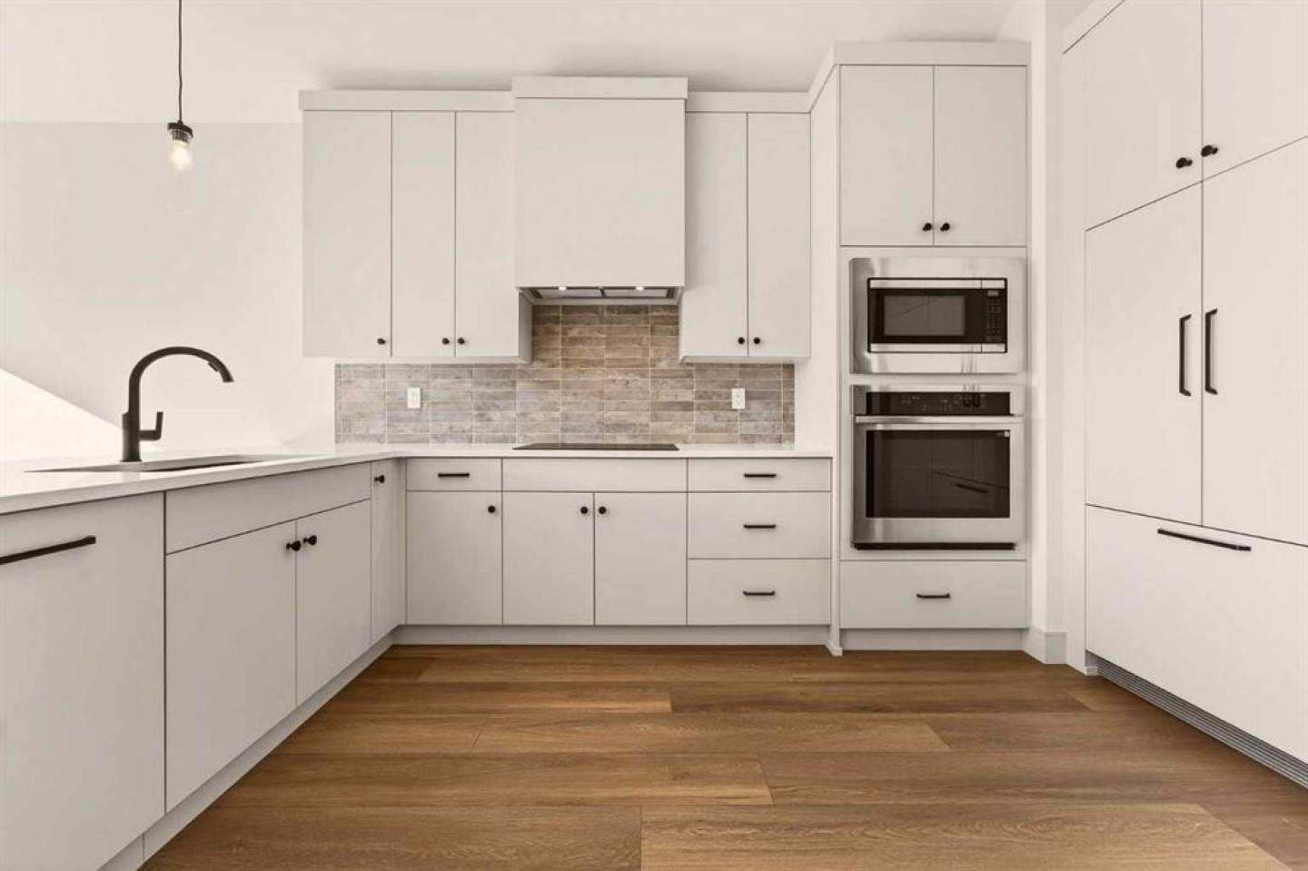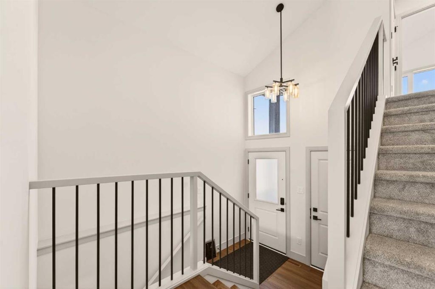 Welcome to the Glenbarr bi-level by Stranville Living Master Builder, located in the exciting new community of Blackwolf, just a short two-minute walk from Legacy Park — and when I say close, I mean you can grab your skates or pickleball paddle and be there in no time. Legacy Park truly is one of the best outdoor spaces in Lethbridge, featuring an outdoor skating rink, pickleball and basketball courts, a skate park, spray park, and beautiful walking paths that wrap around the scenic pond. Living here means your weekends practically plan themselves. Step inside and you’re immediately greeted by the soaring vaulted ceilings that make this home feel bright, open, and far larger than you’d expect. The kitchen is a standout and showcases Stranville’s signature finish quality, complete with a paneled Fisher & Paykel fridge, paneled dishwasher, sleek induction cooktop, built-in oven and microwave, quartz countertops, slow-close cabinetry, and convenient bar seating. It’s modern, clean, and thoughtfully designed for both everyday living and entertaining. Just off the kitchen is the dining area, positioned perfectly beside sliding glass doors that lead out to your future deck — an ideal extension of your living space during the warmer months. The adjacent living room features an oversized window that floods the main floor with natural light, creating a warm and inviting atmosphere. This level also includes two generously sized bedrooms along with a well-appointed four-piece bathroom, offering flexibility for family, guests, or a home office setup. Upstairs, you’ll find the laundry conveniently located near the private primary retreat. The primary bedroom continues the vaulted ceiling design and features another oversized window, enhancing the sense of space and light. The ensuite is finished with dual vanities, a walk-in shower, and an impressive 11-foot-long walk-in closet that provides plenty of storage without compromise. With alley access at the rear and Stranville’s elevated finish standards throughout, this brand-new home delivers the perfect balance of thoughtful design, modern style, and an unbeatable location in one of Lethbridge’s most recreation-focused communities. This home is virtually staged.