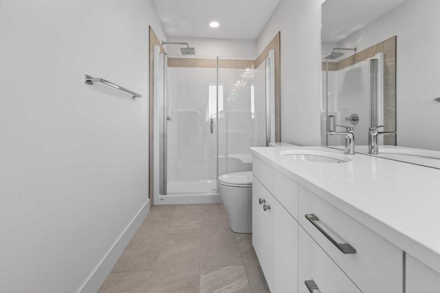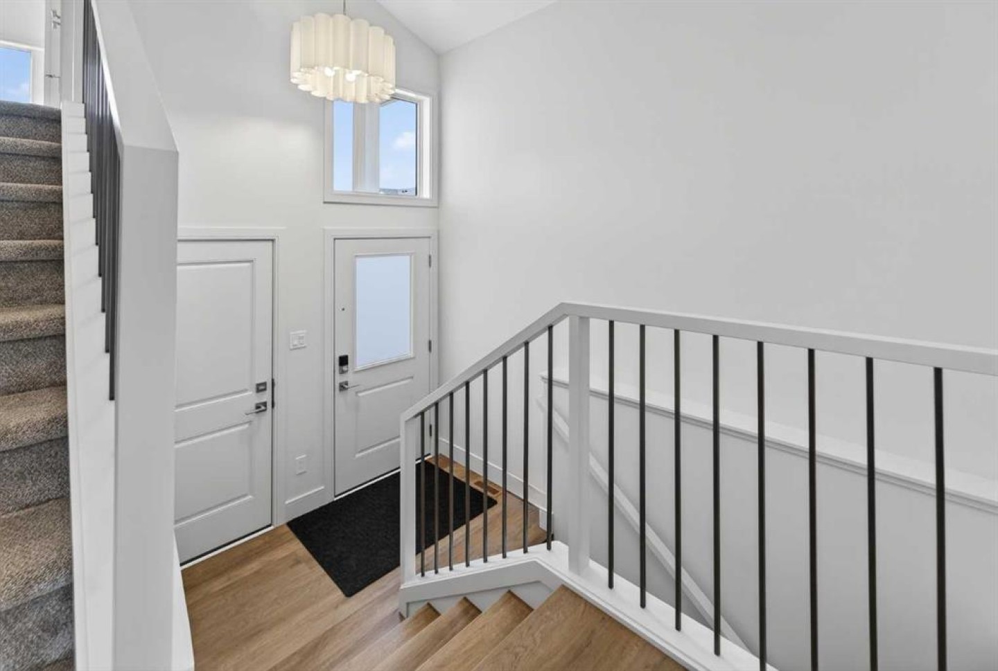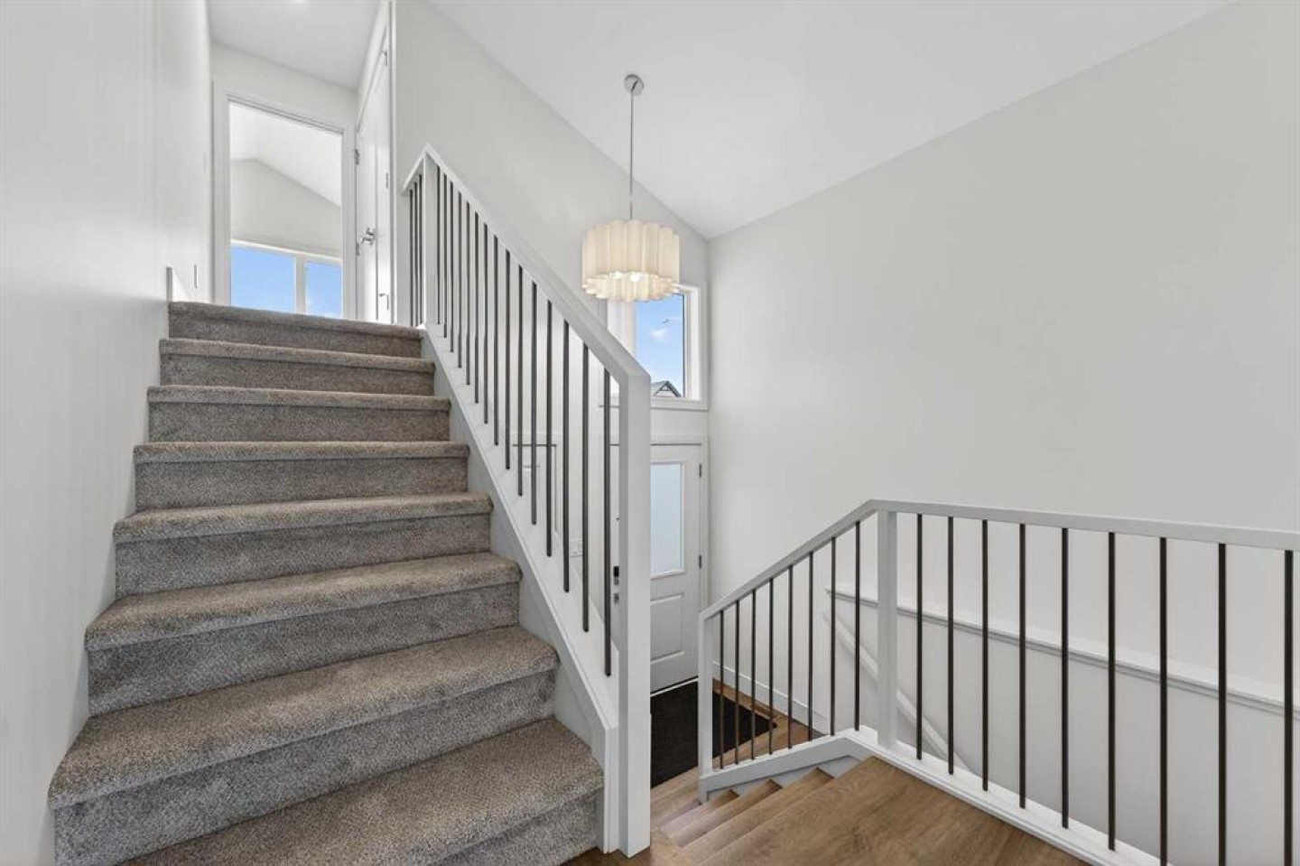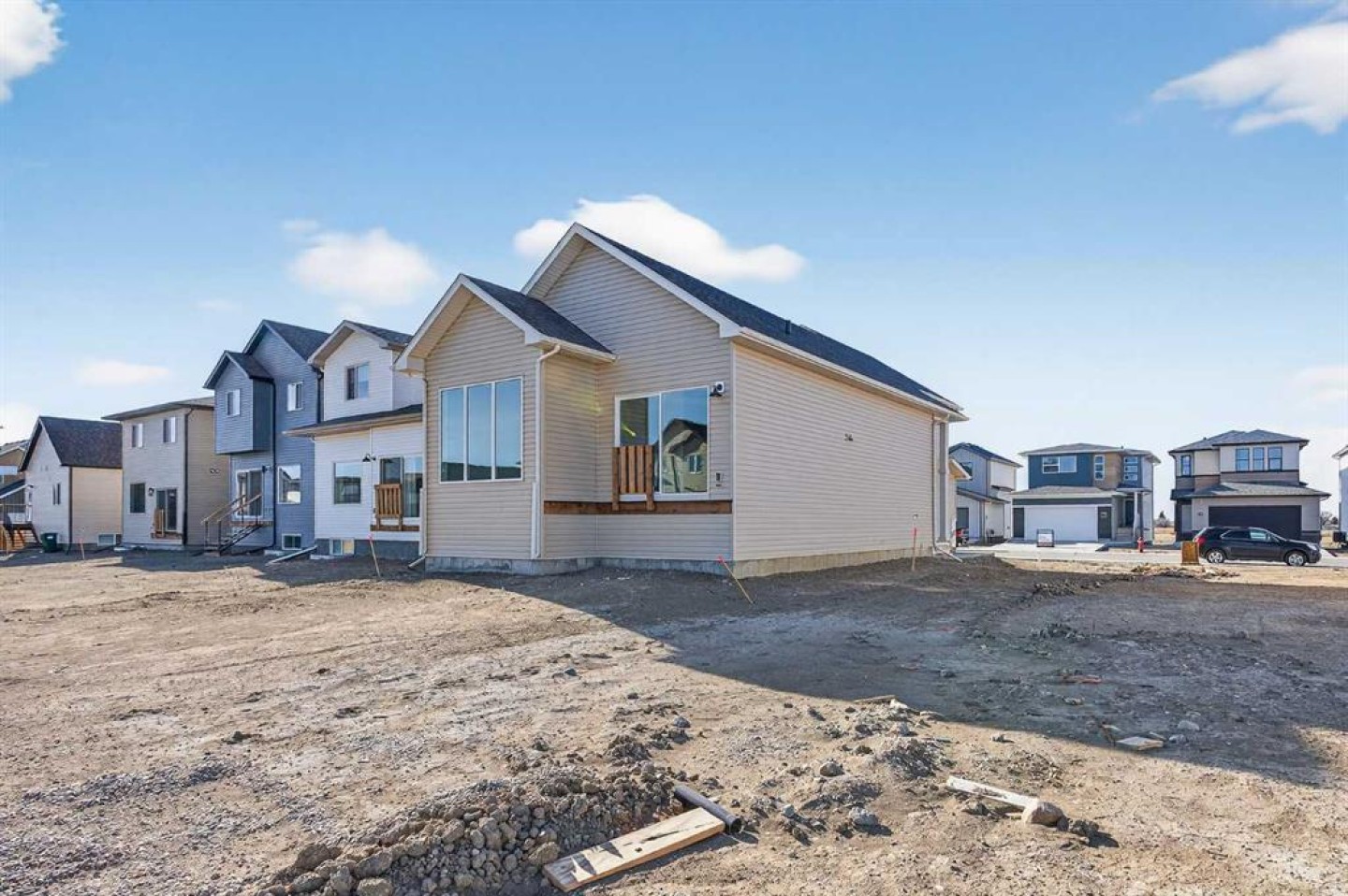 Welcome to the Glenbarr bi-level by Stranville Living Master Builder, located in the exciting new community of Blackwolf, just a short two-minute walk from Legacy Park — and when I say close, I mean you can grab your skates or pickleball paddle and be there in no time. Legacy Park truly is one of the best outdoor spaces in Lethbridge, featuring an outdoor skating rink, pickleball and basketball courts, a skate park, spray park, and beautiful walking paths that wrap around the scenic pond. Living here means your weekends practically plan themselves. Step inside and you’re immediately greeted by the soaring vaulted ceilings that make this home feel bright, open, and far larger than you’d expect. The kitchen is a standout and showcases Stranville’s signature finish quality, complete with a paneled Fisher & Paykel fridge, paneled dishwasher, sleek induction cooktop, built-in oven and microwave, quartz countertops, slow-close cabinetry, and convenient bar seating. It’s modern, clean, and thoughtfully designed for both everyday living and entertaining. Just off the kitchen is the dining area, positioned perfectly beside sliding glass doors that lead out to your future deck — an ideal extension of your living space during the warmer months. The adjacent living room features an oversized window that floods the main floor with natural light, creating a warm and inviting atmosphere. This level also includes two generously sized bedrooms along with a well-appointed four-piece bathroom, offering flexibility for family, guests, or a home office setup. Upstairs, you’ll find the laundry conveniently located near the private primary retreat. The primary bedroom continues the vaulted ceiling design and features another oversized window, enhancing the sense of space and light. The ensuite is finished with dual vanities, a walk-in shower, and an impressive 11-foot-long walk-in closet that provides plenty of storage without compromise. With alley access at the rear and Stranville’s elevated finish standards throughout, this brand-new home delivers the perfect balance of thoughtful design, modern style, and an unbeatable location in one of Lethbridge’s most recreation-focused communities. This home is virtually staged.