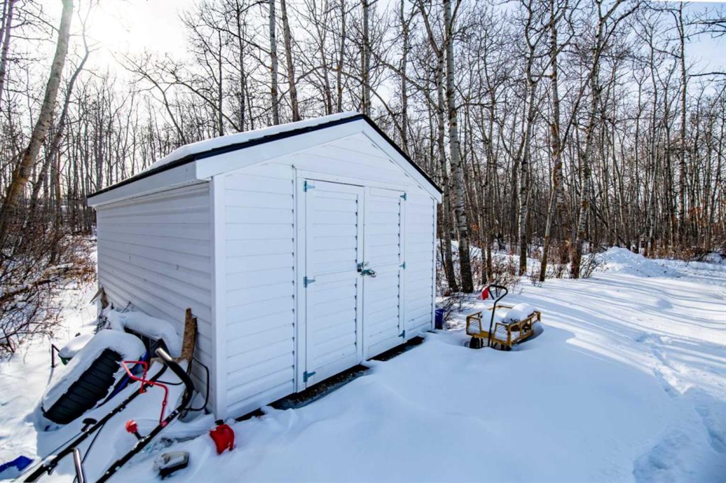 Located in a Prime Area of Sylvan Lake, this home offers Quick and Easy Access to The Lake / Shopping / Downtown Amenities / and all Major Entry Points to Sylvan Lake / while backing onto a Natural Treed Greenspace plus a Beautiful Park to the West of the property that gives you the feeling of Country Living Right In Town. This property has seen many upgrades over the past 20 months, including electrical upgraded to 100 amps by Townsend Electrical / plumbing upgraded to PLEX , a new hot water tank was installed by Fonda’s Plumbing / a new 10’ x 16’ shed / 6 ft high chain-link fencing along the full side of the house / a 12’ x 14’ all-season hard-top gazebo installed on a concrete patio / an extra-large freshly graveled parking area / a newer dryer withint the last year / the balance of appliances newer wtihin the last two years. Ideal as a starter home / retirement property / or Airbnb investment. If you added a second floor to this home, you could have a view of the Lake! OR remove the house and build your Dream Home. You could purchase as a Group and use it as your destination retreat to embrace what The Lake has to offer in all 4 Seasons. There is the possibility of purchasing pieces of furniture or all the furniture to be included. Easy to show!