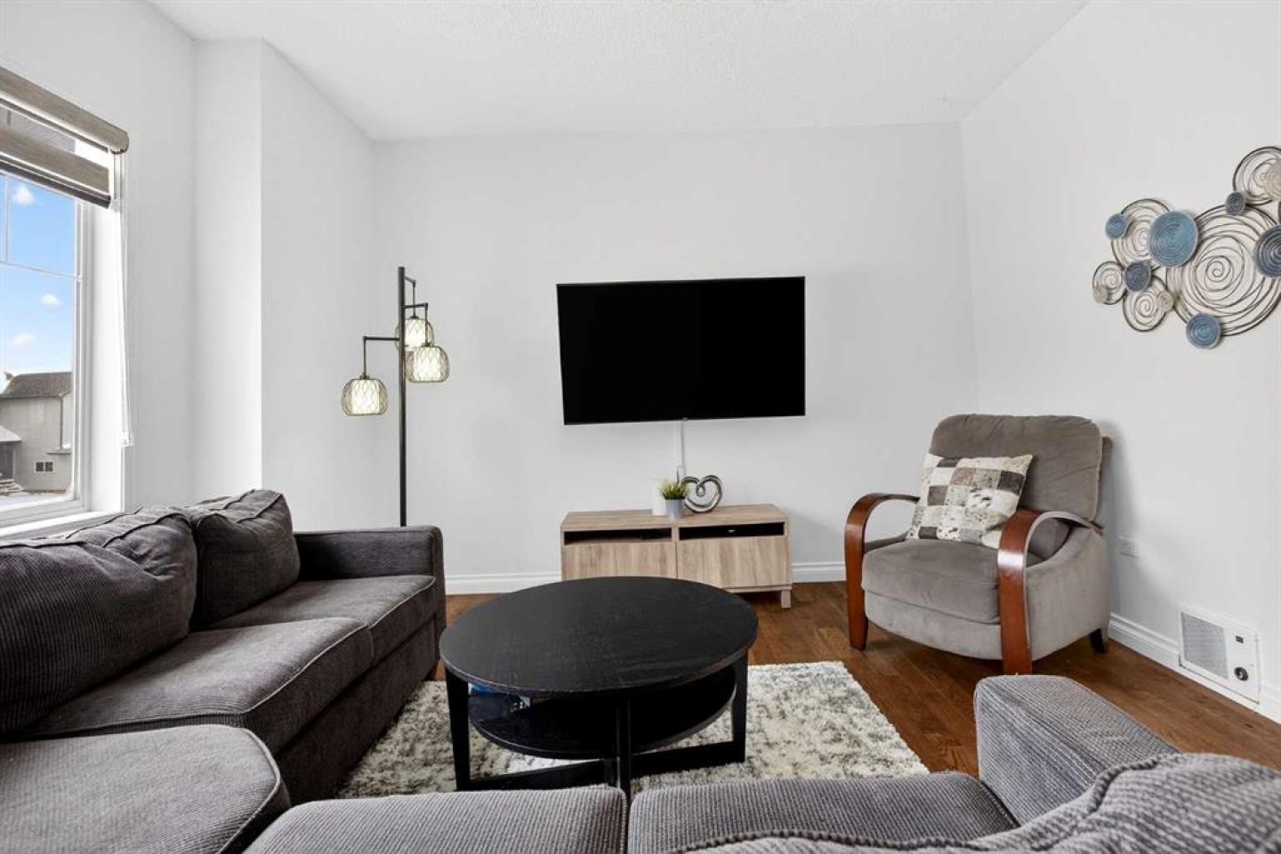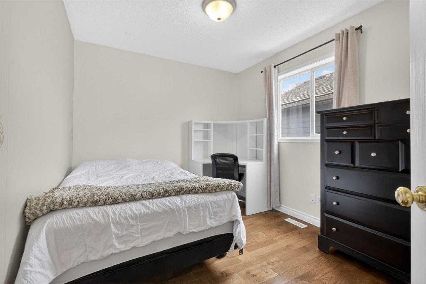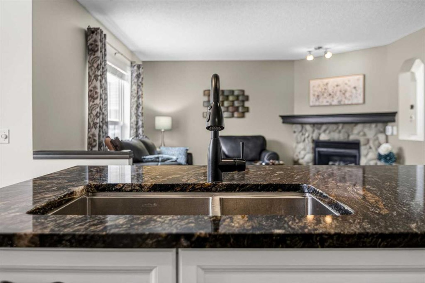 This beautifully maintained original owner two-storey home offers a functional layout and thoughtful finishes throughout. Hardwood flooring extends across the main and upper levels, creating a seamless and inviting feel. The main floor features a warm and welcoming living room anchored by a corner stone-faced fireplace, a well-appointed kitchen complete with pantry, stainless steel appliances, and stone countertops, as well as a spacious dining area ideal for everyday living and entertaining. A convenient powder room and dedicated laundry/mud room add everyday practicality. Upstairs, a bright bonus room provides flexible living space, complemented by two well-sized bedrooms and a four-piece bathroom. The primary suite offers a private retreat with its own four-piece ensuite, including a relaxing soaker tub. The fully finished basement has a large carpeted recreation room, an additional bedroom, and a three-piece bathroom. Outside, enjoy the fully fenced backyard featuring a wood deck with gazebo and firepit—perfect for summer evenings. A double attached front garage and additional driveway parking complete the home. Recent updates include shingles (2025), paint throughout (2025), dishwasher (2025), HWT (2024), refrigerator (2024), furnace humidifier(2023) Residents enjoy access to exceptional community amenities including a private lake with beach, boat rentals and fishing, basketball and volleyball courts, tennis and pickleball courts, BBQ pits, fitness facilities, playgrounds, and a tobogganing hill, all within walking distance. Chaparral School and St. Sebastian are mere blocks away. With convenient access to Stoney Trail and Deerfoot Trail, commuting throughout the city is quick and easy.