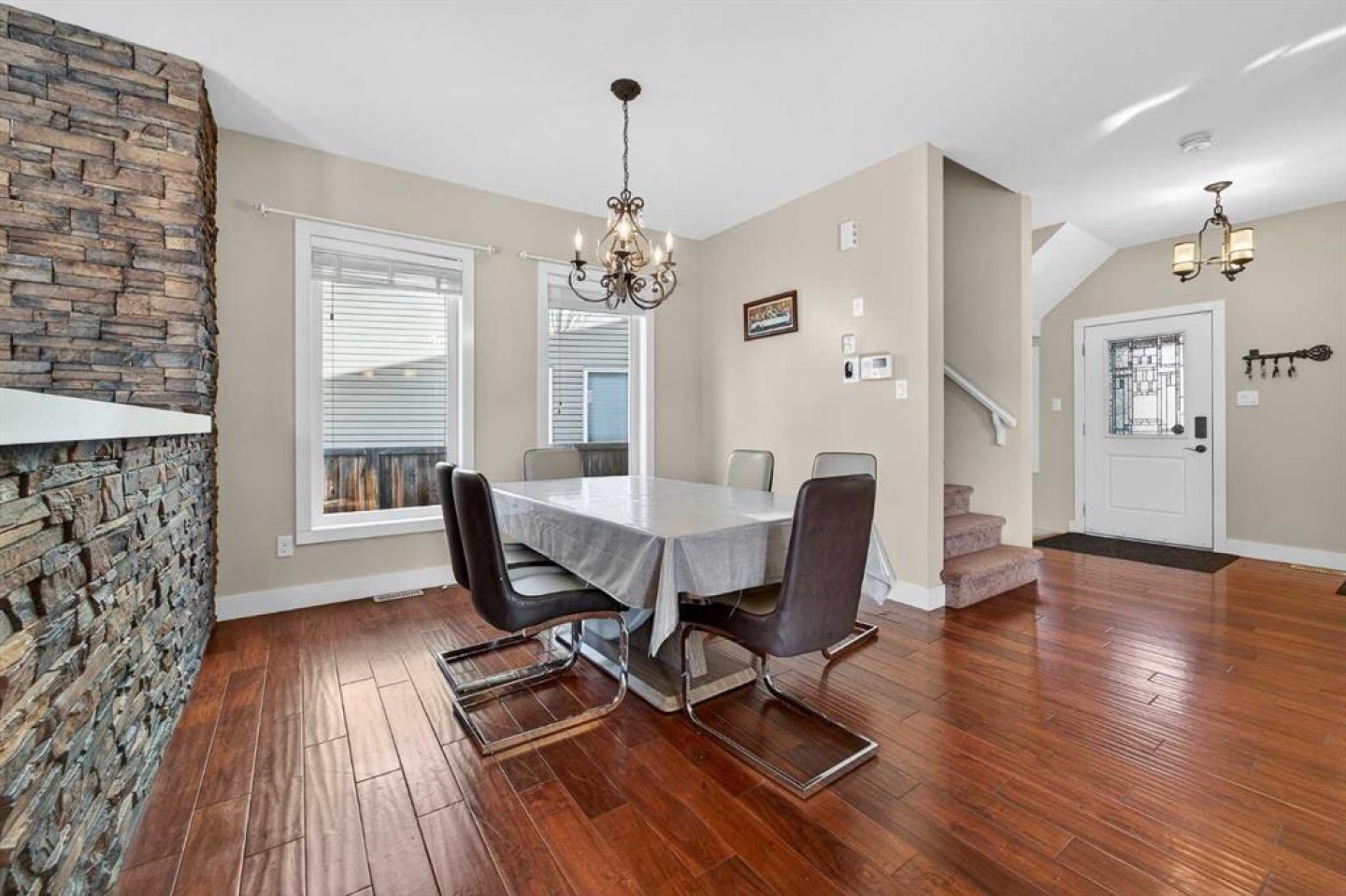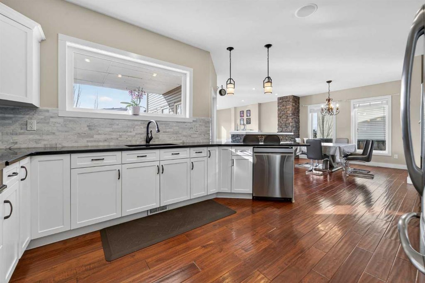 Copperwood Pie Lot, 5 Bedrooms, Theatre Room & Private Balcony If you’ve been waiting for a home in Copperwood that actually gives you space real space, this one’s going to stand out. Sitting on a pie shaped lot with alley access, the backyard alone is hard to find in this neighbourhood. It’s massive, lined with mature trees, and gives you a level of privacy that newer subdivisions just can’t replicate. The main level has a layout that’s different in a good way. It’s not your typical cookie cutter box. The kitchen is U shaped, super functional, with tons of counter space, loads of cabinetry, a massive walk in pantry, and built in dual ovens. If you cook, entertain, or host holidays, this setup just makes sense. Right off the kitchen is a formal dining room, separated from the living room by a stone half wall that adds character without closing things off. The living room itself is sunk down two steps and surrounded by windows, which makes it feel both cozy and bright at the same time. The gas fireplace anchors the space, and from here you have access to your covered deck. That deck overlooks the backyard and this yard is something else. Mature trees wrap around the perimeter, there’s room for kids, pets, or backyard parties, and even a dedicated firepit area tucked in for those summer nights. Upstairs, you’ve got four bedrooms plus a large bonus room and a dedicated laundry room which is a game changer for a busy household. The primary bedroom is the showstopper though. It’s spacious, the walk in closet is huge, and the patio doors lead out to your own private balcony overlooking the backyard. Morning coffee up there just hits different. The ensuite finishes it off with dual vanities, a standalone soaker tub, and a walk in shower. Downstairs is fully developed with a theatre room that’s ready for movie nights or game days. There’s also a fifth bedroom large enough for a king sized bed and another full four piece bathroom, making it perfect for guests, teenagers, or extended family. Homes with this kind of lot, this much privacy, five bedrooms, and unique character don’t pop up every day in Copperwood. If someone’s been looking for space without sacrificing location, this is the kind of property that checks boxes you didn’t even realize were on your list.