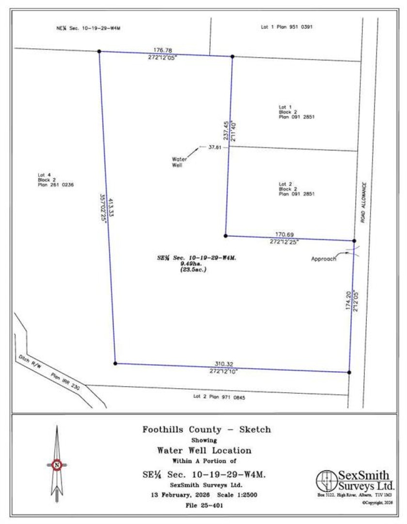 Rare opportunity to own 23.26 acres of agriculturally zoned bare land immediately west of High River on paved 48 Street East, just 3 kilometers from the intersection of Highway 543 and 498 Avenue E. This parcel offers exceptional proximity to town while maintaining the privacy and space of rural Foothills County living, with direct approach access off 48 Street East and convenient north access to Highway 543 and south access to Coal Trail, two major regional traffic routes. The property boasts expansive west-facing mountain views along with southwest and northwest exposure across open Foothills landscape. The majority of the fencing has already been completed, and the land is currently productive cultivated hay land on a cash rent basis. A newly drilled 225-foot water well producing approximately 3 gallons per minute is in place, and a Q20 well test has been completed. Parcels exceeding 21 acres in Foothills County are increasingly difficult to find, particularly this close to High River, and based on county land use regulations, properties of this size may allow up to six accessory buildings, subject to County approval and verification, along with various permitted and discretionary uses. Whether you are looking to build your dream home, establish a hobby farm, or secure a strategic land holding near town, this property presents a rare and compelling opportunity.