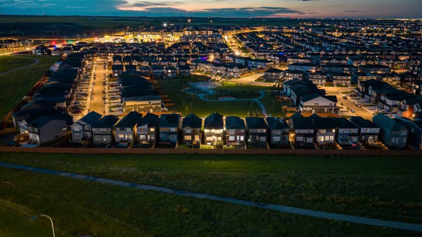Welcome to this spacious and beautifully appointed 5-bedroom, 3.5-bathroom family home in the desirable NW community of Carrington. With 2,279 sq ft above grade and an additional 918 sq ft in the fully finished basement, this home offers over 3,100 sq ft of thoughtfully designed living space—ideal for large families, multigenerational living, or anyone craving extra room to grow. The main floor welcomes you with a bright, open-concept layout featuring 9’ ceilings and a warm, inviting living room with a gas fireplace. The adjacent dining area opens onto the sunny south-facing backyard via patio doors, extending your living space onto the deck—perfect for outdoor entertaining. The chef-inspired kitchen is a true showstopper, complete with an extra-long granite island, two-tone cabinetry, stainless steel appliances, and a separate spice kitchen with a second gas stove, powerful hood fan, and extra storage—ideal for preparing meals without lingering aromas in your main living space. A private office/den, 2-piece powder room, and a mudroom additional storage complete the main floor. Upstairs, you'll find a thoughtfully designed layout with a central bonus room, perfect for family movie nights or a kids’ play area. The primary suite is a serene retreat with a walk-in closet and a luxurious 5-piece ensuite featuring dual vanities, a deep soaker tub, and a separate shower. Three additional bedrooms share a 4-piece bathroom, and the convenient upper-floor laundry makes daily chores a breeze. The fully finished basement offers incredible flexibility with a large recreation room, 5th bedroom, another 4-piece bathroom, and plenty of storage. The 9’ ceilings and plumbing rough-ins provide the potential for a future basement suite (subject to approval and permitting by the city/municipality) or second kitchen. Enjoy the sunny, south-facing backyard that backs onto green space and a walking path, providing privacy and a peaceful backdrop. The low-maintenance landscaping, iron front and back railings, upgraded spindles, and central A/C add function and style to this impressive home. Ideally located in Carrington, you're just minutes from NW Calgary’s best amenities, including shopping and dining, the Vivo and YMCA recreation centres, schools, playgrounds, theatres, and easy access to major routes like Stoney Trail. This is the total package—space, comfort, and convenience, all in a family-friendly community.