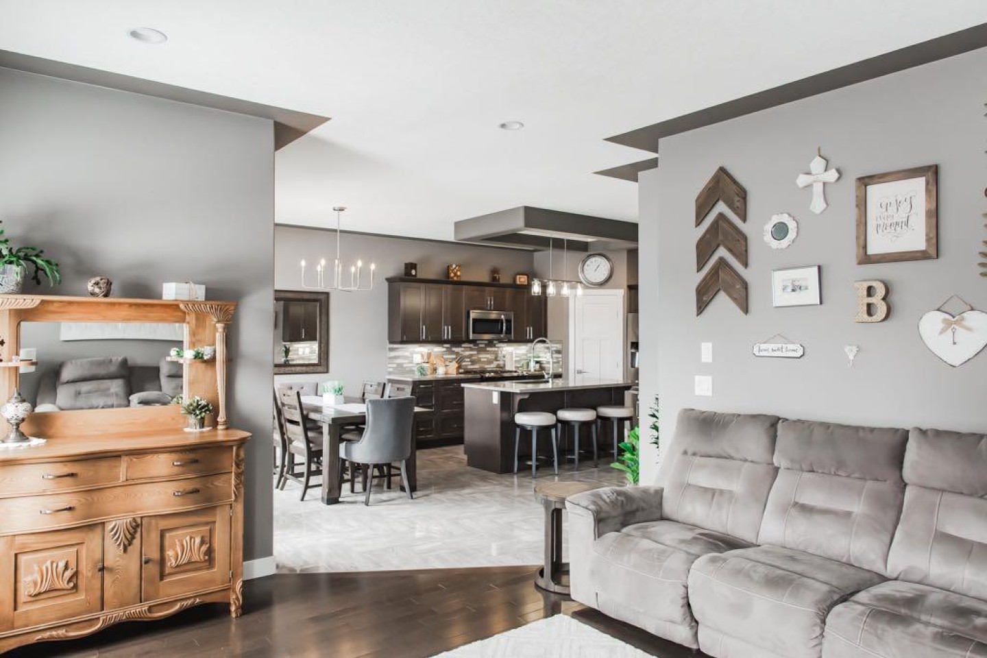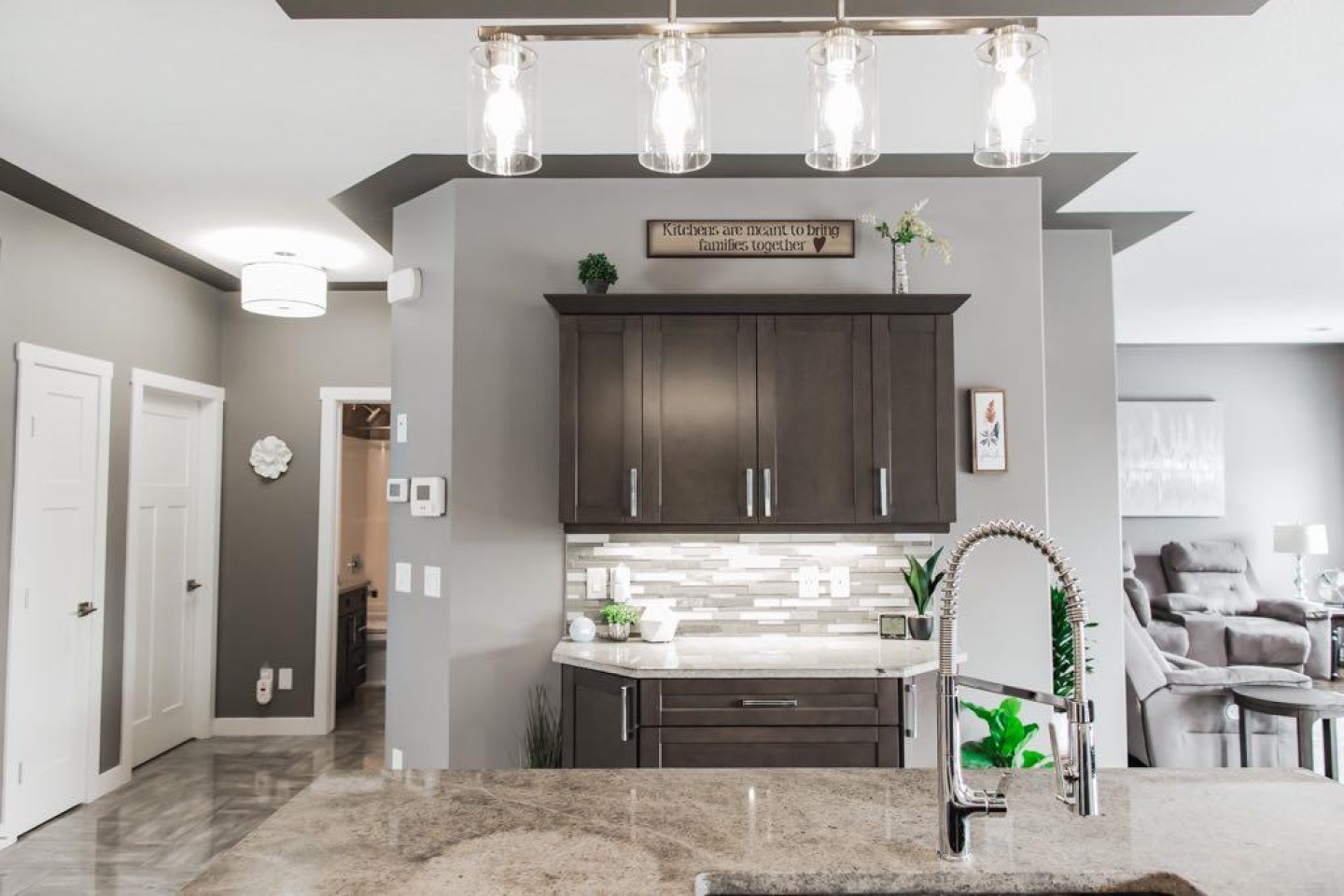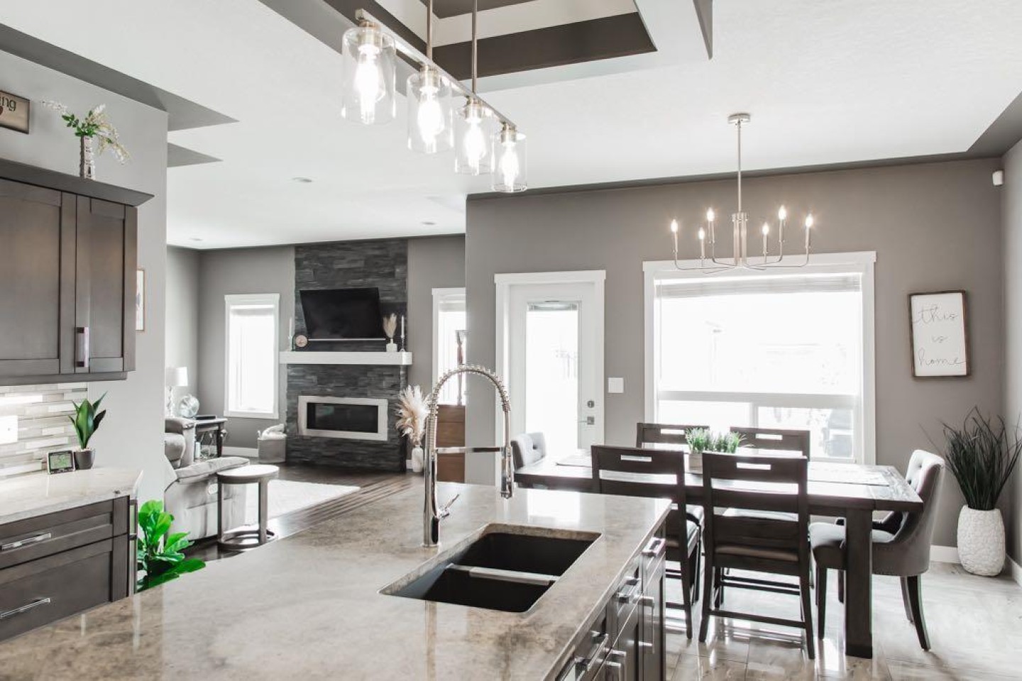 DESIRABLE SIGNATURE FALLS! Welcome to this immaculate, fully developed 5 bedroom, 3 bathroom modified bi-level located in the highly sought-after community of Signature Falls. From the moment you step inside, you are greeted by a spacious, welcoming entryway that offers plenty of room to comfortably receive guests and transition into the heart of the home. The main level features a bright and inviting open-concept design, seamlessly connecting the kitchen, dining, and living areas. Thoughtfully designed for both everyday living and entertaining, this space is finished with rich hardwood flooring, gorgeous tile, and granite throughout the home. The kitchen offers stainless steel appliances with a slide-in gas range, a large pantry, under-cabinet lighting, soft-close drawers, and an upgraded lighting package that enhances the modern grey tones carried throughout. The dining area flows effortlessly into the living room, where a contemporary natural gas fireplace creates a warm and stylish focal point. Privately situated above the garage, the sun-soaked primary suite serves as a true retreat. This generous space easily accommodates king-sized furniture and features a large walk-in closet with MDF shelving for optimal organization. The luxurious 5-piece ensuite includes dual sinks set in granite, a relaxing jetted tub, and a separate tiled shower, offering both comfort and functionality. The fully developed basement was professionally completed by the builder and feels bright and welcoming thanks to large windows that allow in an abundance of natural light. Whether used for family living, guests, or flexible workspace needs, the lower level offers exceptional versatility. Even the furnace room is fully finished, reflecting the meticulous care and pride of ownership evident throughout the entire property. Curb appeal and exterior functionality are equally impressive. The driveway has been widened to provide additional parking, and the garage is fully finished with a gas line already installed for future heat. The low-maintenance front yard is finished with decorative rock, while the pristinely manicured backyard offers a beautiful combination of gravel, pavers, and immaculate grass. Enjoy the durability of the Trex front deck and relax on the rear deck, with both the back deck and fencing recently repainted. Enjoy the gas line for your BBQ in the summer months. The fully fenced yard includes two side gates for convenient access along with practical under-deck storage. Situated in a quiet location and showing like new, this home is truly move-in ready. No detail has been overlooked, and the quality craftsmanship is evident from top to bottom. You will be impressed the moment you walk through the door.