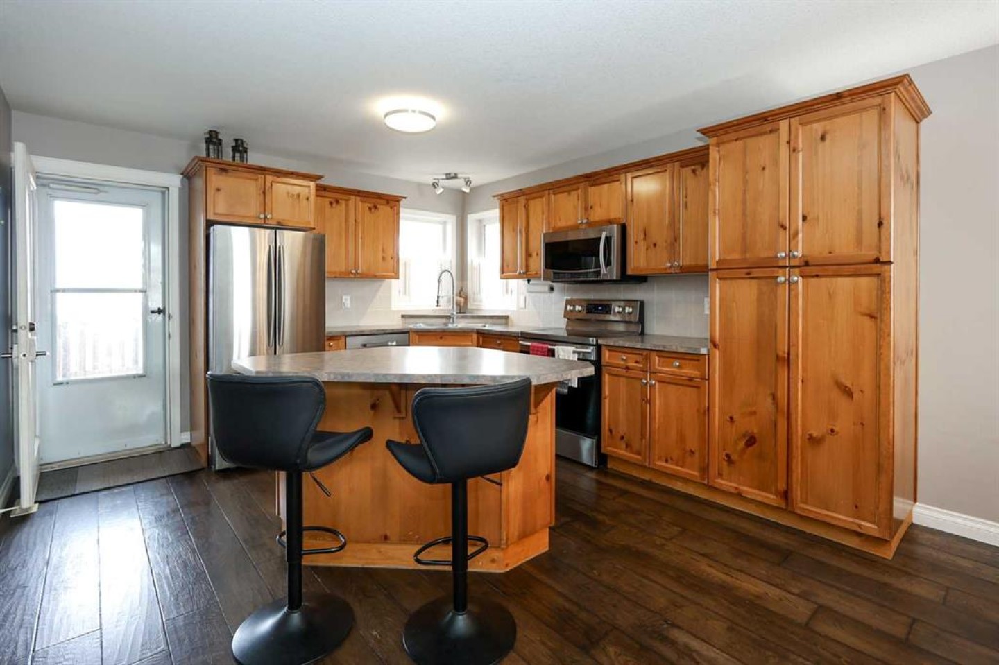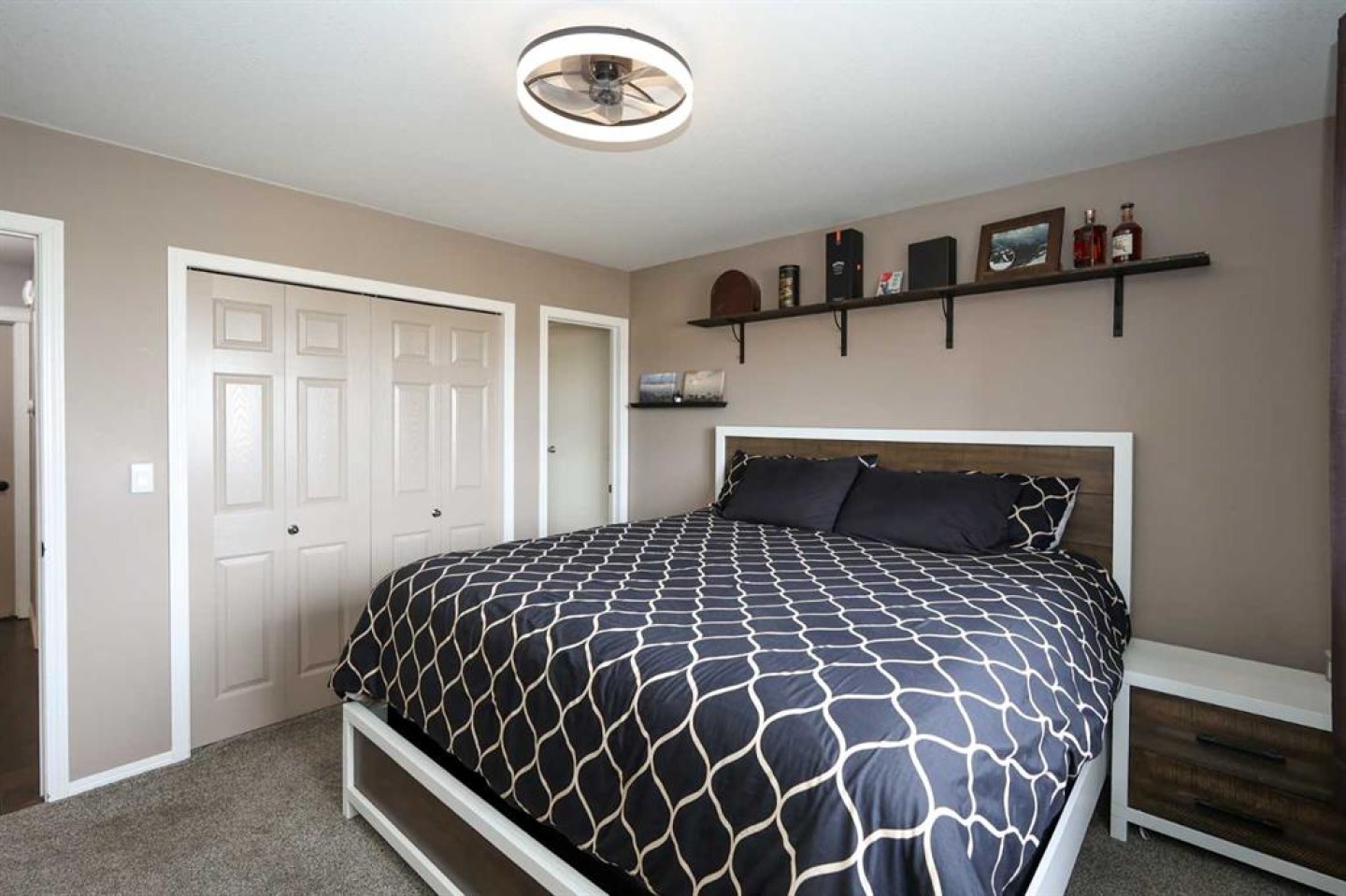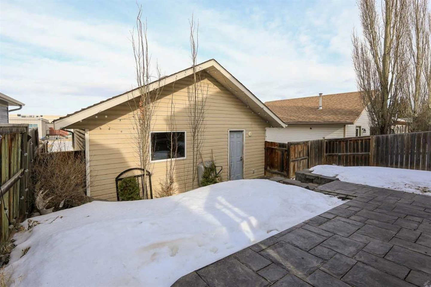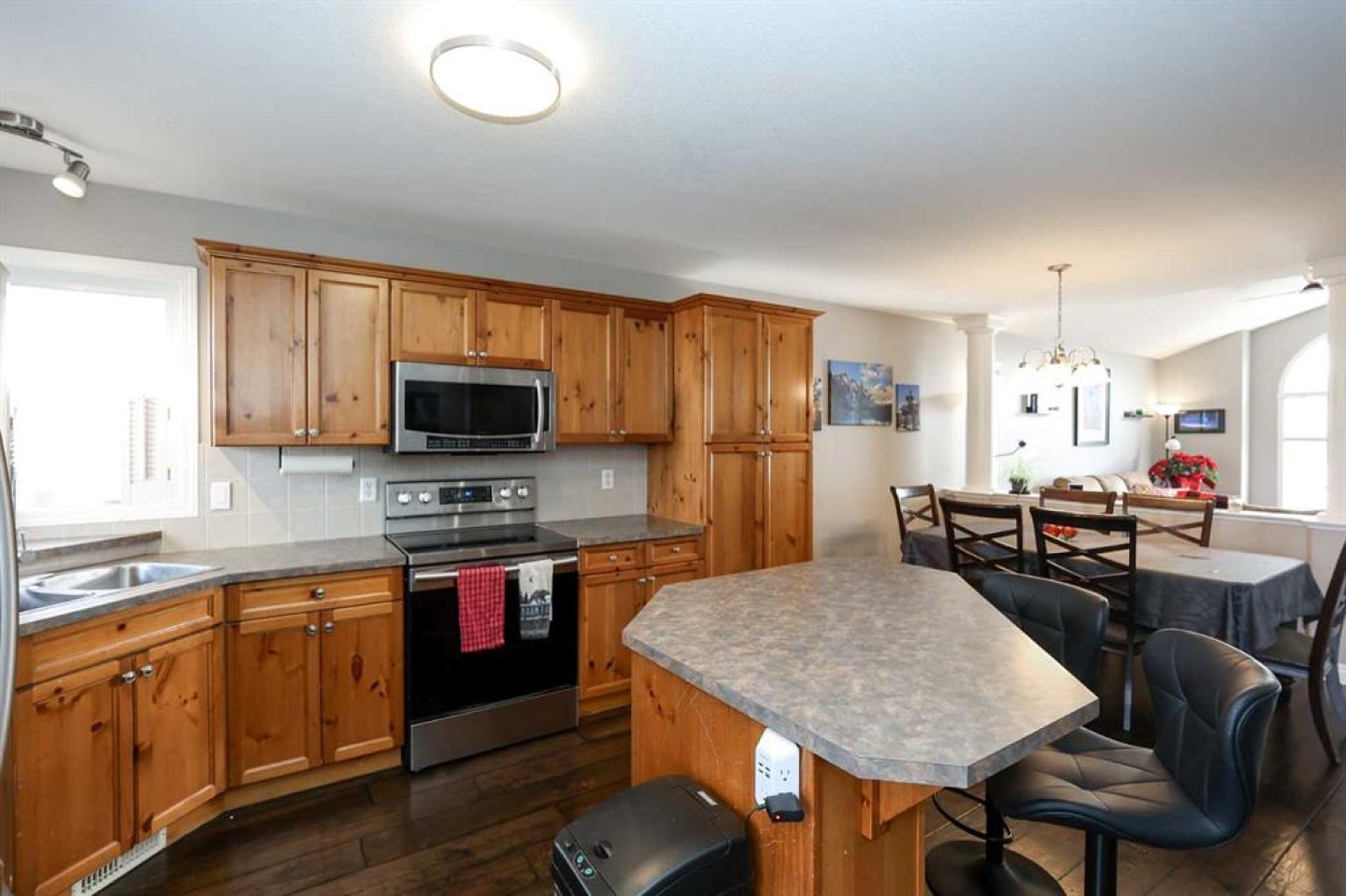 FULLY DEVELOPED 3 BEDROOM, 3 BATHROOM BI-LEVEL ~ WALKOUT BASEMENT ~ HEATED DOUBLE GARAGE & RV PARKING ~ FACING A GREEN SPACE & BACKING ONTO A PARK & SCHOOLS ~ Sunny south facing front yard with raised garden boxes with an irrigation system ~ Covered front veranda welcomes you and leads to a bright and spacious foyer with high ceilings ~ The living room features vaulted ceilings and a large south facing window that fills the space with natural light while offering beautiful park views ~ Architectural columns provide a visually appealing separation between the living and dining space while maintaining an open floor plan ~ The kitchen offers plenty of pine cabinets with crown moulding and built in wall pantry; ample counter space including an island with an eating bar; full tile backsplash; and a window above the sink that overlooks the deck and park ~ Garden door access to the partially covered upper deck that spans the entire width of the home, has a gas line, and offers park views ~ The primary bedroom can easily accommodate a king size bed, has ample closet space, and a 3 piece ensuite ~ Second main floor bedroom is also a generous size and is conveniently located next to the 4 piece main bathroom ~ The fully finished, walkout basement has large above grade windows, high ceilings and operational in-floor heating ~ Family room/den (currently being used as a home office) has board and batten wainscotting and opens to the rec room with plenty of space for a seating area and games table or home gym, plus a separate entry leading to a covered deck (with wiring roughed in for a hot tub), and the backyard ~ 3rd bedroom is conveniently located next to a 3 piece bathroom with a walk in shower ~ Laundry is located in it's own room, has a large window and tons of space for storage ~ The backyard is landscaped and fully fenced ~ HEATED 22' x22' detached garage with shelving, 220V wiring on it's own sub panel, and a workbench (seller will replace shingles on garage before possession) ~ RV parking beside the garage with an easy approach and paved back alley ~ Backing onto Meadowview Park, École Fox Run School and École Mother Theresa Catholic School ~ Easy access to walking trails, more great parks and playgrounds, shopping, dining, and the beach/Lakeshore Drive ~