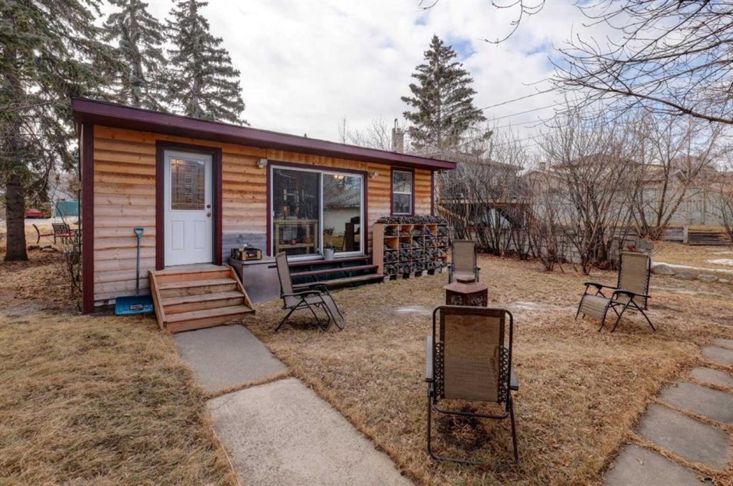 Welcome to a hidden gem nestled on a large, beautifully treed lot in a prime location close to shopping, bike paths, and everyday amenities. Whether you are an investor, developer, or first-time buyer, this is an opportunity filled with potential and warmth. Step inside and feel instantly at home in the cozy, cabin-inspired atmosphere. The inviting living room with electric fireplace is perfect for quiet evenings, while the thoughtfully designed layout offers two comfortable bedrooms — one currently set up as a bright and functional home office. Indulge in your own spa-like retreat with a beautifully updated 3-piece shower and sauna combination featuring foot and body massage — the perfect way to unwind at the end of the day. At the rear of the home, a spacious dining area with a gas fireplace creates a welcoming space for meals and gatherings. The kitchen offers abundant cabinetry and modern, barely used appliances, including a gas stove, plus the convenience of a European washer/dryer. Enjoy the simple pleasures of outdoor living — sip your morning coffee at the front, relax in the peaceful treed setting at the back, and soak up those warm sunny days from both sides of the Upgrades over time include over half newer windows and back door windows, an updated 220V electrical panel with partial rewiring, copper plumbing, H20 Tank (8 yrs)and roof shingles approximately 10 years old. The oversized, insulated double detached garage offers excellent space for parking, storage, or hobbies. A rare blend of comfort, charm, and opportunity in a sought-after location — this home is ready to welcome its next chapter. Zoned RC-G (50x120). For more information, contact the listing agent today. Summer photos at the end of all photos.