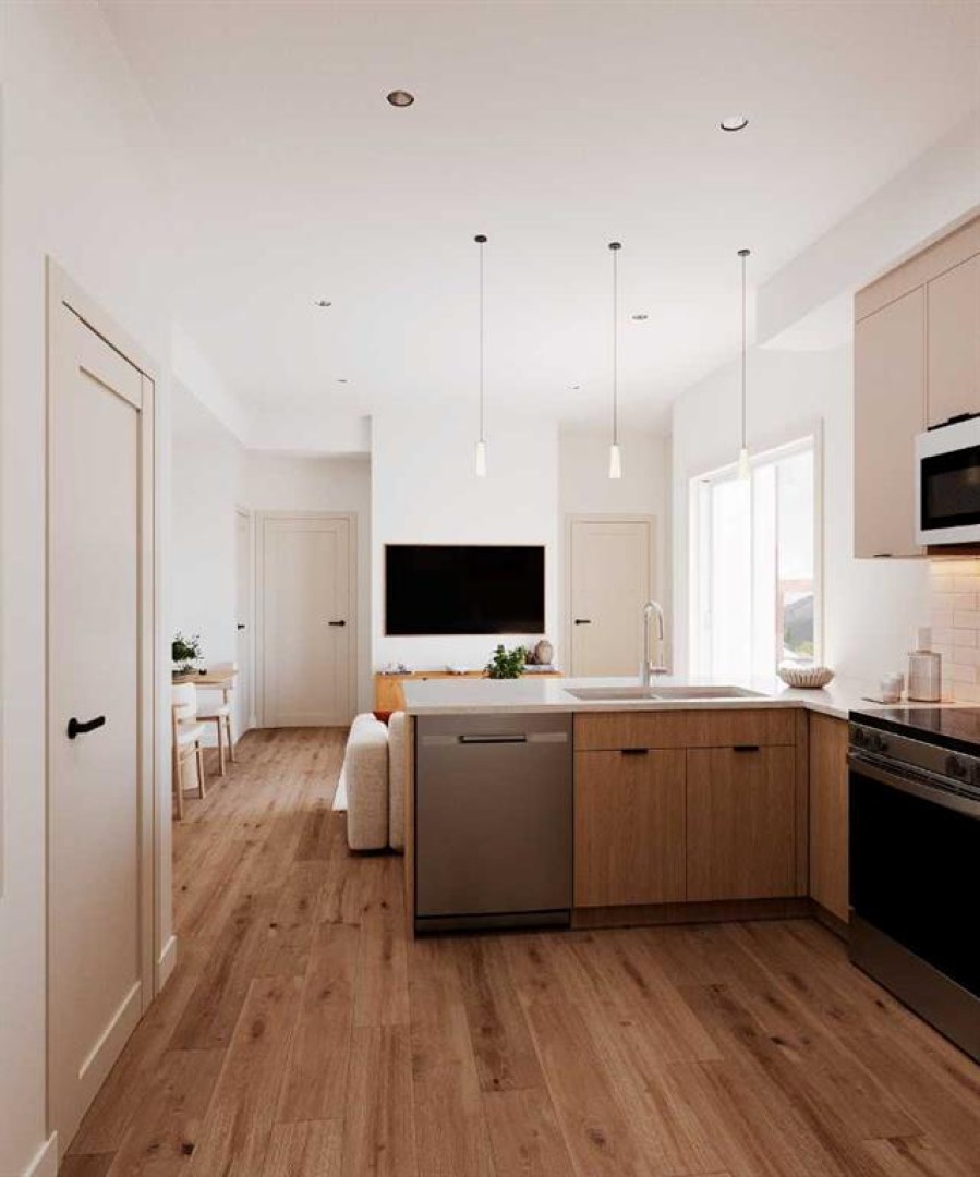Located on a quiet street just minutes from downtown Banff’s cafés, restaurants, and everyday amenities, McHardy Residences presents a rare opportunity to own a newly built home designed for full-time mountain living. This 2-bedroom, 1-bath South facing residence offers pristine interior selections, brand-new stainless steel appliances, 10-year new home warranty, and an unbeatable location. The open-concept layout provides practical, comfortable living for those who call Banff home year-round with in suite laundry, a spacious quartz island, and luxury vinyl plank flooring. Set in a peaceful neighborhood yet just moments from the energy of downtown, this unique property delivers the lifestyle locals are looking for: space, serenity, and a true connection to the mountains. Additional storage lockers provide valuable room for all your mountain gear.