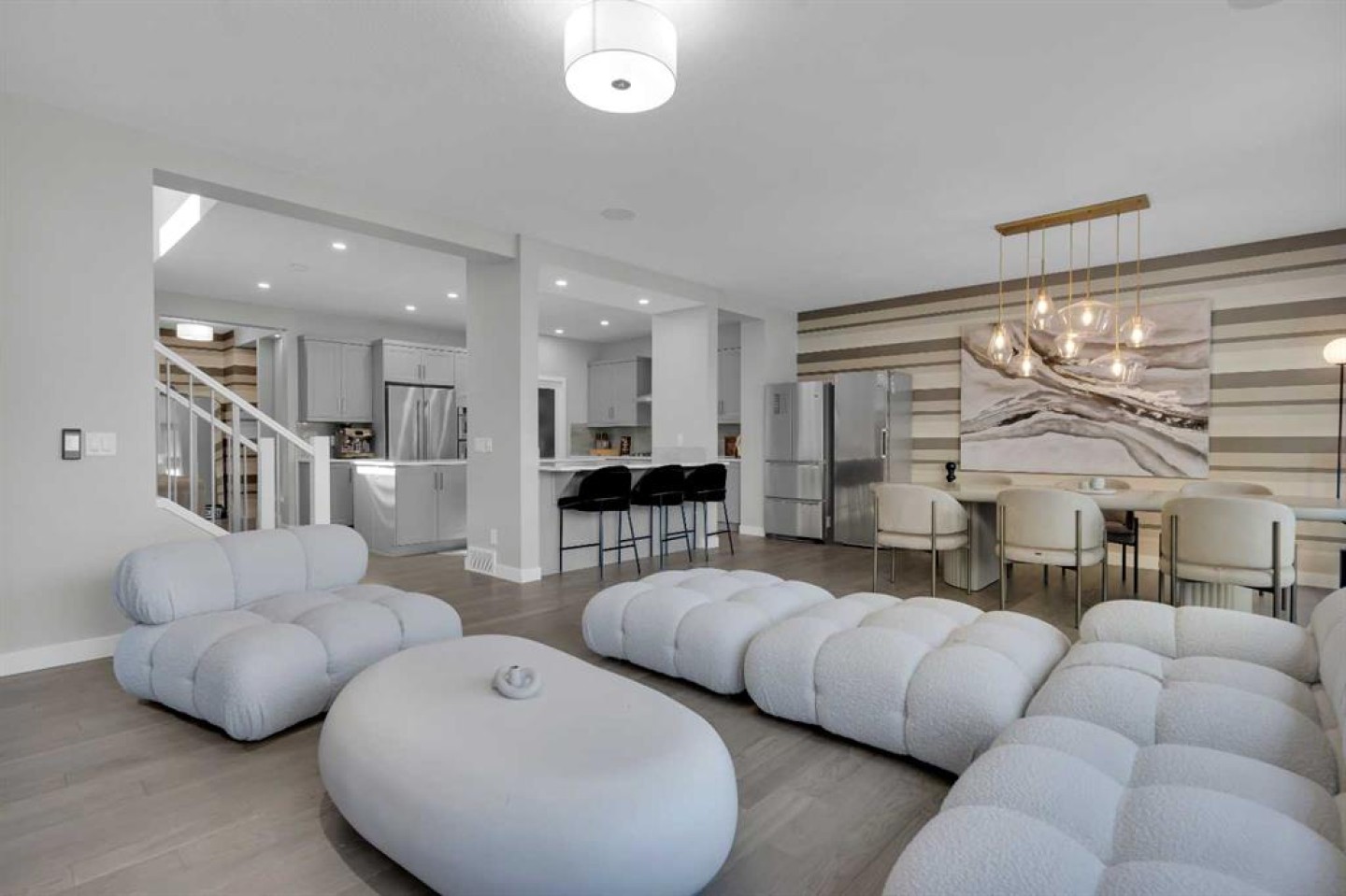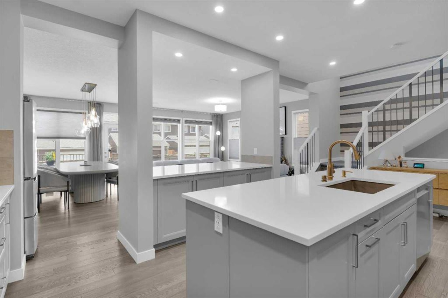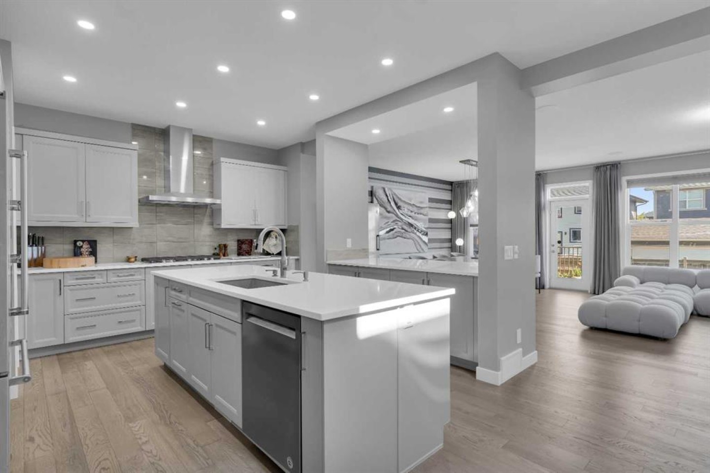 This former Jayman Showhome, built with the renowned/most sold “Lauren 26” design, offers over 3,400 sq. ft. of beautifully finished living space. Proudly owned by the first owner (The owner has lived in the property for 3 years and 4 months) and meticulously maintained, this home is loaded with over 100k upgrades, exceptional craftsmanship, and thoughtful design that will impress the moment you step inside. The open main floor welcomes you with a spacious foyer, an enormous upgraded kitchen featuring double islands with Quartz countertops, and high-end KitchenAid stainless steel appliances. The living room is anchored by an upgraded fireplace, creating the perfect space for family gatherings. Upstairs, you will find three large bedrooms, including a stunning master retreat with a luxurious en-suite, as well as a separate bonus room with elegant Glass French Doors. The fully finished basement expands the living space with a media room, flex room, and a fourth bedroom—perfect for family, guests, or entertaining. Notable upgrades include Quartz counters throughout, engineered hardwood flooring on the main, Hunter Douglas blinds, 12 Solar panels, central air conditioning, and more. This is your opportunity to own a show-stopping Jayman-built home that combines quality, comfort, and modern design. Don’t just imagine it—make it yours today.