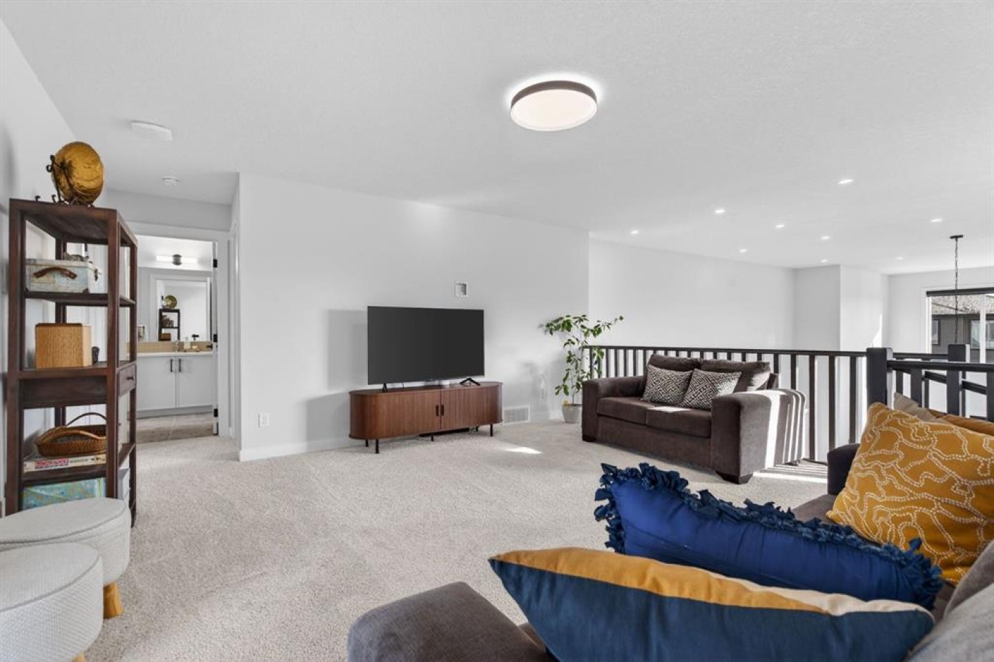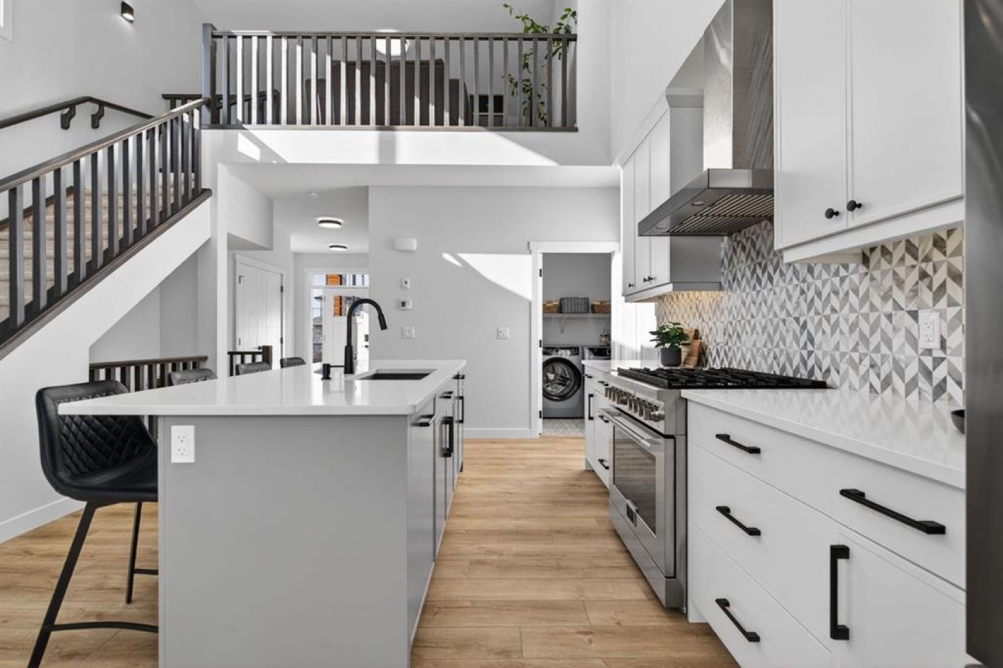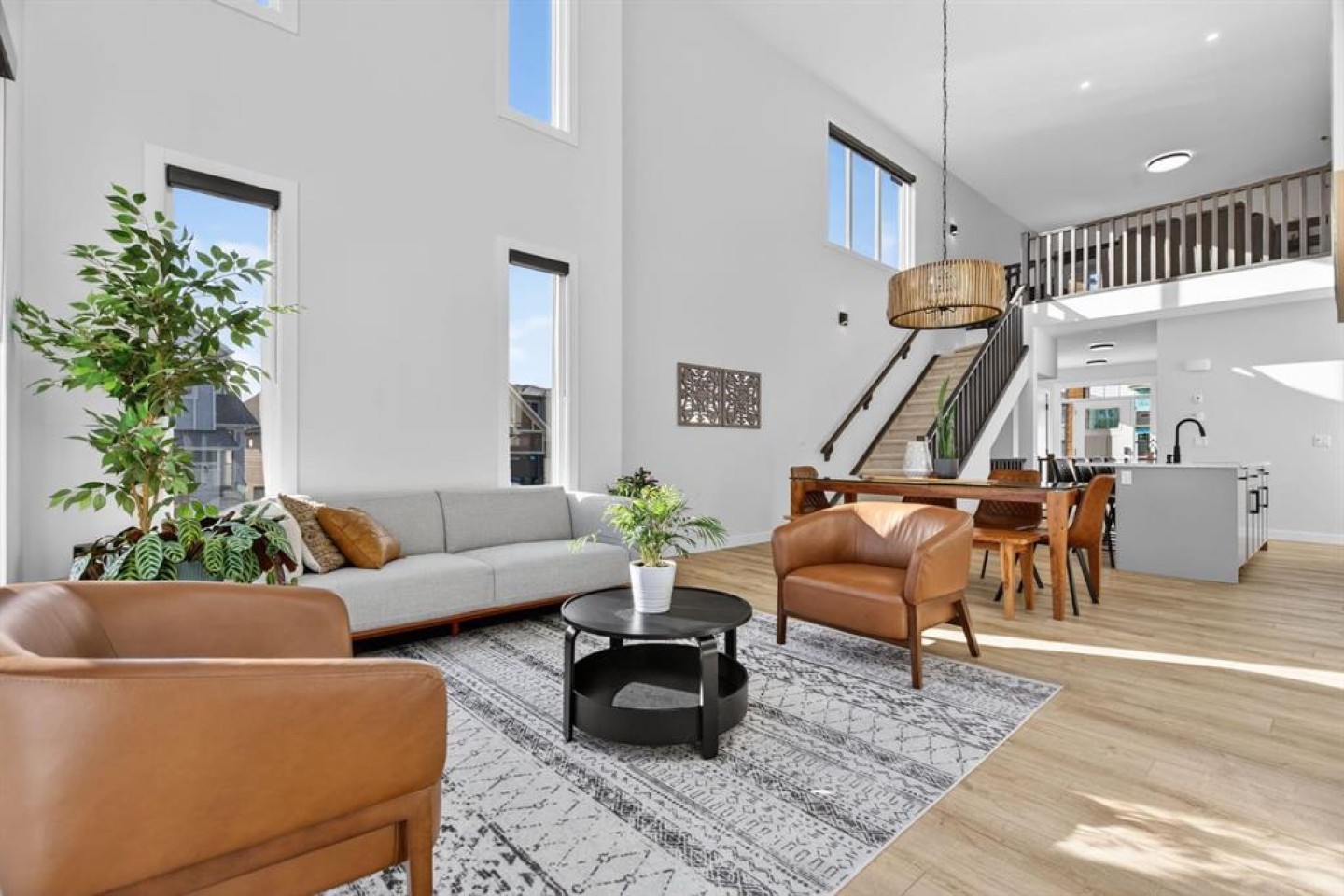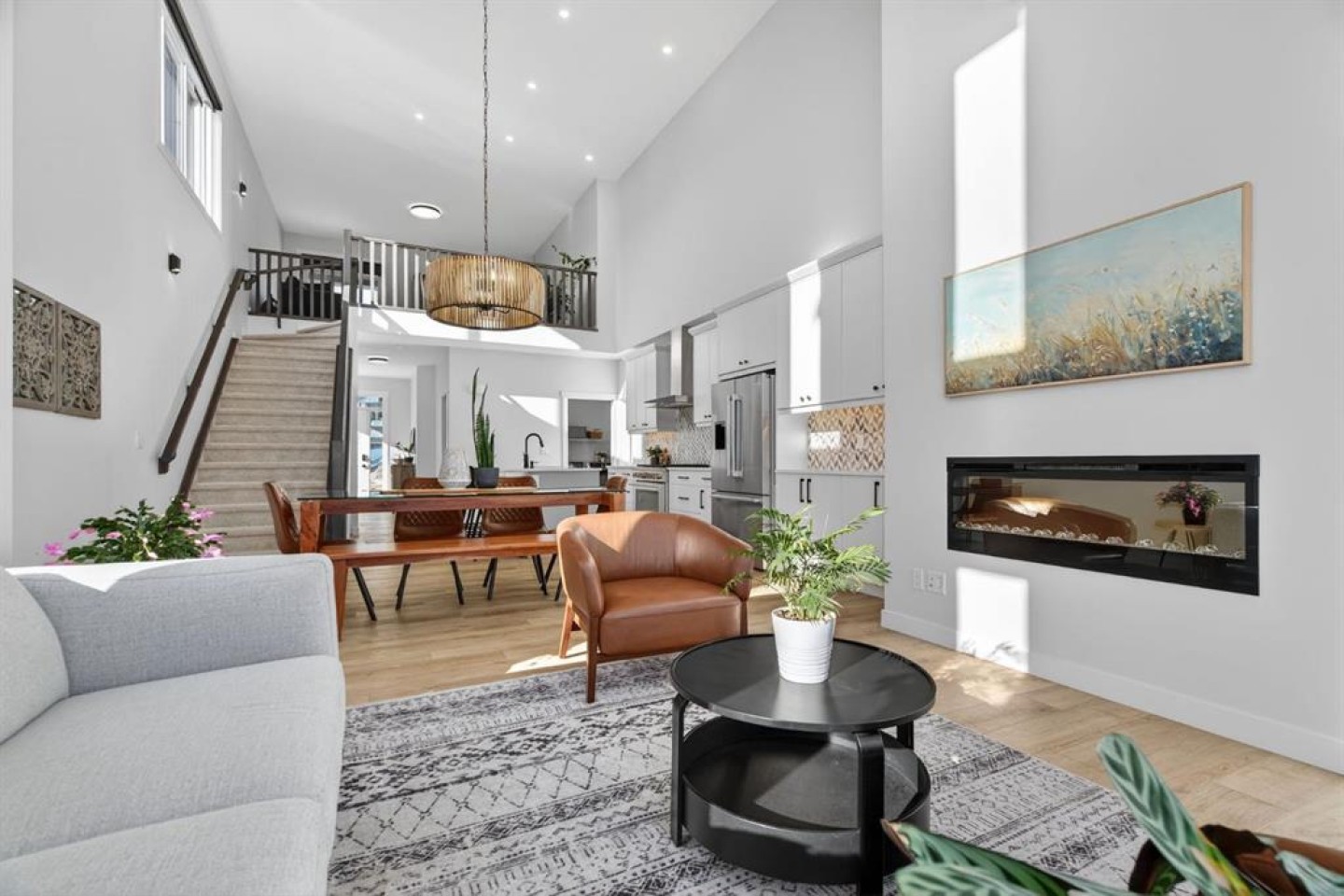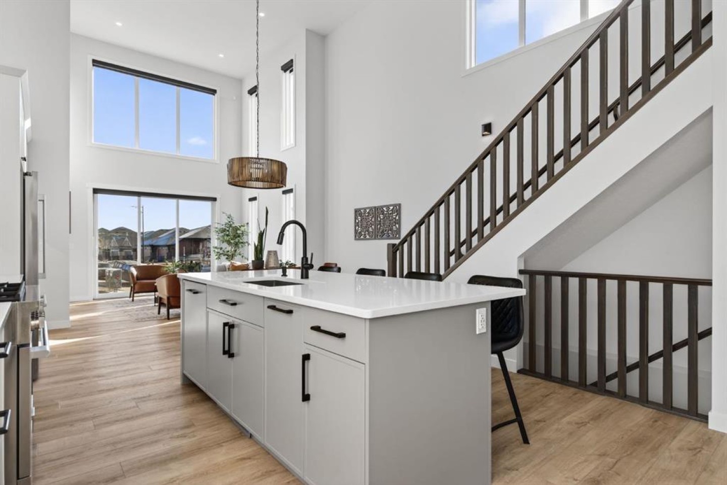 Welcome to luxury in this beautifully designed Trico Westwood model home, offering the highly sought after convenience of a main floor primary suite, presenting the functionality of a bungalow with the added bonus of upper level living.  As you step inside, immediately you notice the bright and welcoming main floor, featuring an open, thoughtfully designed layout.  With 4 additional windows added to the south wall, there’s a ton of natural light, and all are equipped with electric & solar powered blinds on its own wifi system. Then there is the kitchen, a true show piece, complete with ample cabinetry, upgraded Bosch appliances, an Italian gas stove by Fulgor and a pantry for extra storage. Convenient main floor laundry, a 2 piece powder room, and easy access to the double attached garage enhance the home’s practical design.  The standout feature is the main floor primary bedroom retreat, offering privacy and comfort with a walk in closet and a luxurious 5 piece ensuite.  Upstairs, you’ll find two generously sized bedrooms, a full bathroom, and a versatile family room.  And the bonus: a balcony to show off the stunning Rocky Mountain views with a fun vantage point overlooking the D’Arcy Golf Course 2nd tee box.  The fully developed basement expands your living space even further, featuring a massive rec room with multiple functions, two additional bedrooms, a full bathroom, and plenty of storage.  And with 9 foot ceilings and larger windows, this basement feels like anything but a basement.  Outside, there have been many added upgrades to the home exterior as well as a widened front driveway, additional rear gravel parking pad,  a concrete outdoor area with gazebo and gas hook ups not only for your BBQ by the home, but also for a fire table under the gazebo. Situated in the quiet, family friendly neighbourhood of D’Arcy, close to parks, pathways, the golf course and amenities, this home offers the perfect blend of comfort, functionality, and community living.  A rare opportunity to own a move-in ready, highly upgraded home in one of Okotoks’ most desirable neighbourhoods.  Contact your favourite realtor to book a showing today!