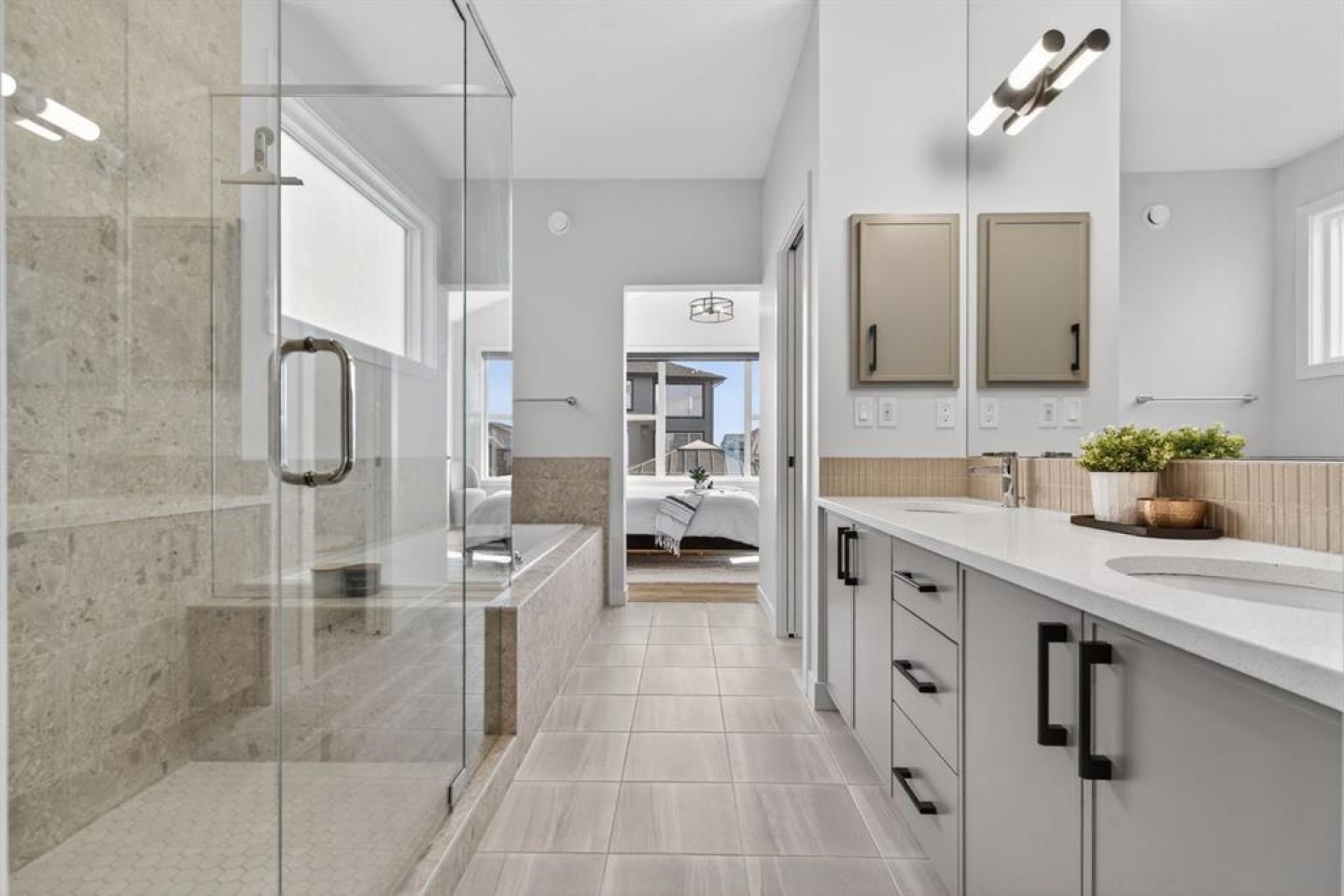 Double Vanity, High Ceilings, Kitchen Island, No Smoking Home, Open Floorplan, Pantry, Primary Downstairs, Quartz Counters, Walk-In Closet(s)