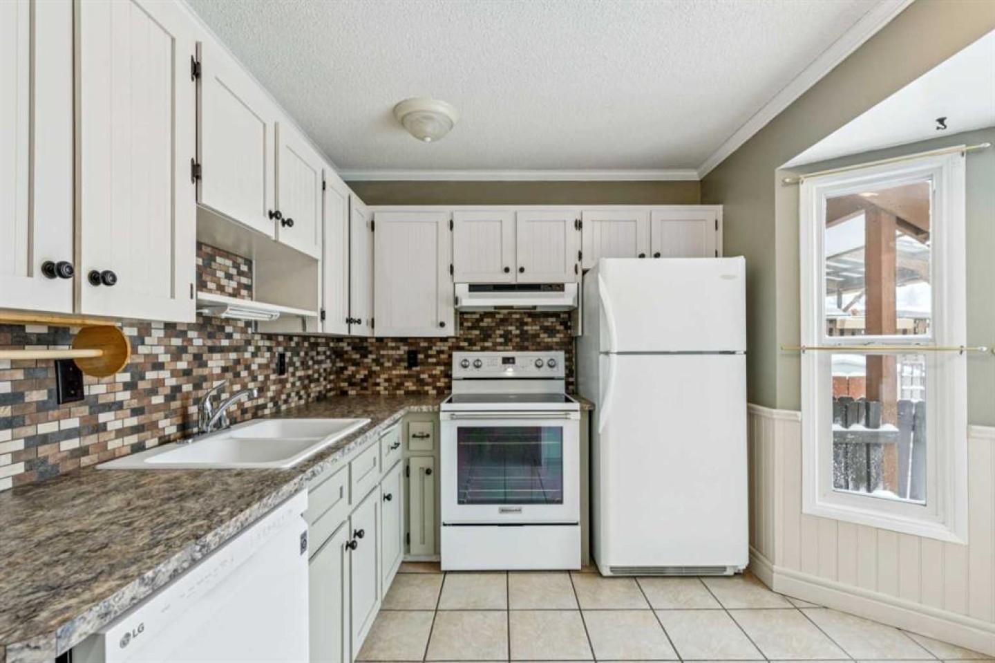 Dishwasher, Electric Stove, Range Hood, Refrigerator, Washer/Dryer, Window Coverings